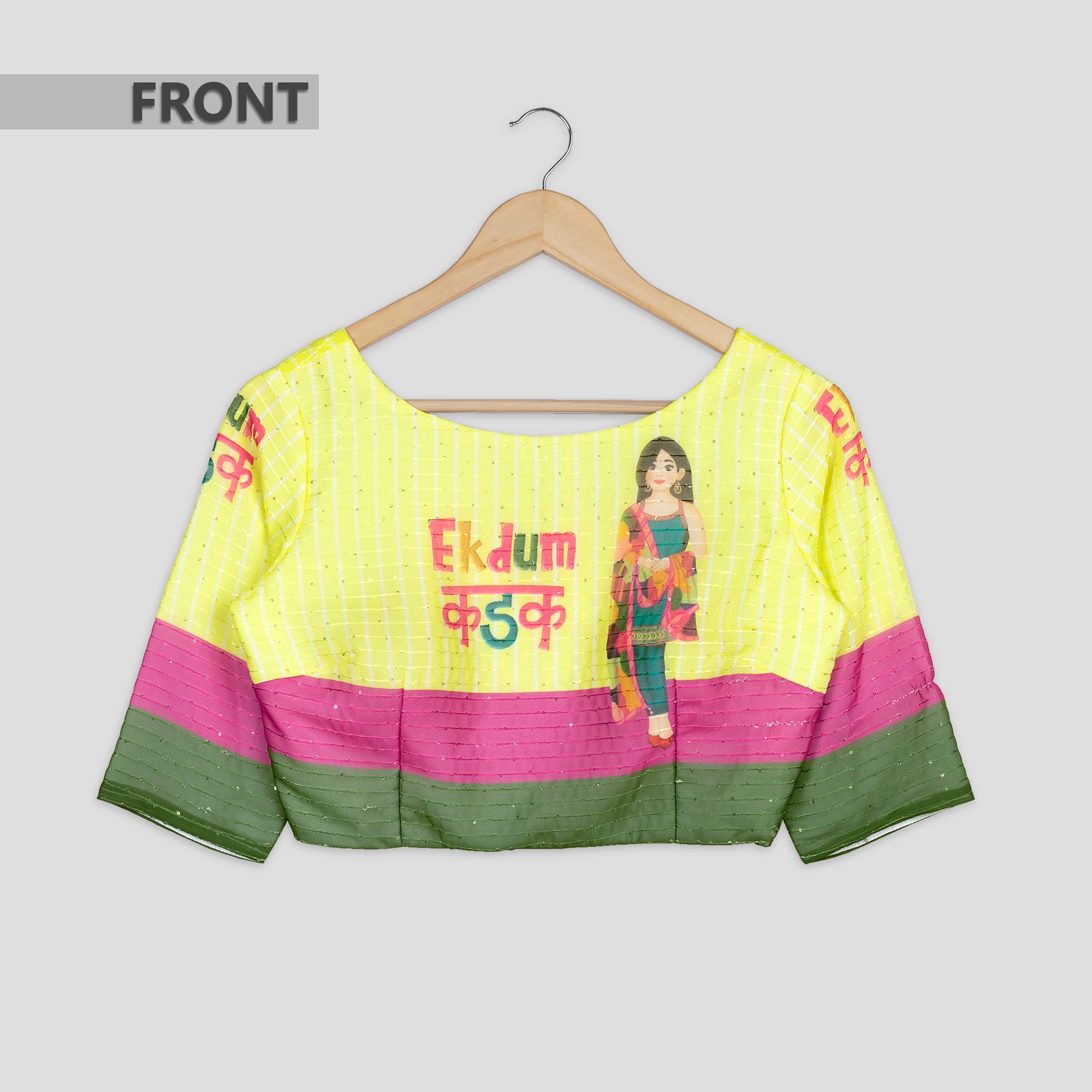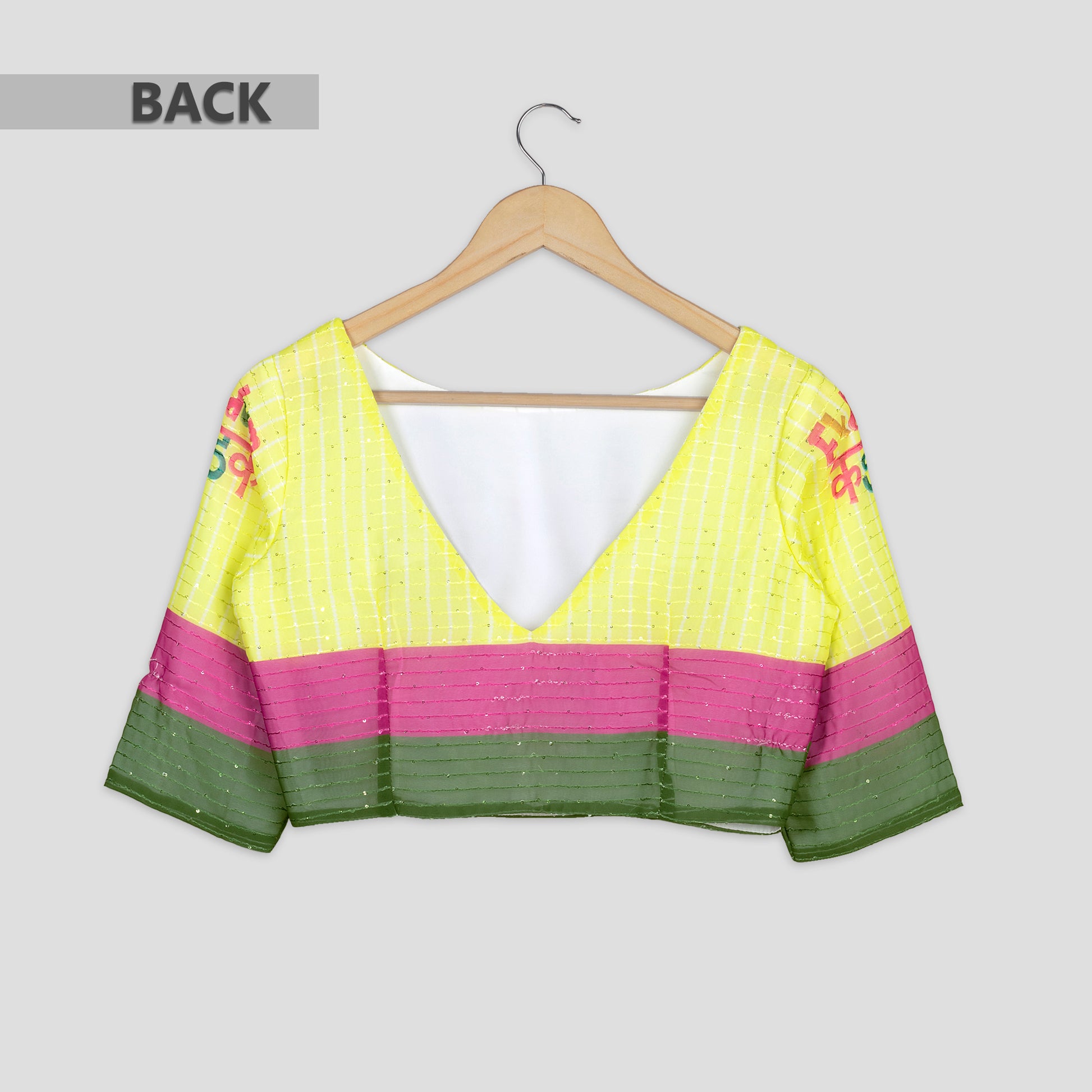 Add a quirky touch to your wardrobe with this glamorous Georgette blouse. The playful embroidery and sparkling sequins create a unique and eye-catching look, perfect for standing out from the crowd. Stay stylish and fun with this must-have piece!
