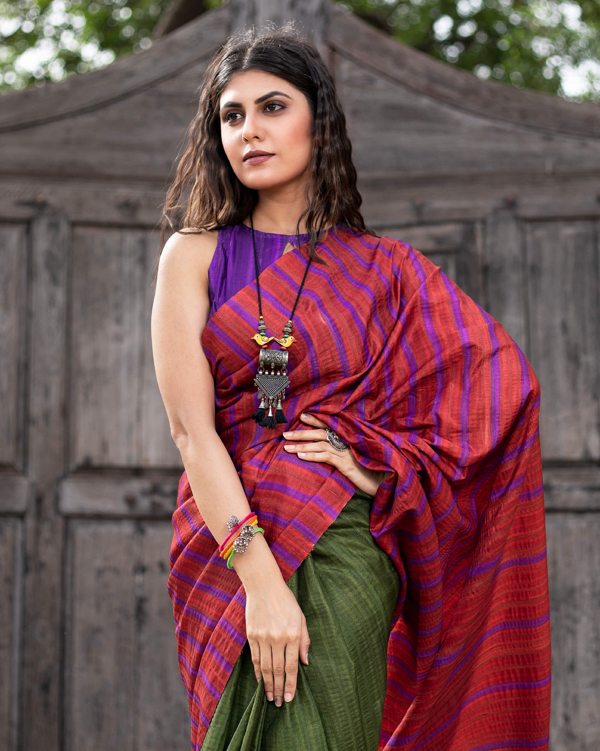 Heritage Art silk blouse looks gorgeous in its way. Printed with beautiful and alluring patterns, it is a piece, that deserves a place in your wardrobe. It features a keyhole neck, is sleeveless, and has a side zip closure option. This fabric is versatile and rich in properties. Match this blouse with your favorite sarees.