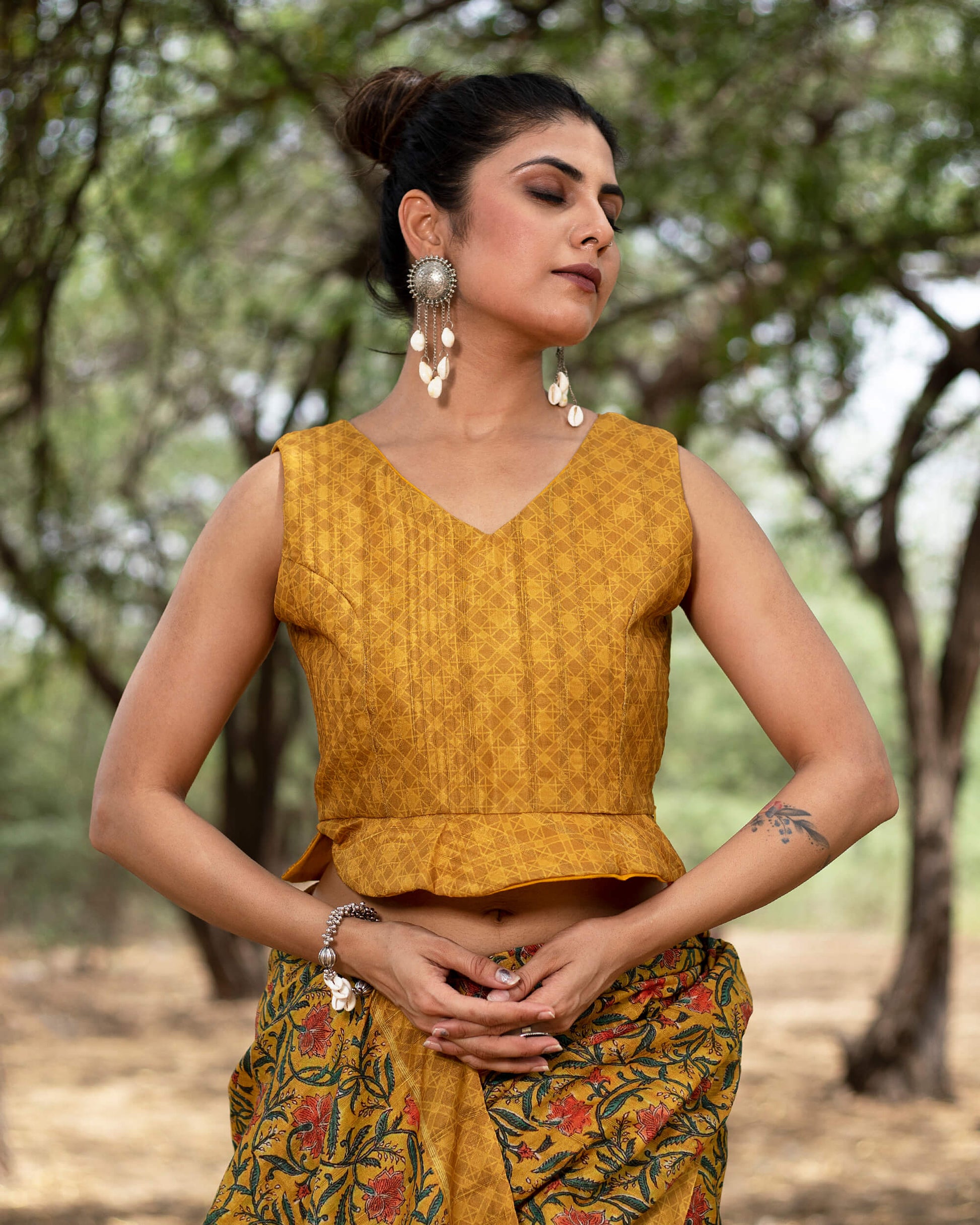 Traditional Printed Silk Peplum Blouse