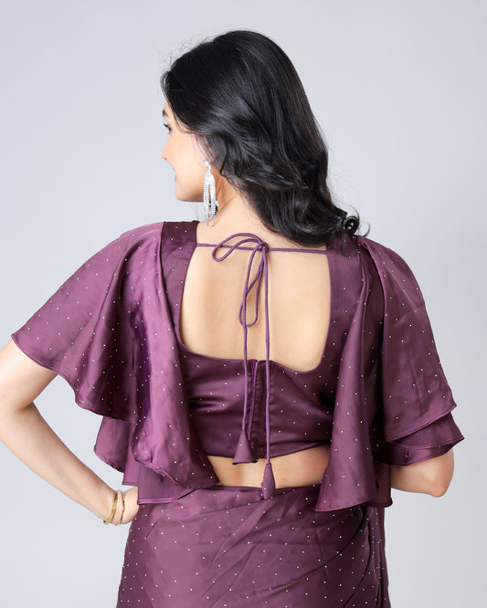 Svarovski Stone Work Blouse With Romantic Ruffles Sleeve Svarovski Stone Work Blouse With Romantic Ruffles Sleeve