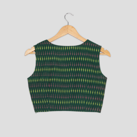 Plain Fun Green Boat Neck Sleeveless Blouse
