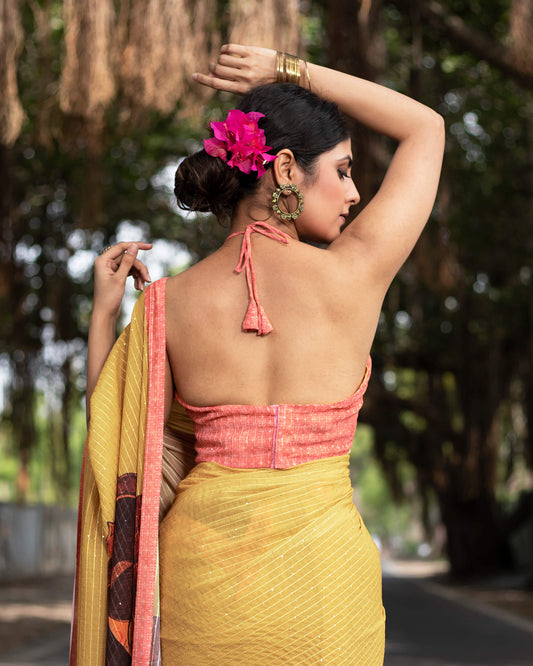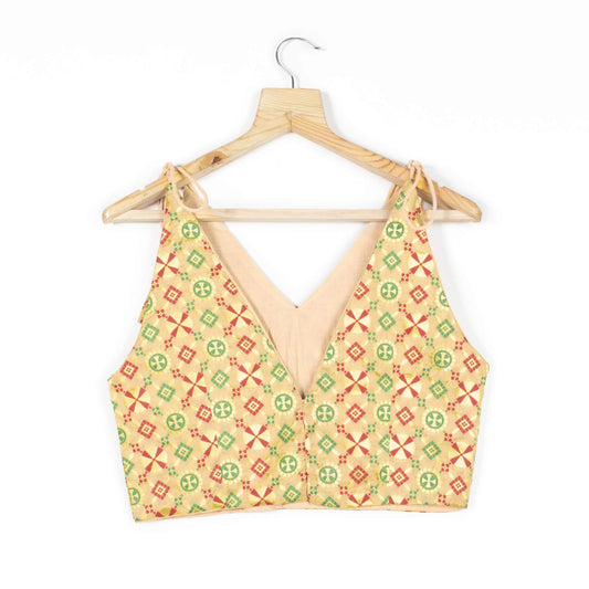 Yellow Ikkat Print Sleeveless Tie-Up Blouse