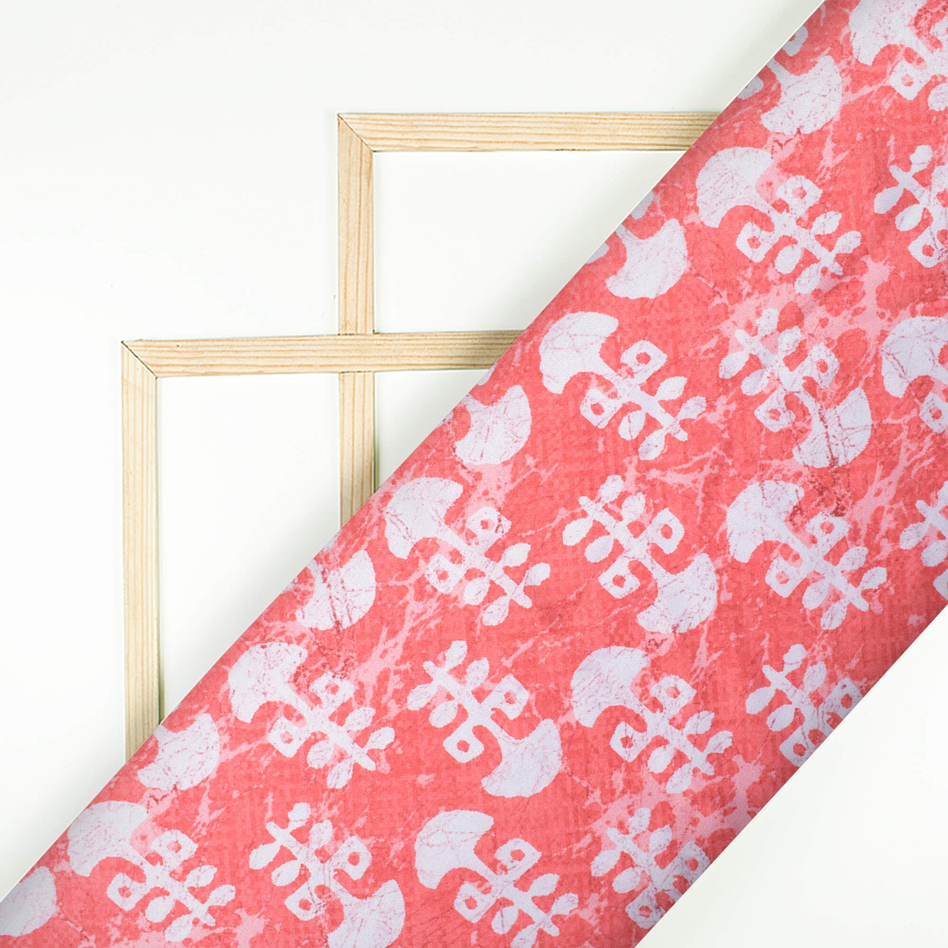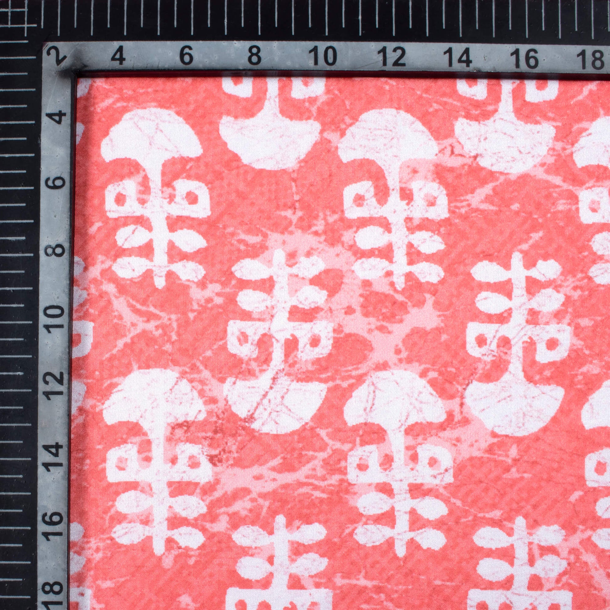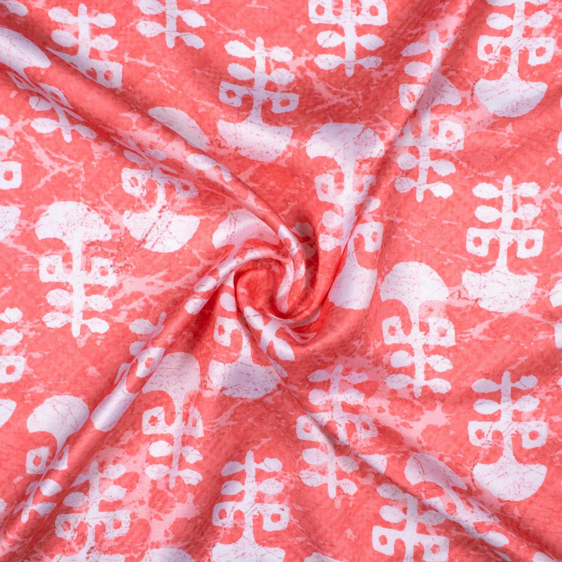 Brick Pink And White Booti Pattern Digital Print Crepe Silk Fabric