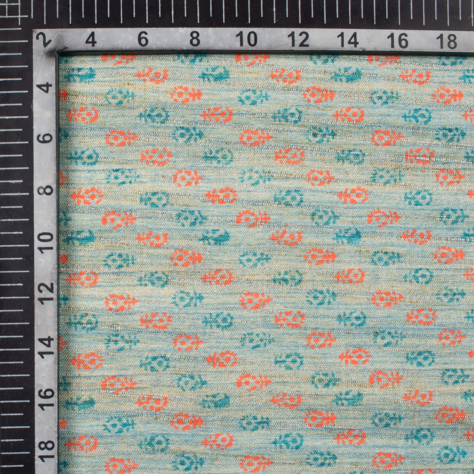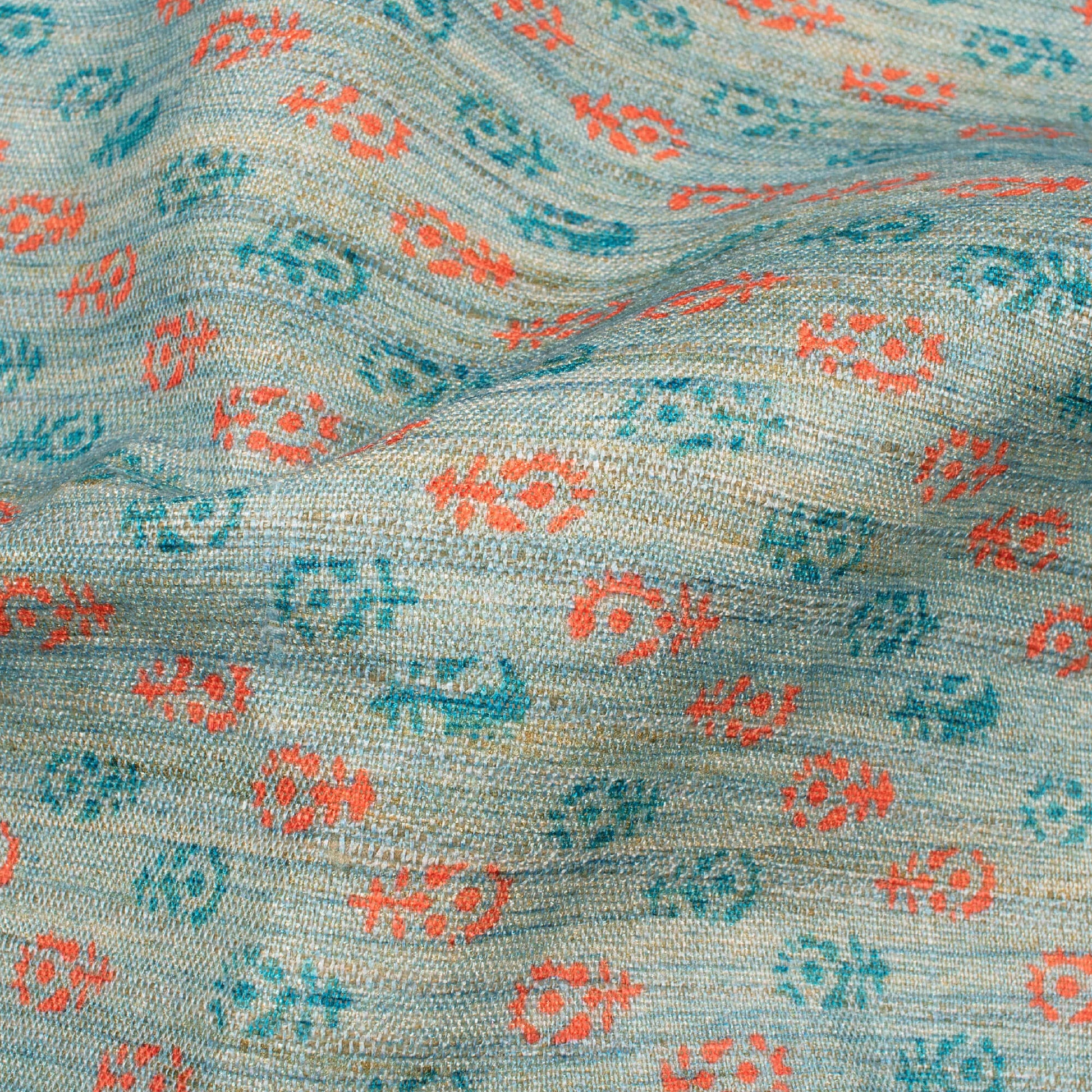 Carolina Blue And Cerise Pink Booti Pattern Digital Print Textured Blend Fabric (Width 58 Inches)