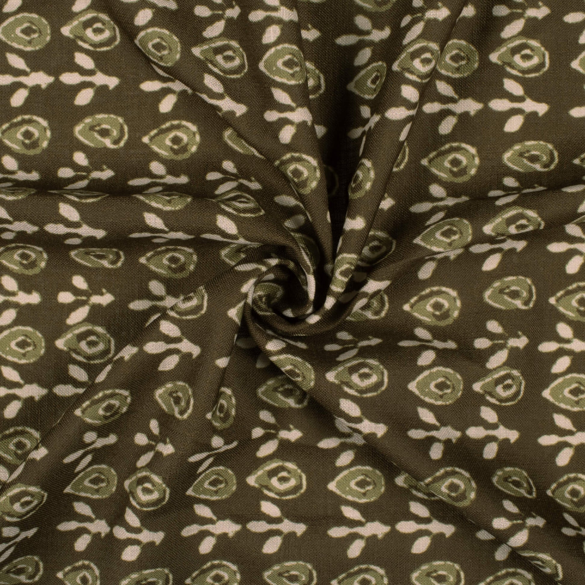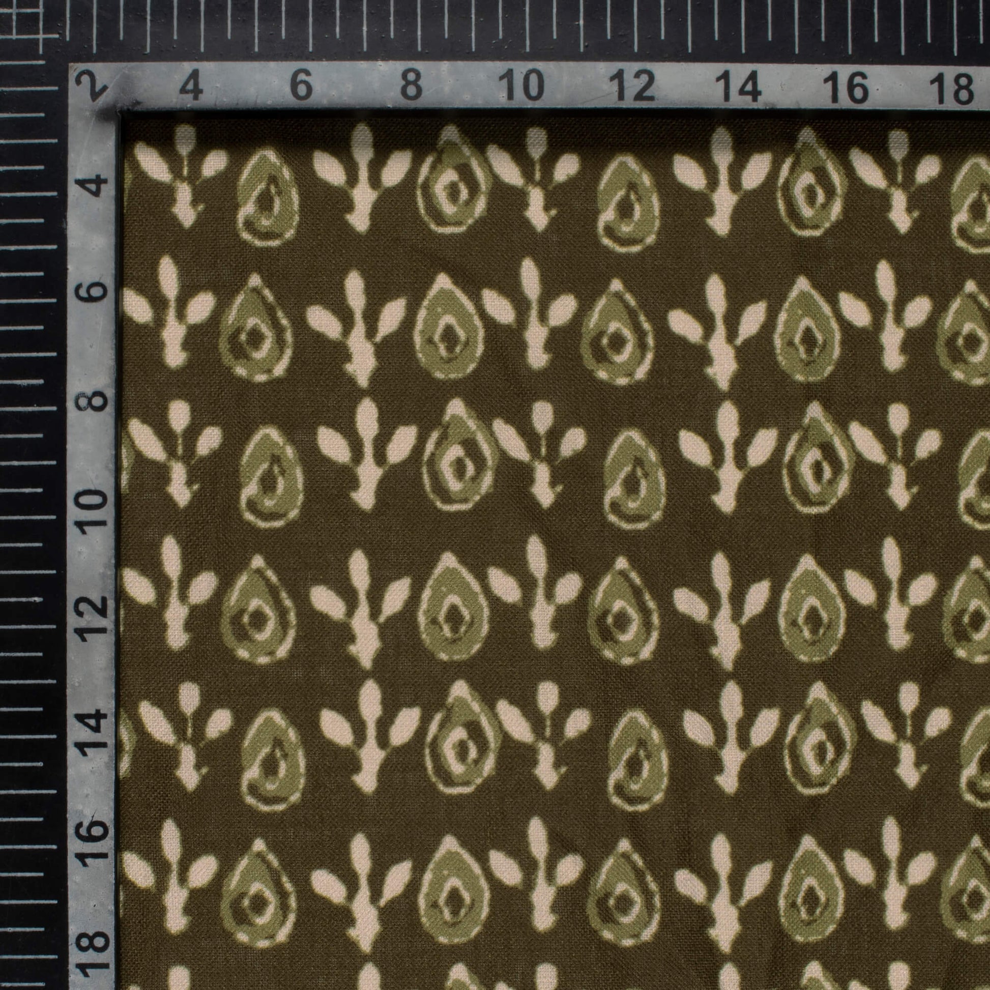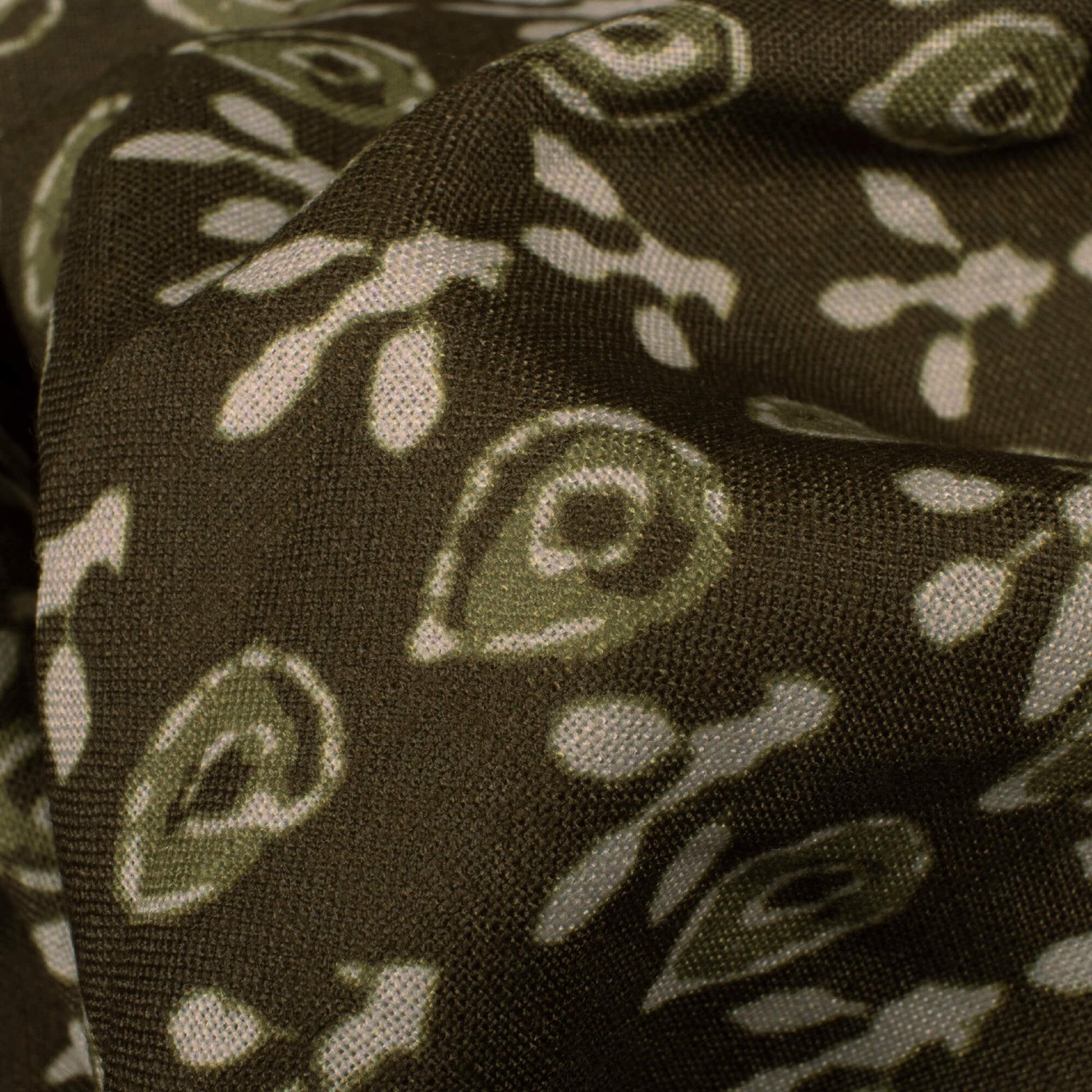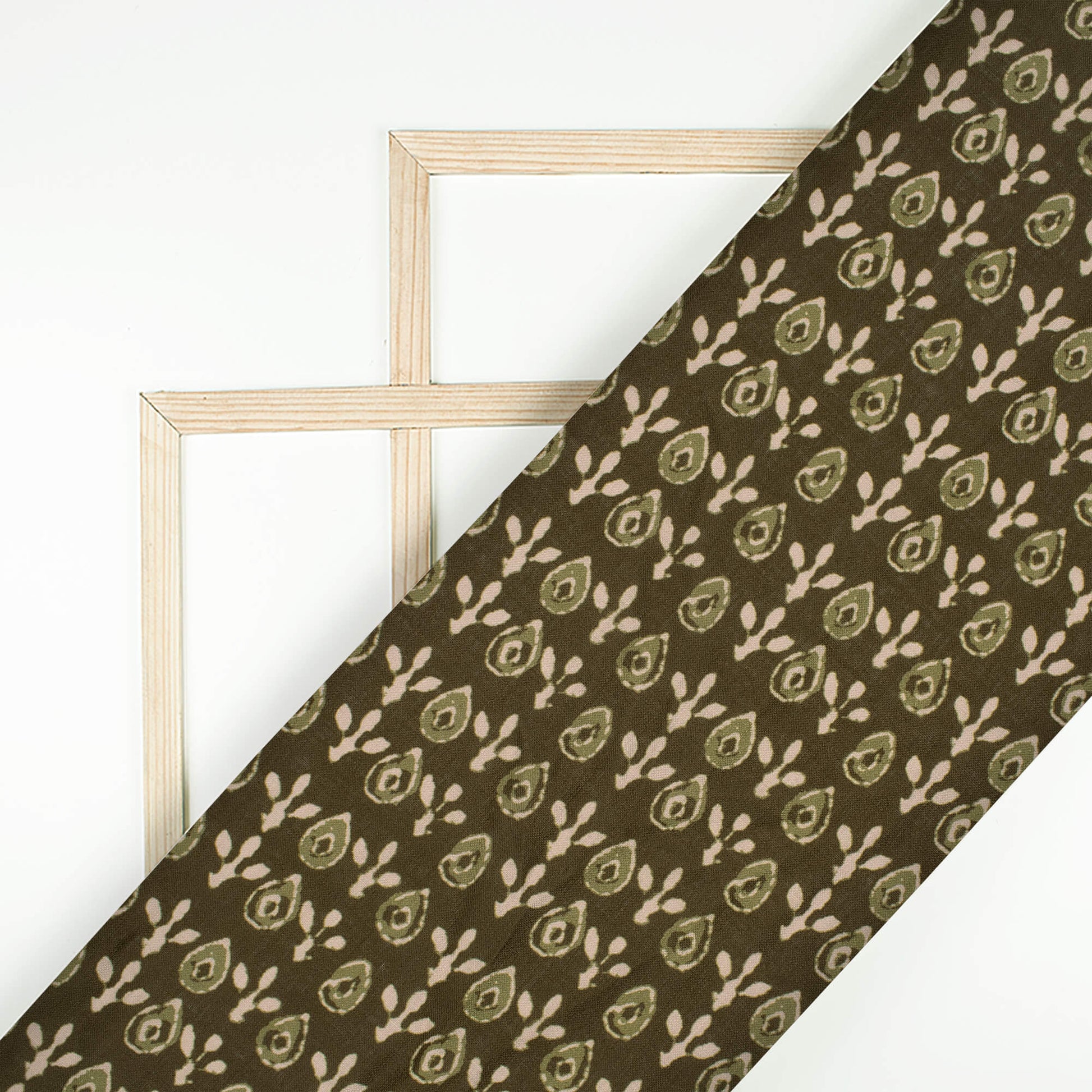 Dark Olive Green And Oat Beige Booti Pattern Digital Print Linen Textured Fabric (Width 56 Inches)