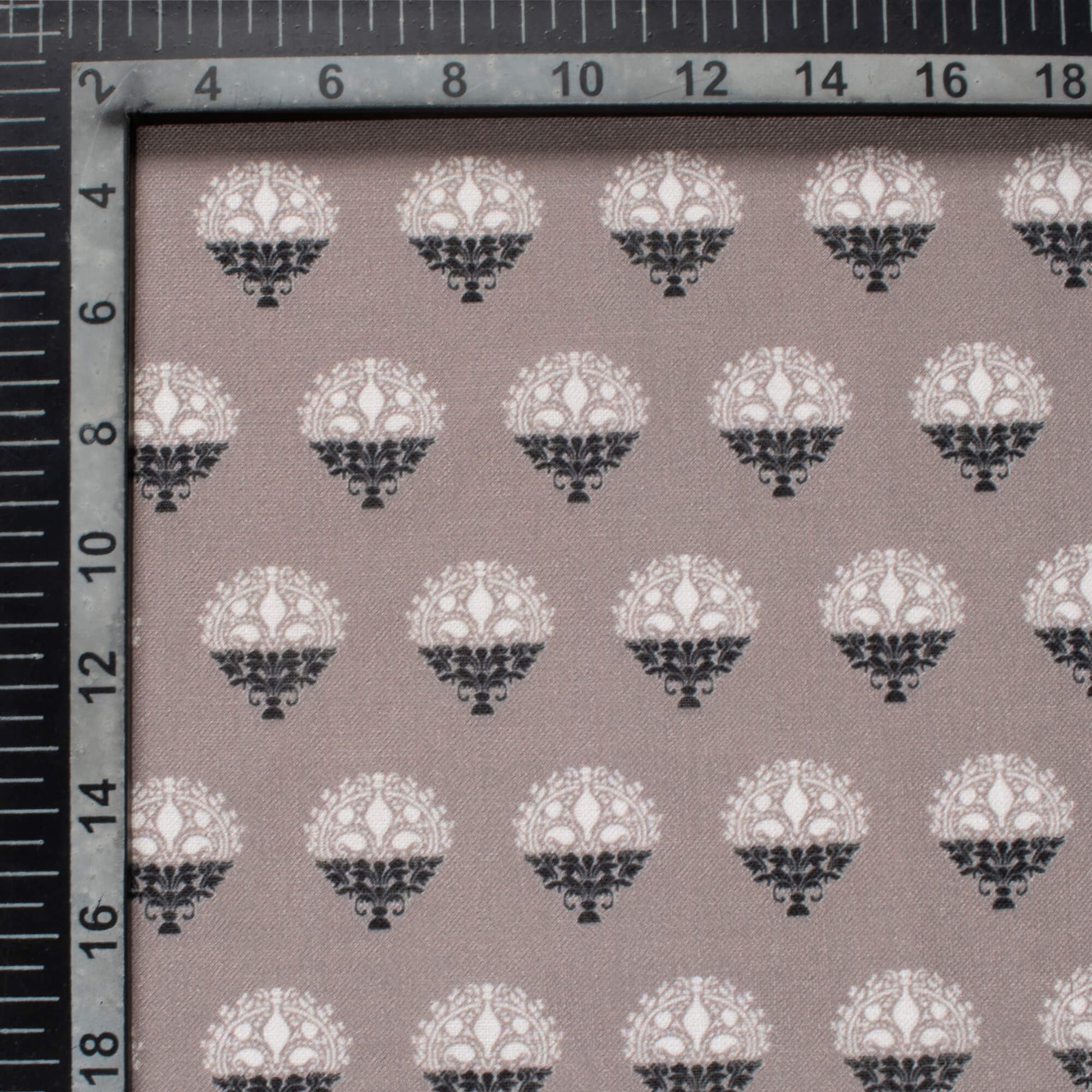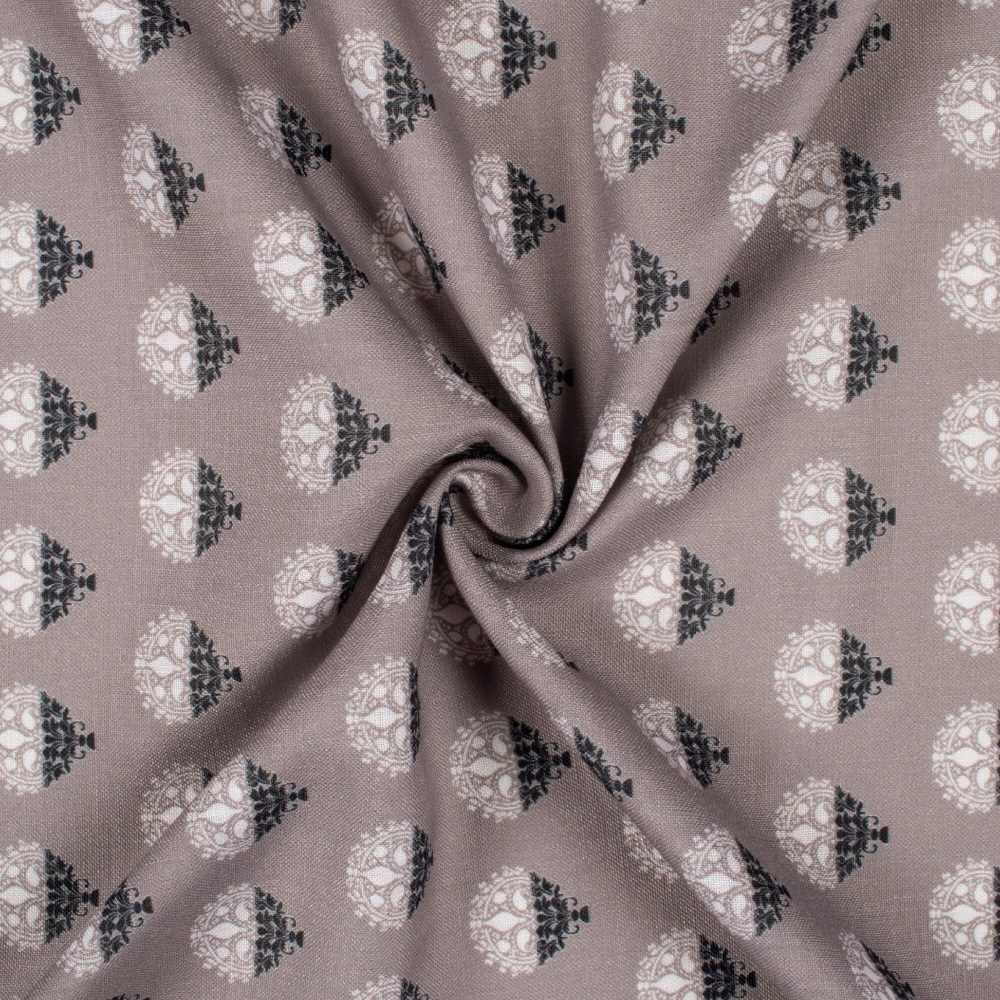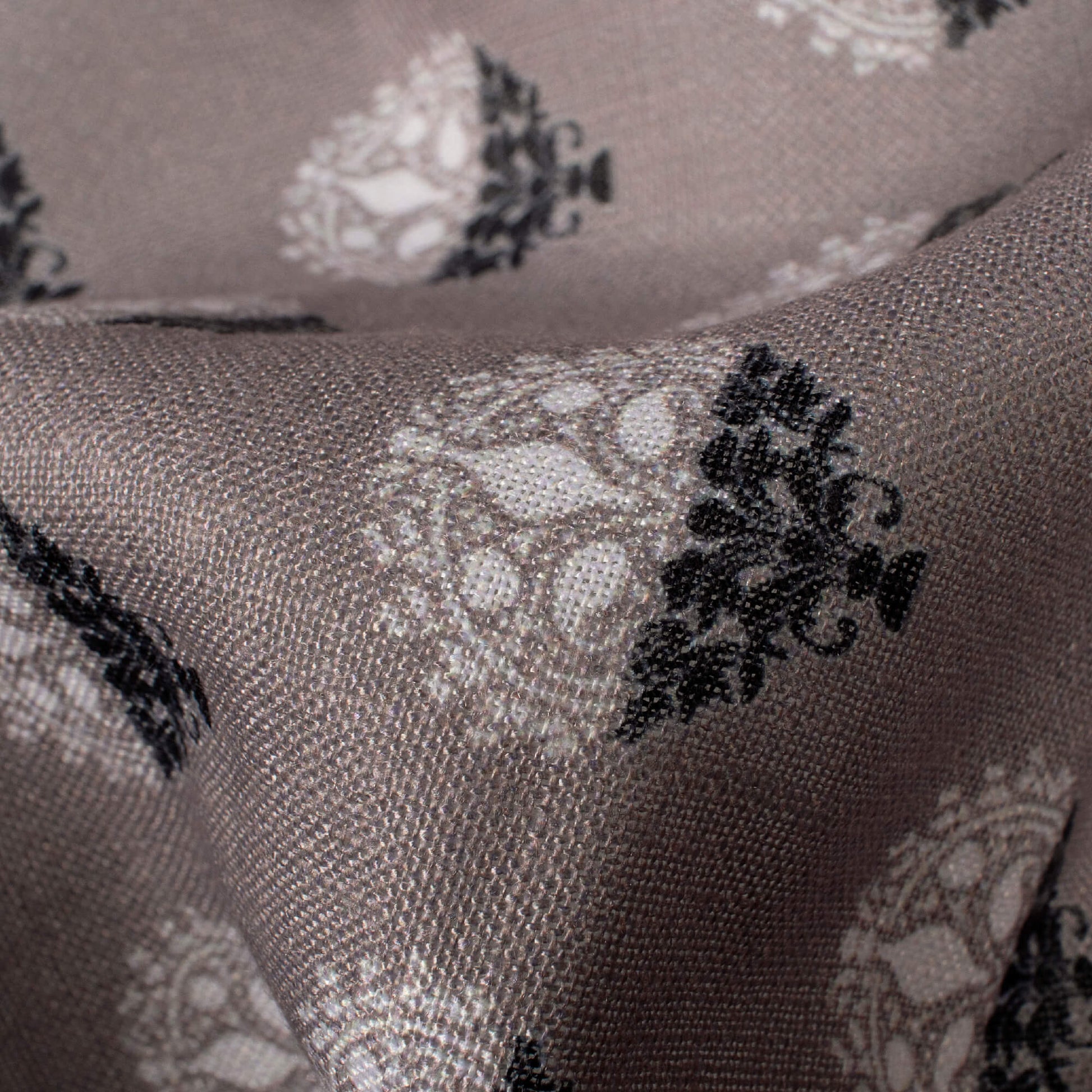 Fossil Grey And Black Booti Pattern Digital Print Linen Textured Fabric (Width 56 Inches)