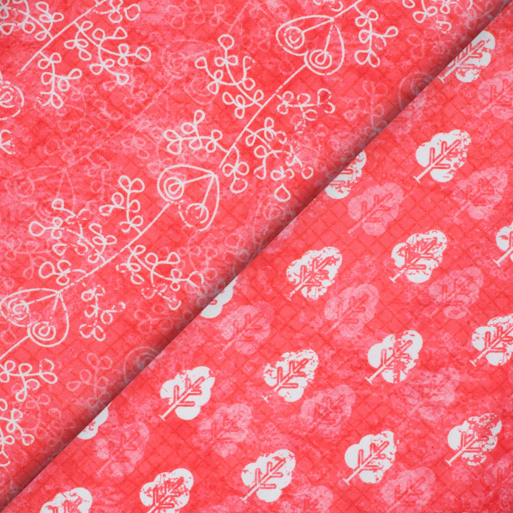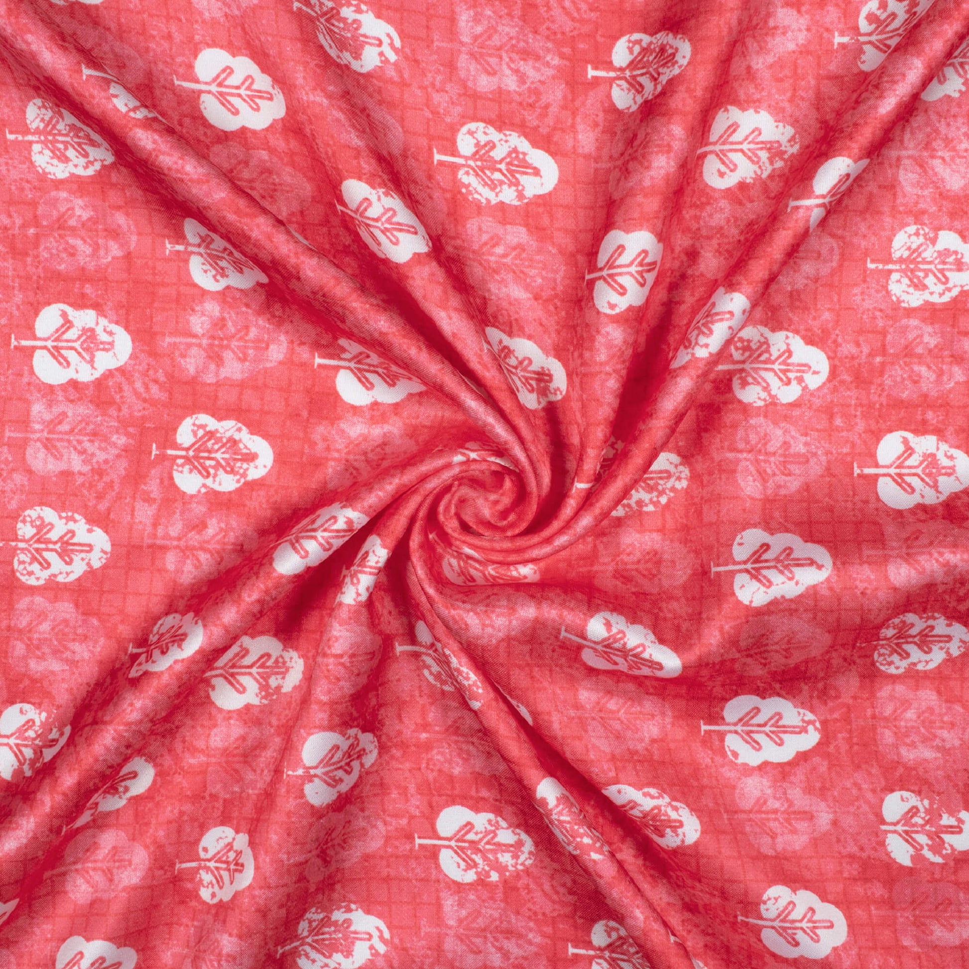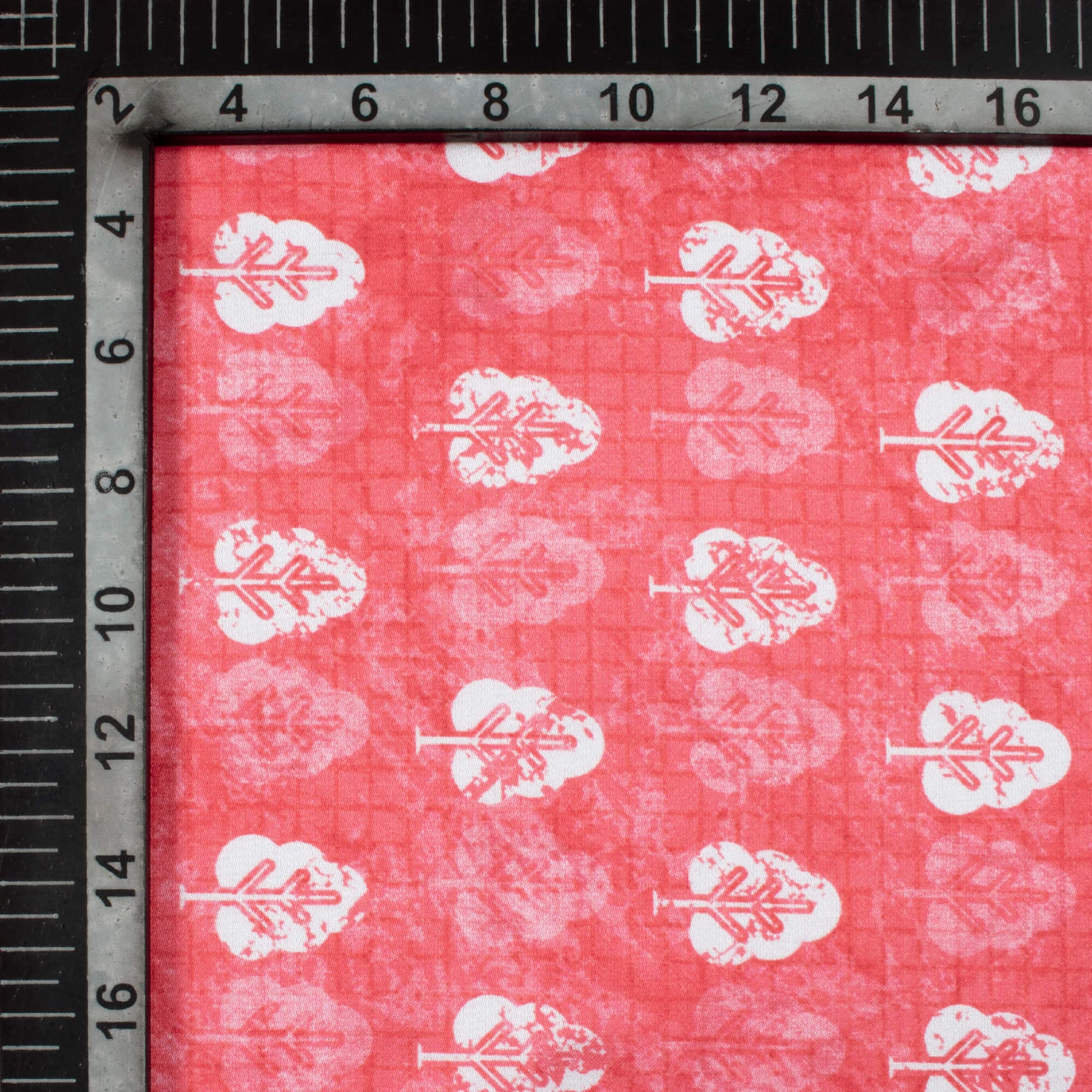 Punch Pink And White Booti Pattern Digital Print Crepe Silk Fabric