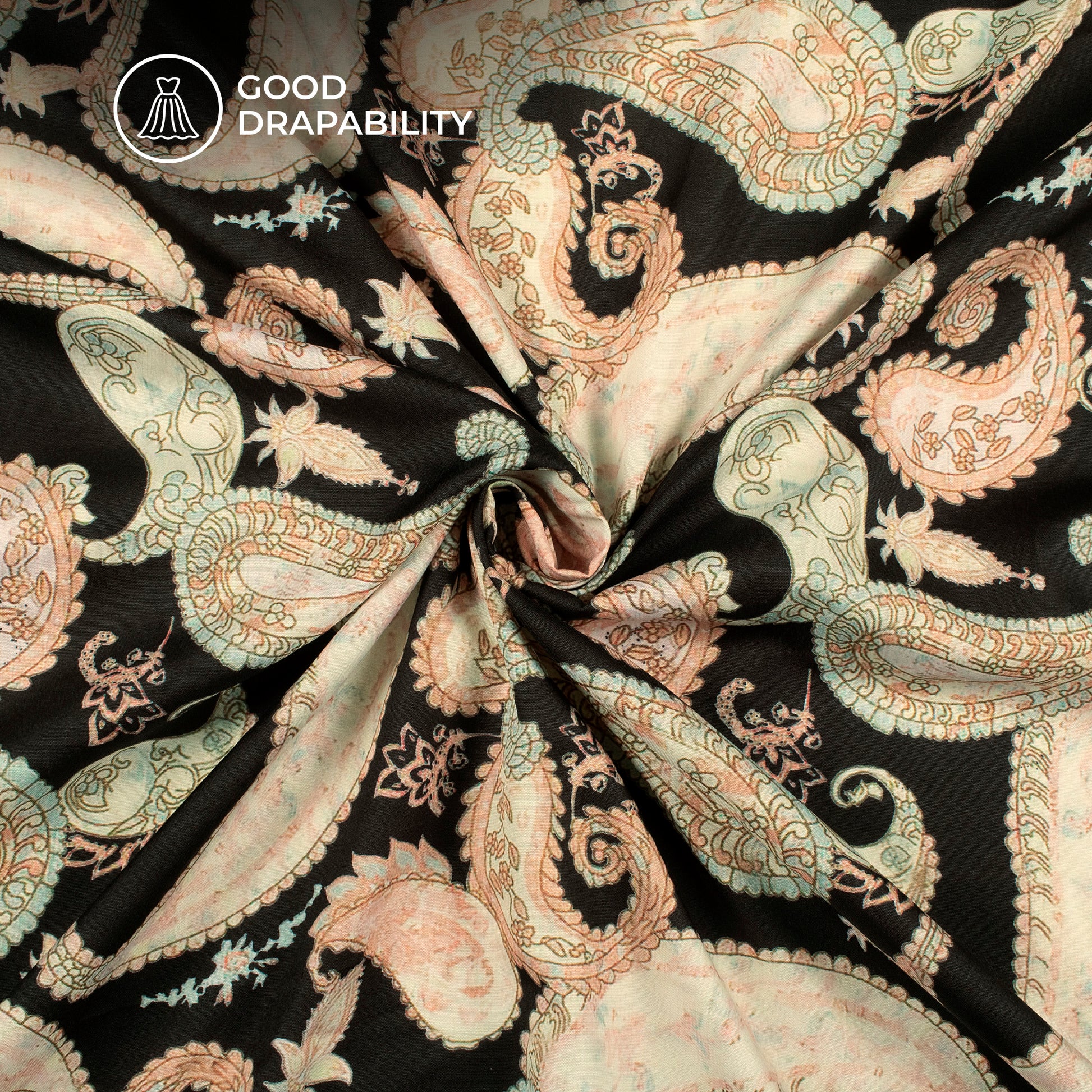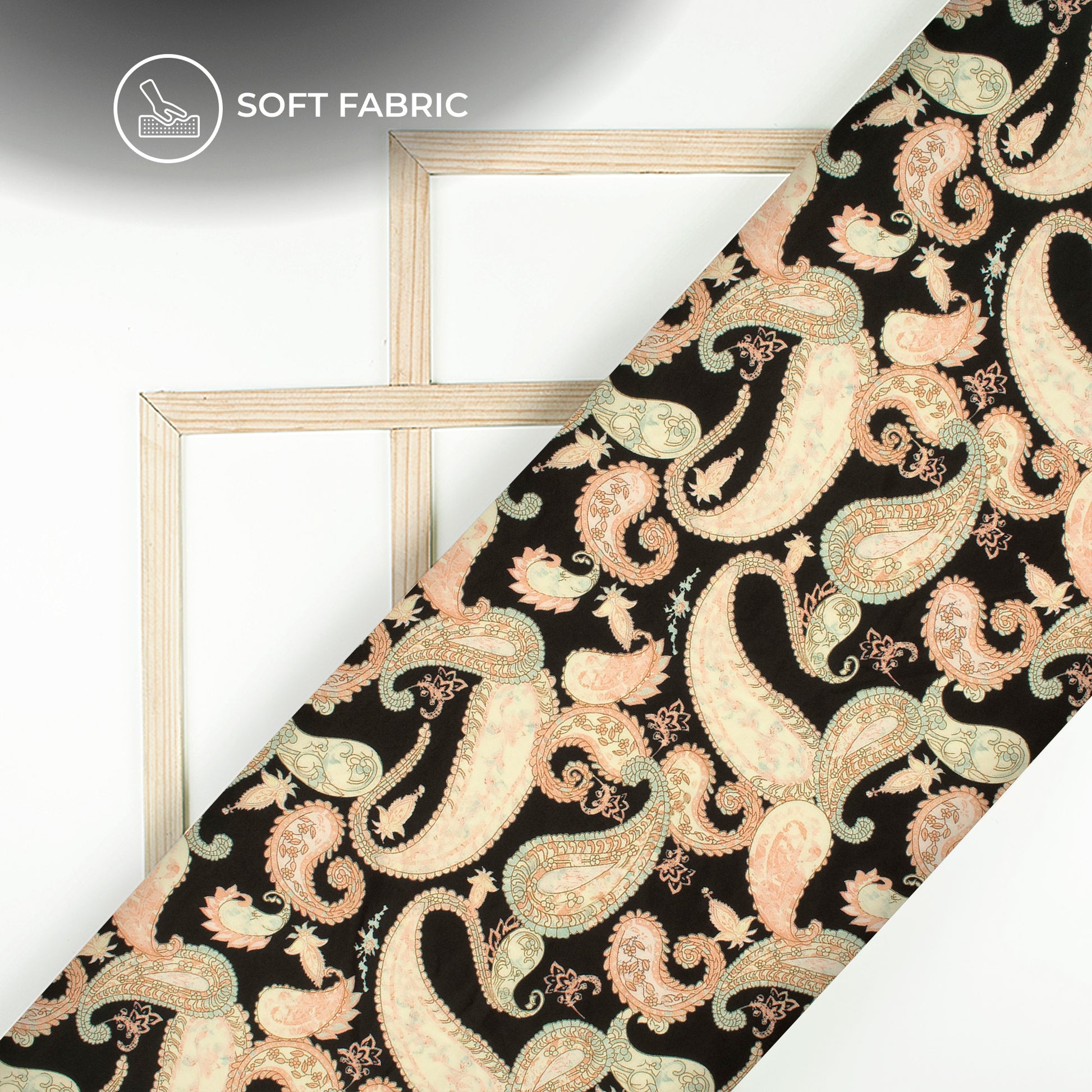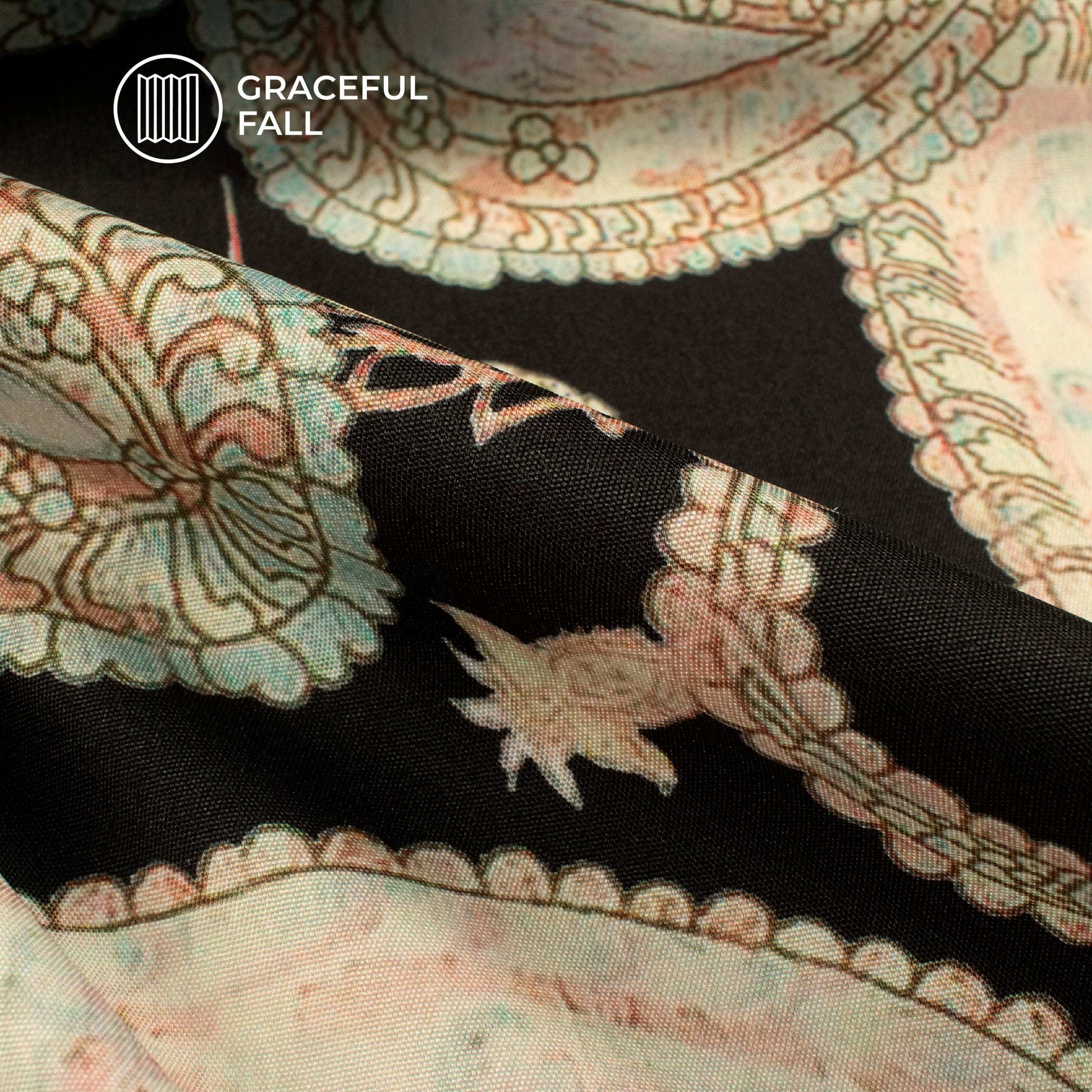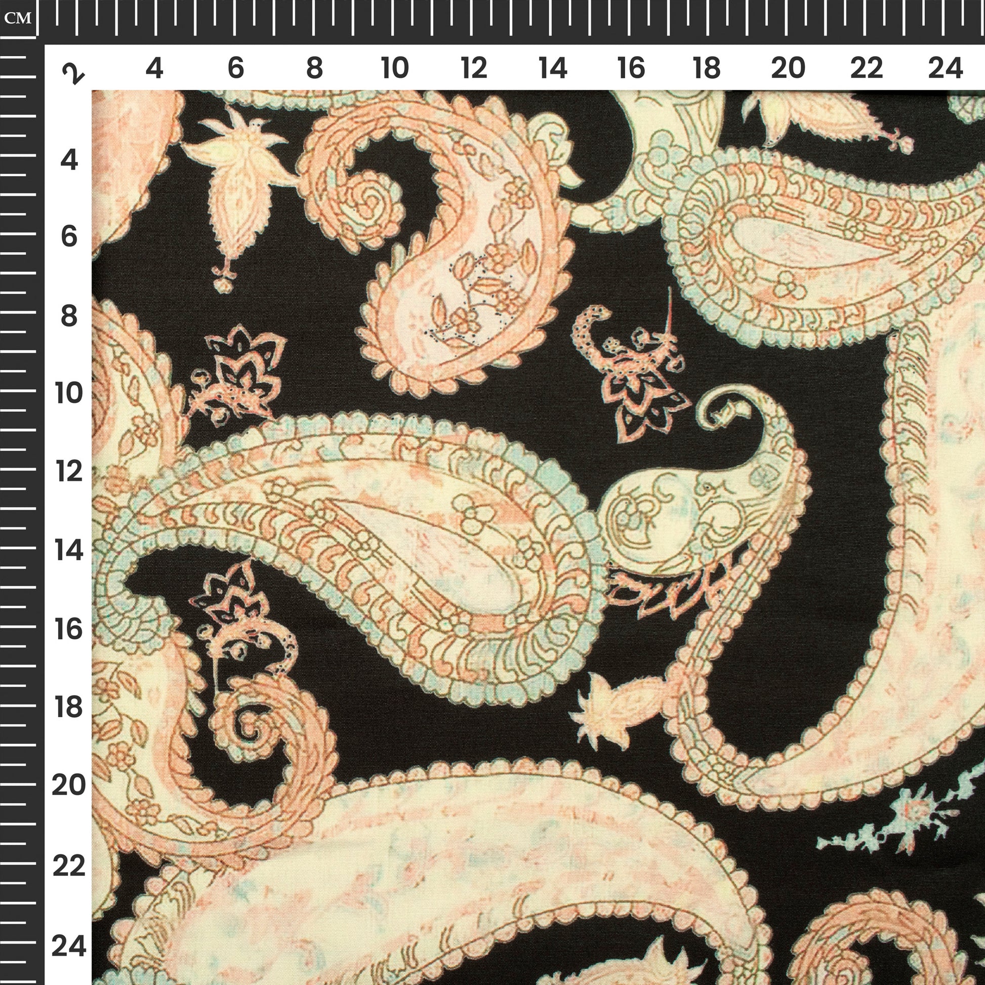 Black And Blush Pink Paisely Digital Print Butter Crepe Fabric