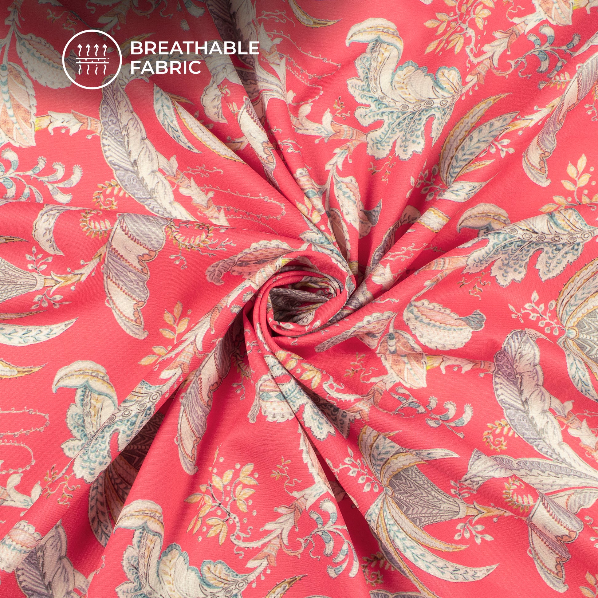 Hot Pink Floral Digital Print Butter Crepe Fabric