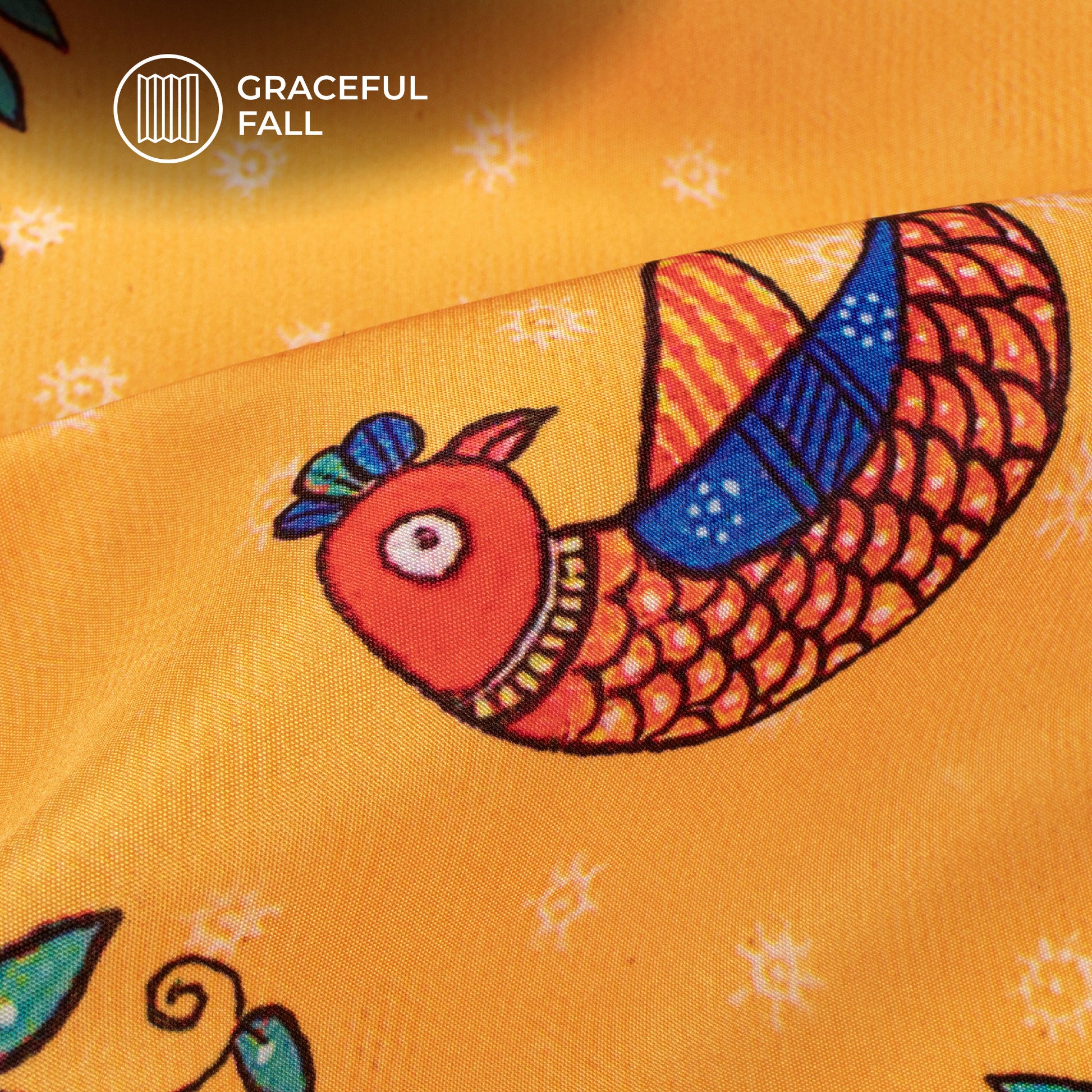 Merigold Orange Madhuvanii Digital Print Butter Crepe Fabric