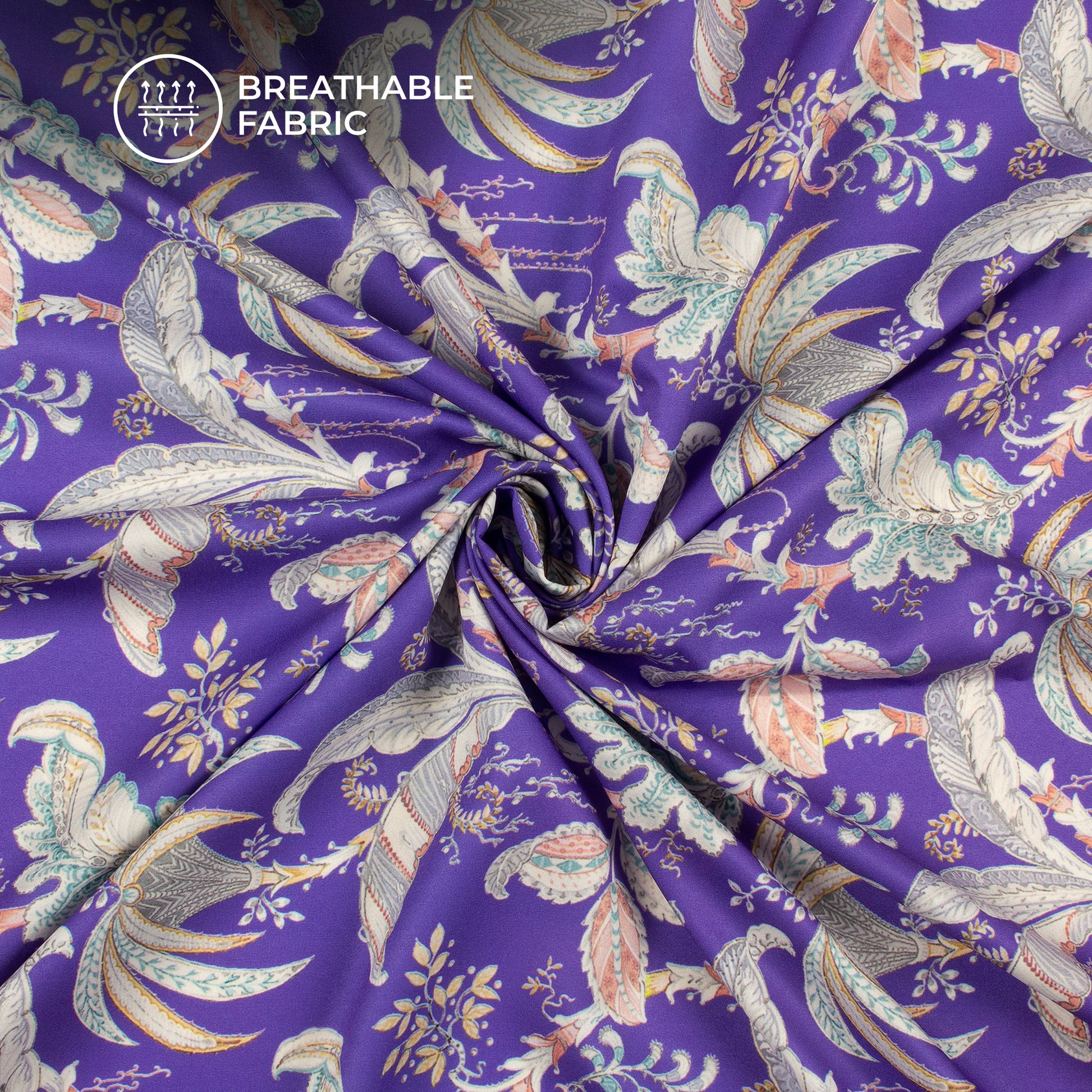 Slate blue Floral Digital Print Butter Crepe Fabric