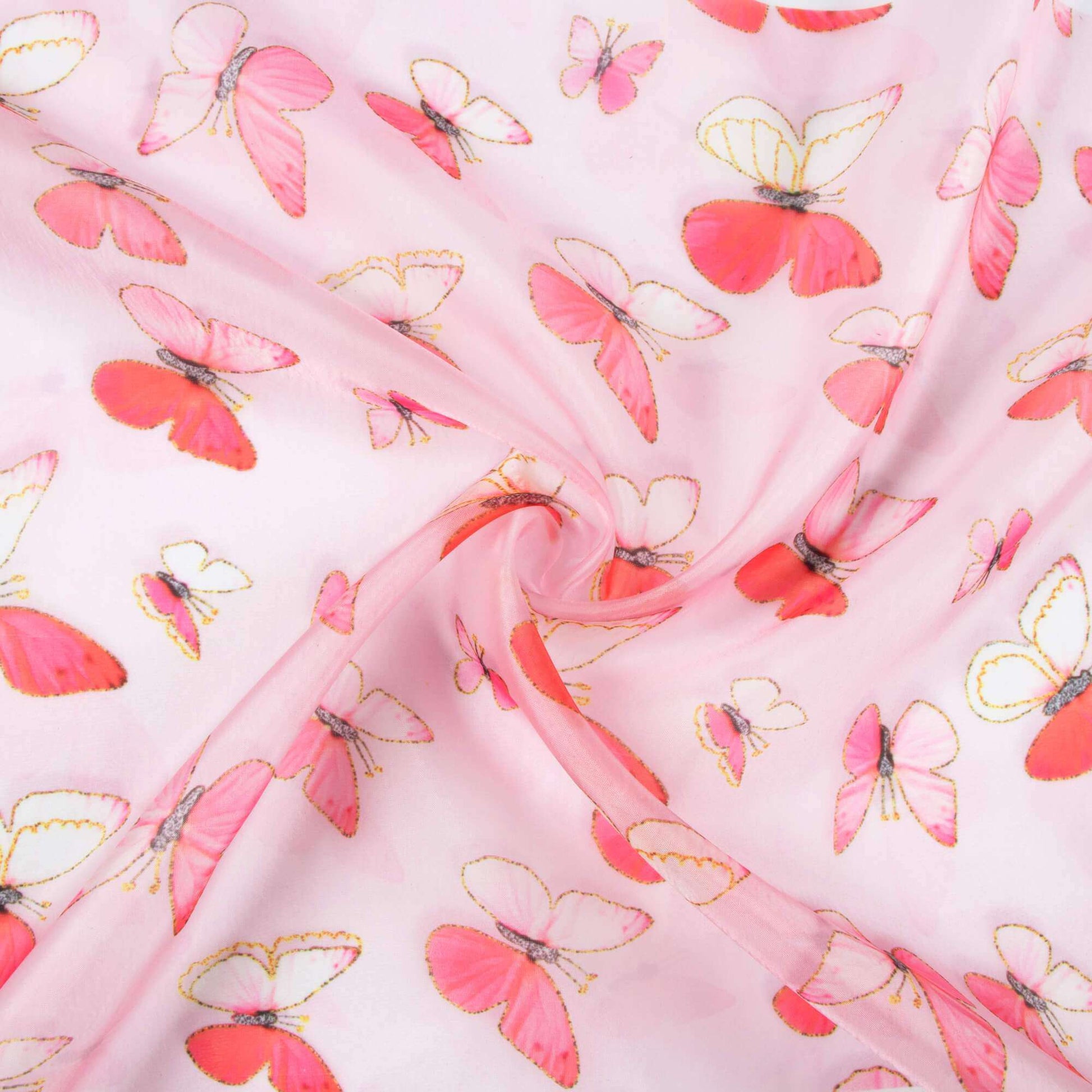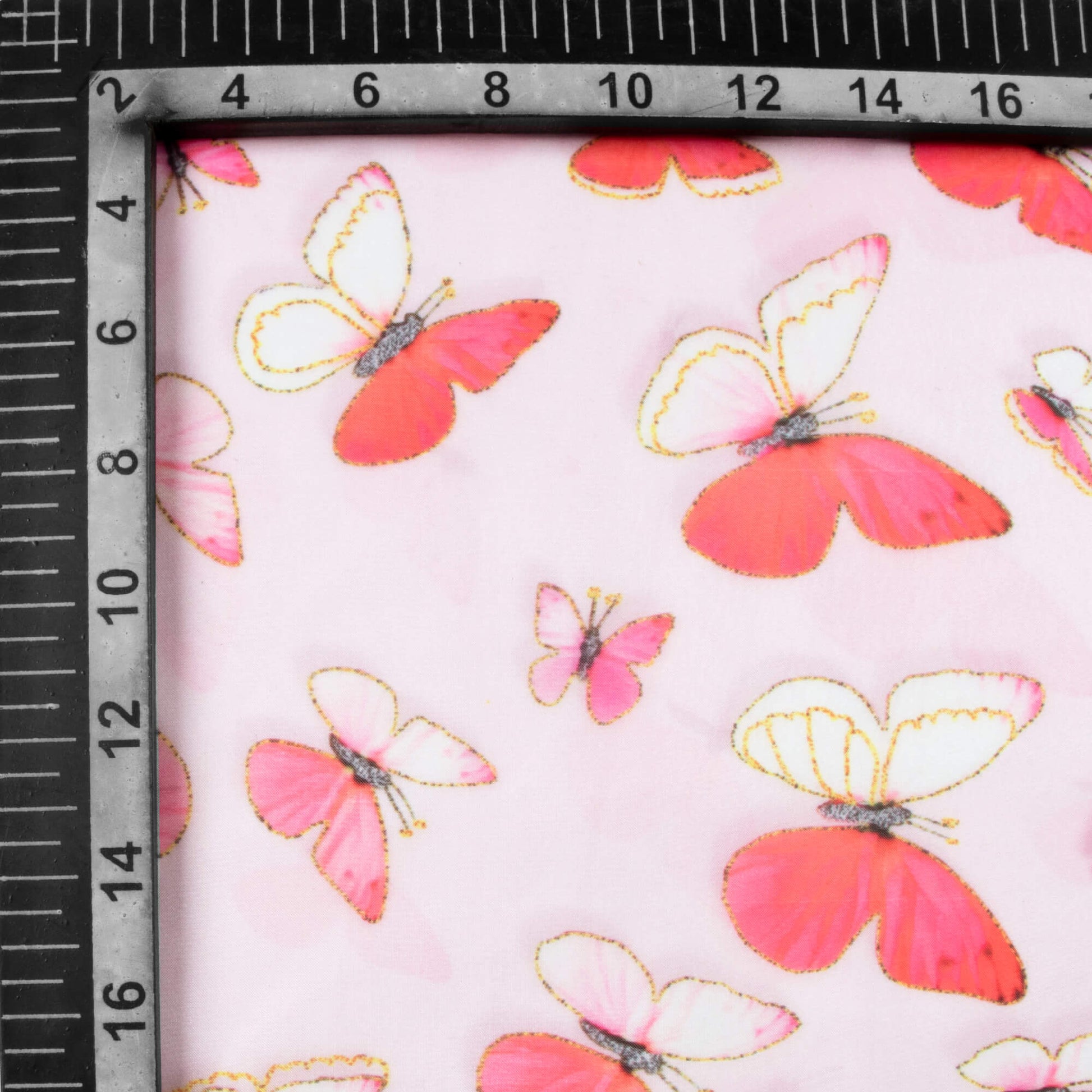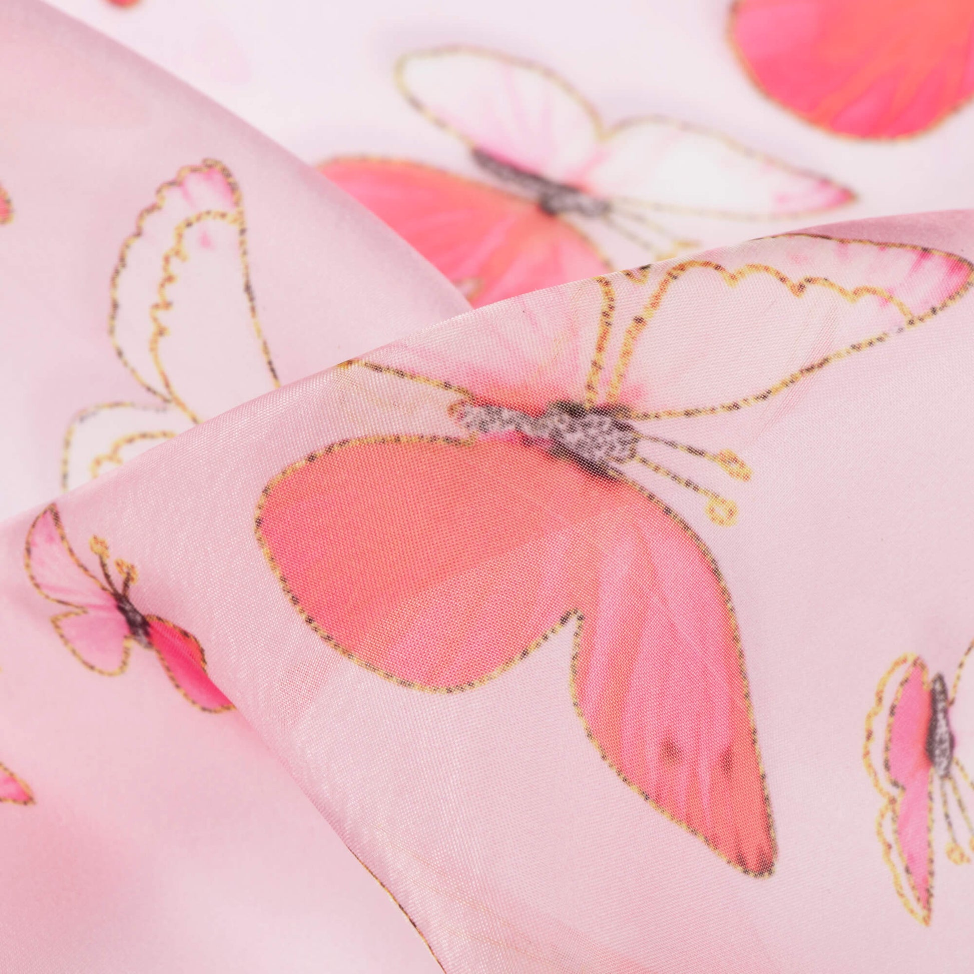 Pale Pink And Punch Pink Butterfly Pattern Hand Paint Effect Digital Print Organza Satin Fabric
