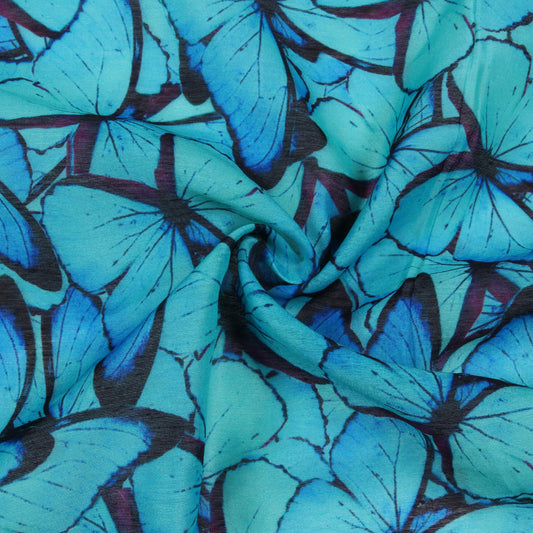 -10% offCyan Blue And Black Butterfly Pattern Digital Print Chanderi Fabric Cyan Blue And Black Butterfly Pattern Digital Print Chanderi Fabric