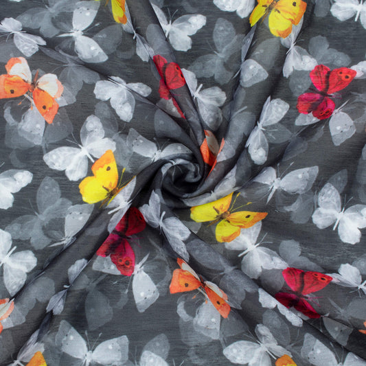 -10% offGrey And Yellow Butterfly Pattern Digital Print Chanderi Fabric Grey And Yellow Butterfly Pattern Digital Print Chanderi Fabric