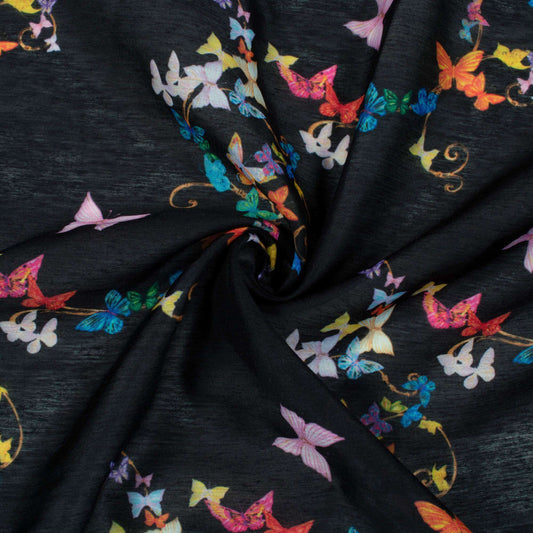 -10% offBlack And Orange Butterfly Pattern Digital Print Chanderi Fabric Black And Orange Butterfly Pattern Digital Print Chanderi Fabric