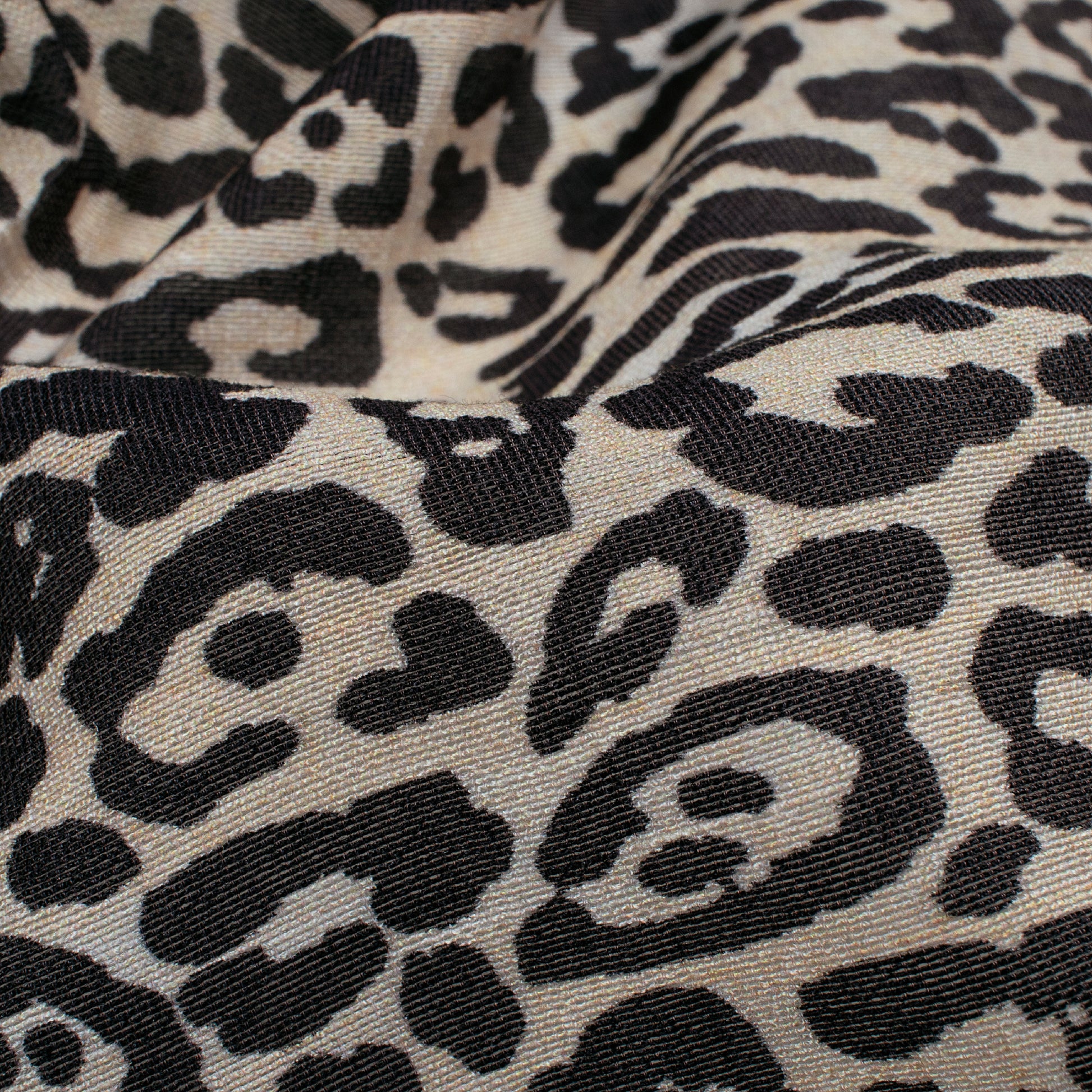 Black And Beige Animal Pattern Digital Print Viscose Chanderi Fabric