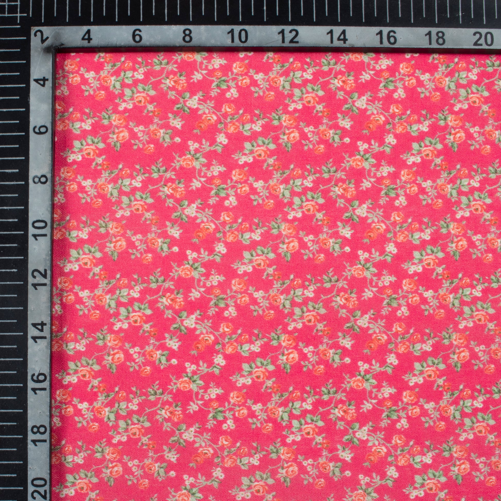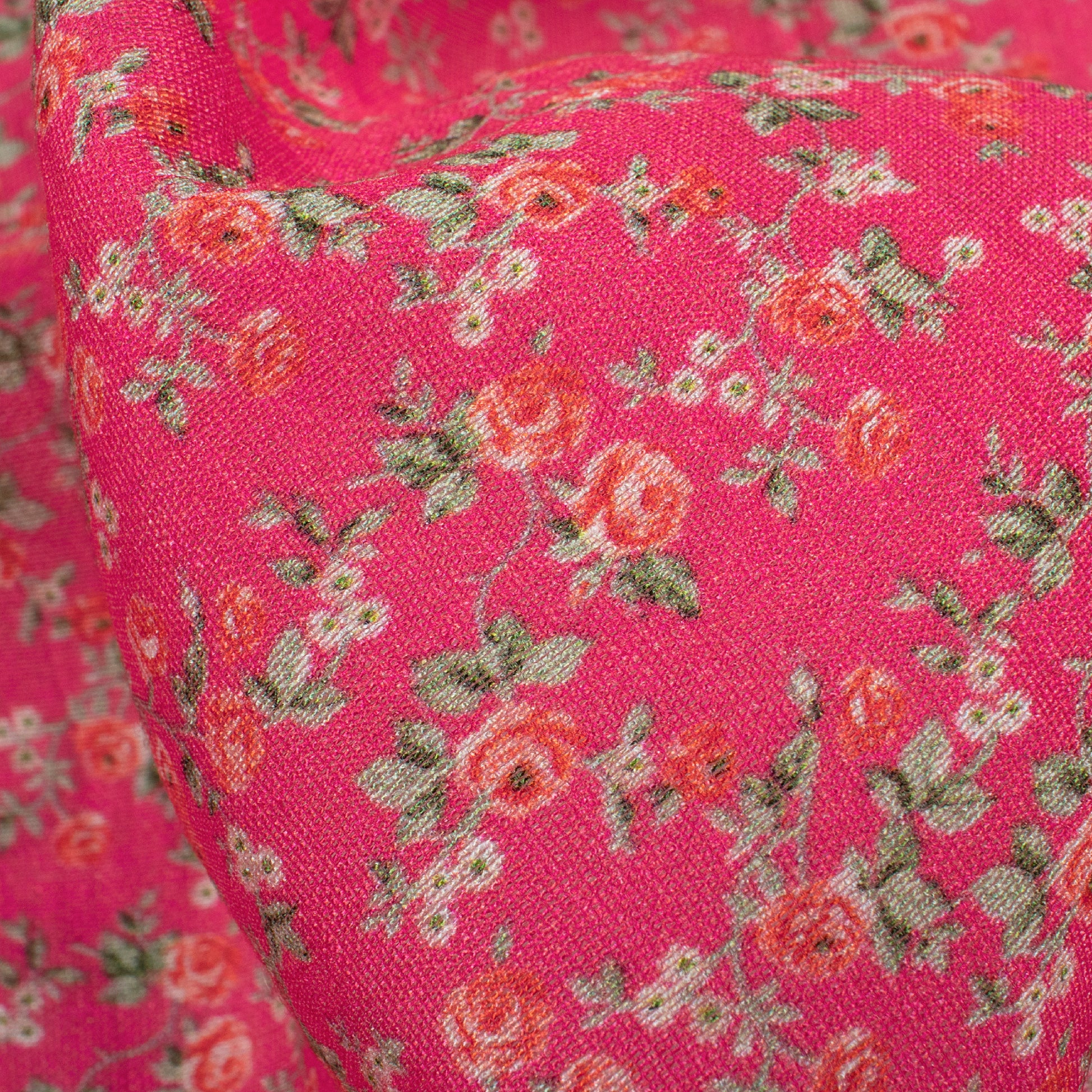 Persian Red And Peach Floral Pattern Digital Print Viscose Chanderi Fabric
