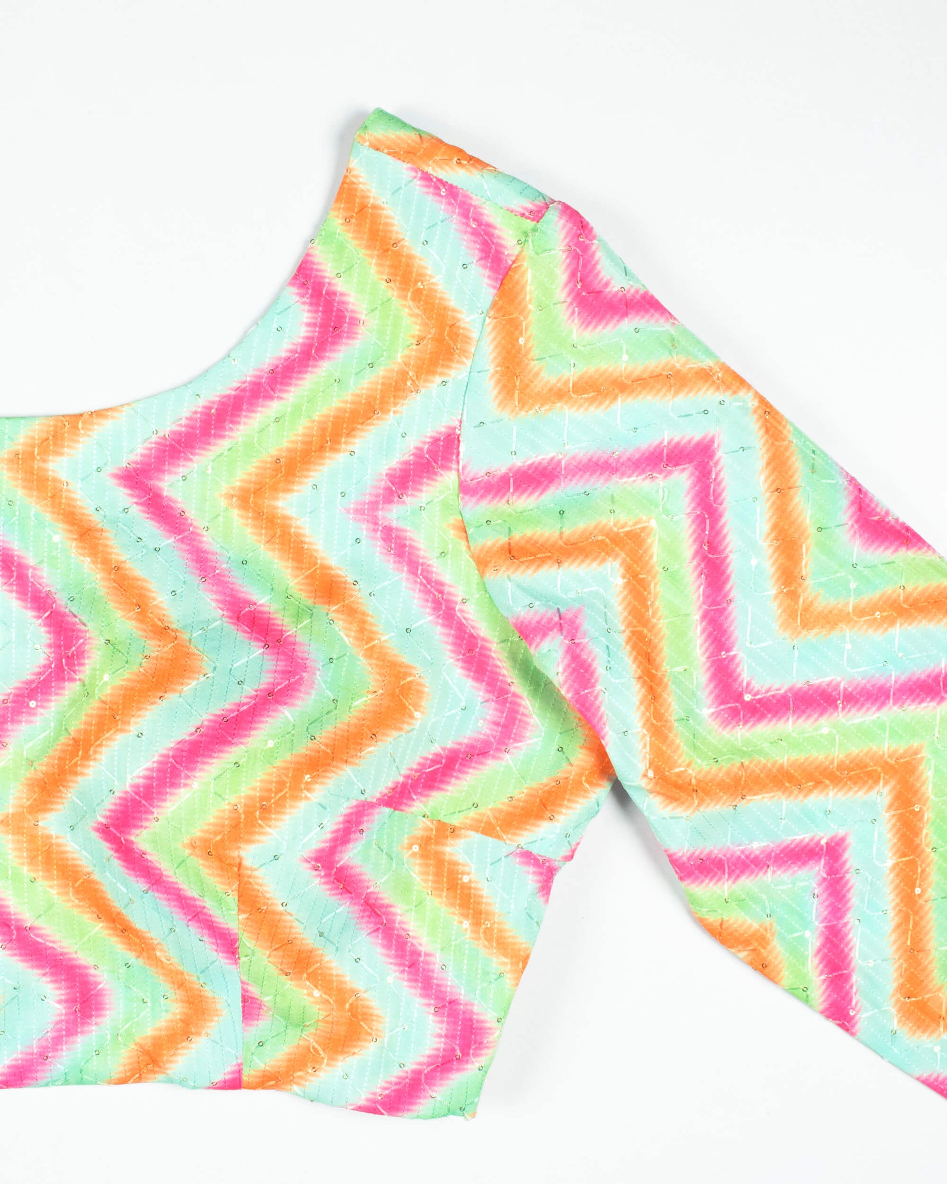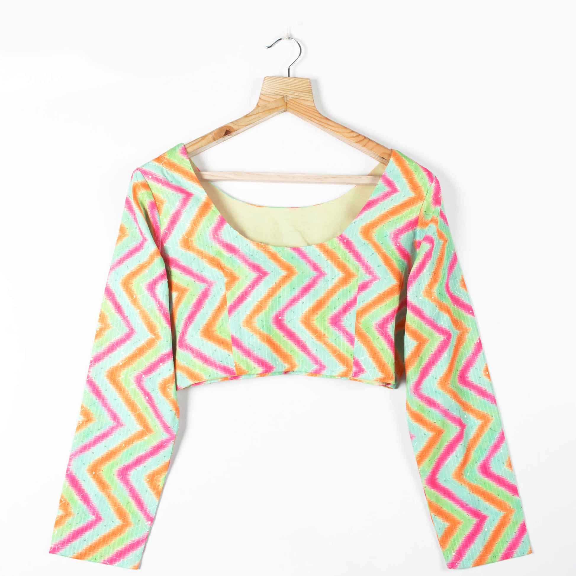 Butter Crepe blouse with Sequins Embroidery looks amazing. It features full sleeves, a side zip closing, V-neckline, and blouse pads. The fabric is soft and allows movement easily. Match this blouse with gorgeous sarees and redefine your personality.