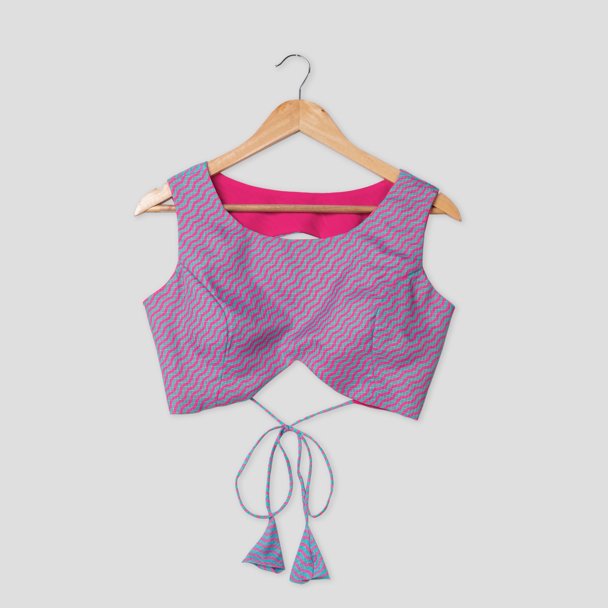 Pink And Blue Chevron Round Back Side Zip Blouse