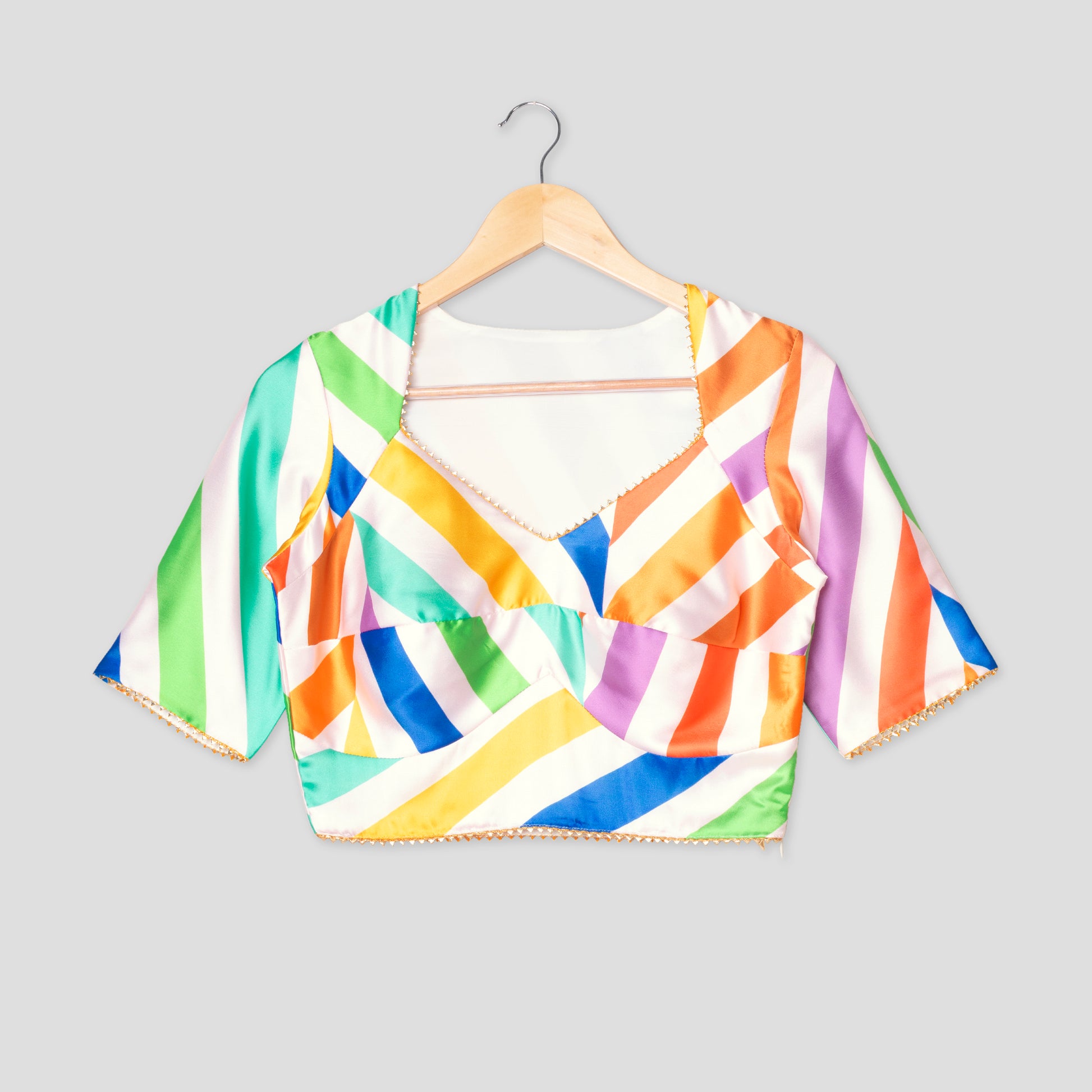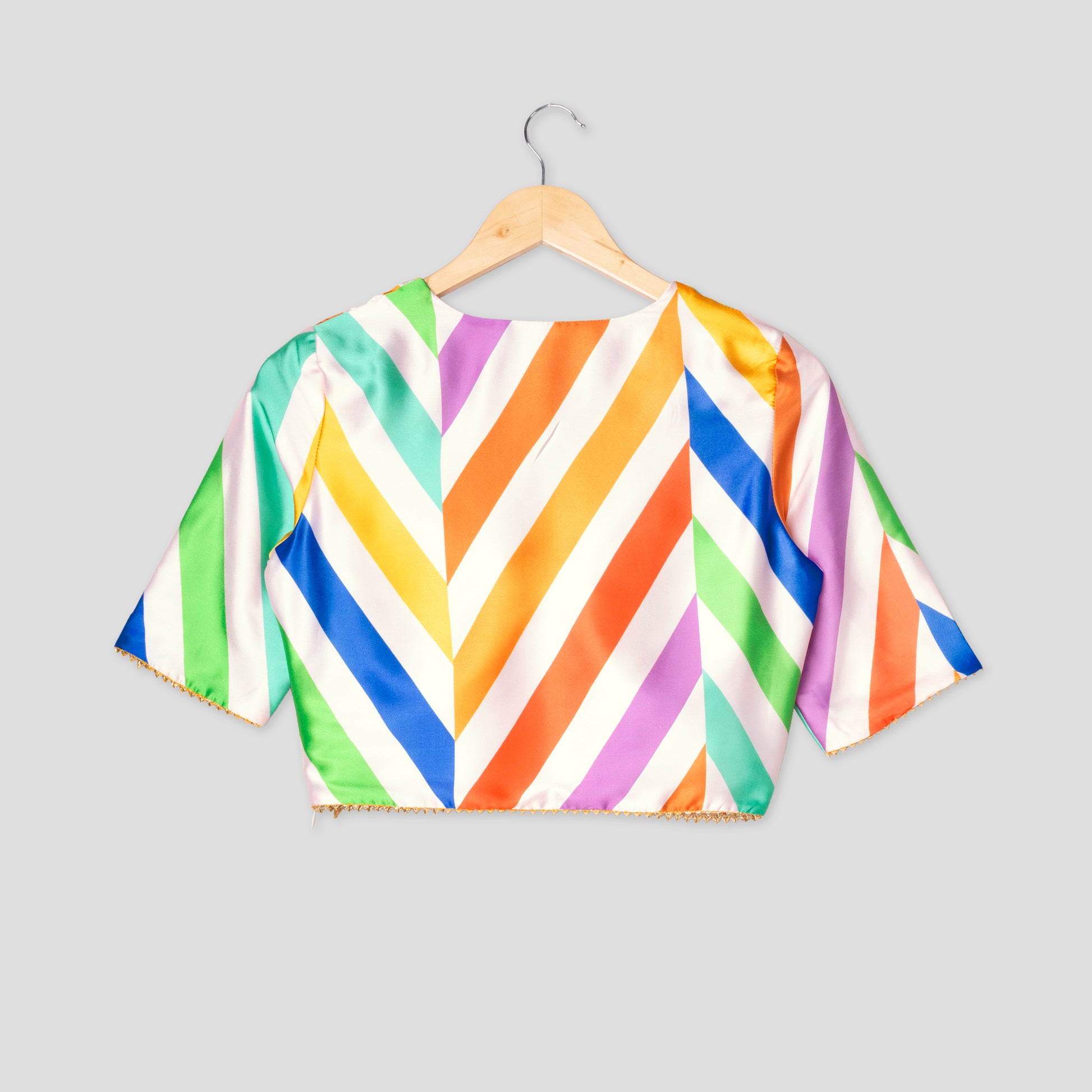 Show-Stopping Rainbow Chevron Triangle Lace Blouse