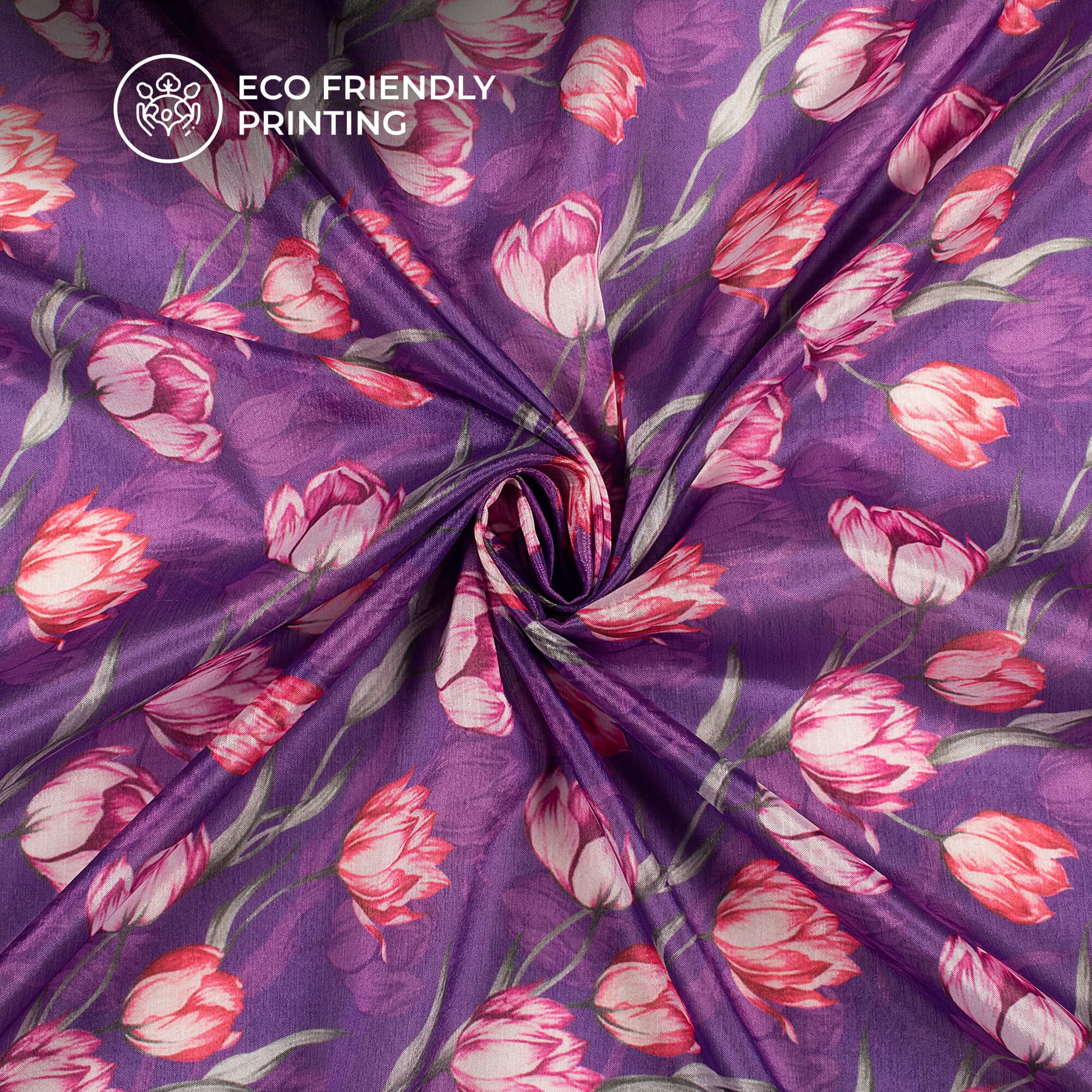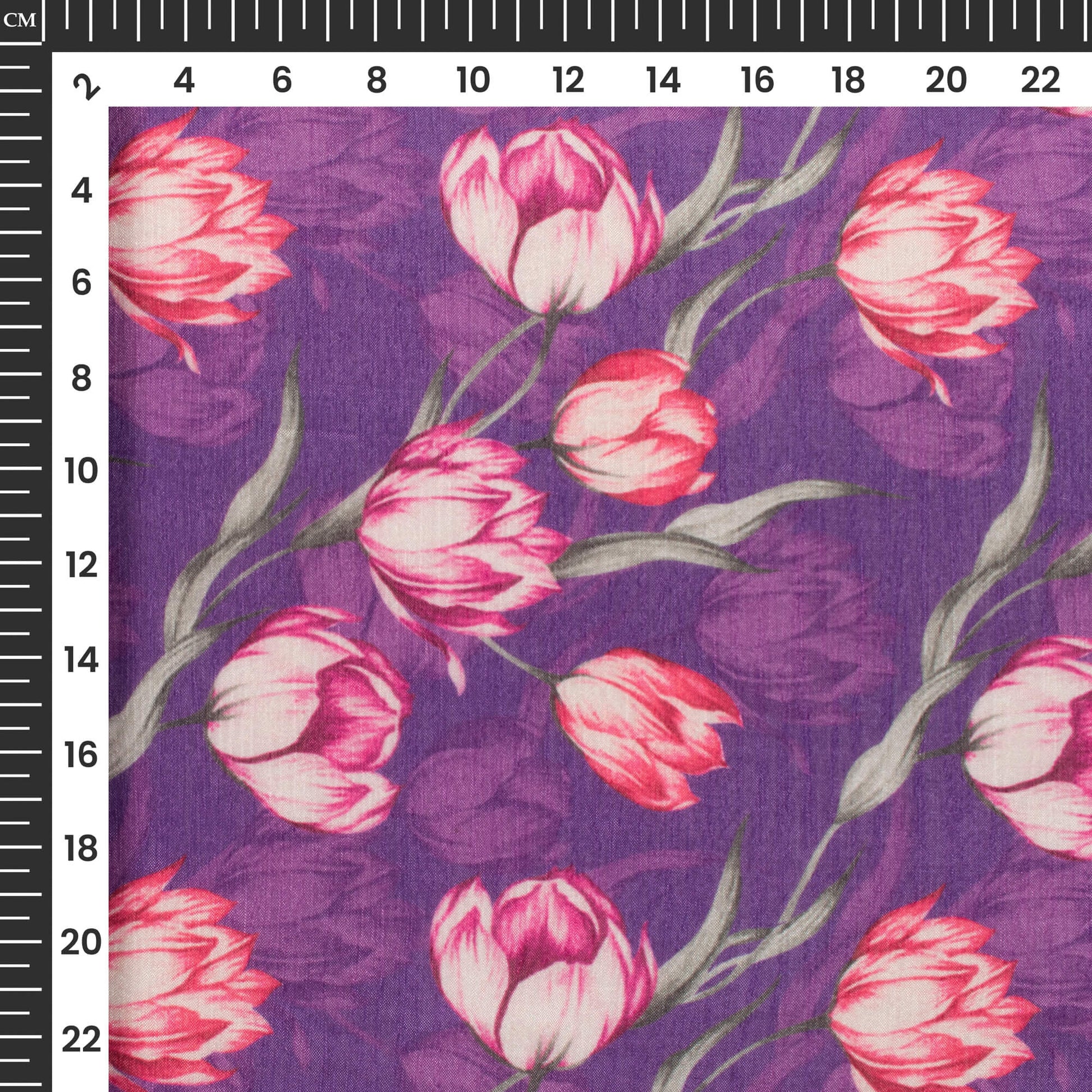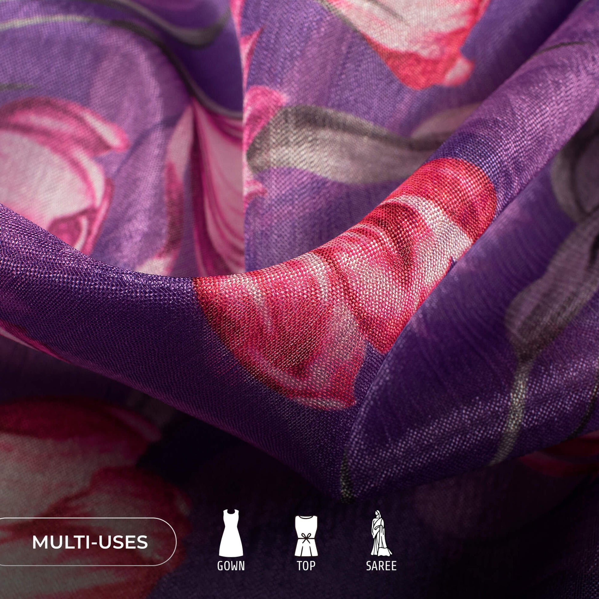 Beautiful Tulip Floral Digital Print Poly Chinnon Chiffon Fabric