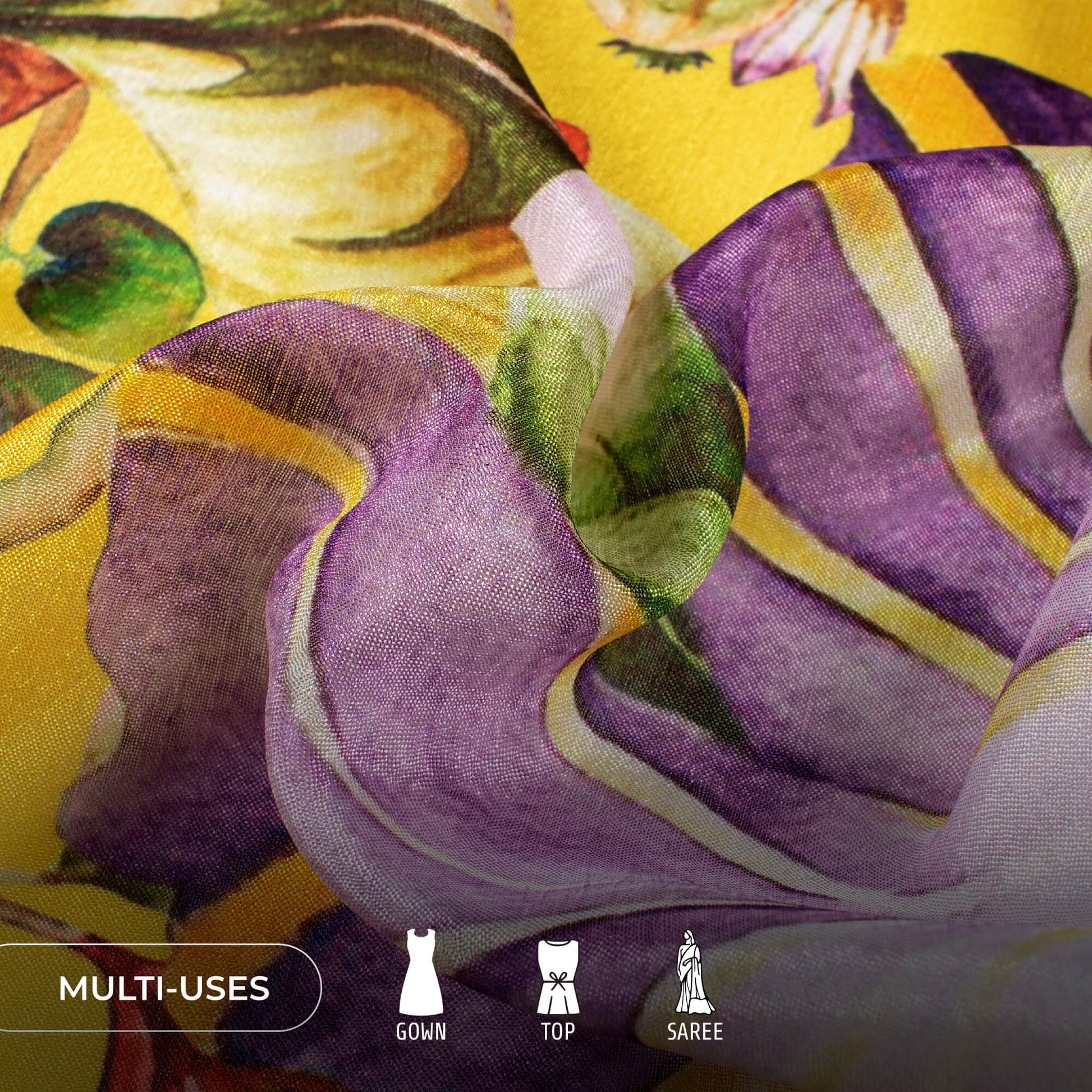 Chinnon Chiffon fabric is a strong and sheer fabric that is suitable for making everyday outfits. The Eco-friendly prints on this fabric make it a must-have in your wardrobe. The fabric is lightweight and has a great drapability, keeping you comfortable all day long. Carrying a subtle sheen & flowy fall, Chinnon Chiffon fabric is suitable for all designing flings, be it a gown, skirt, dress, lehenga, saree, & more.