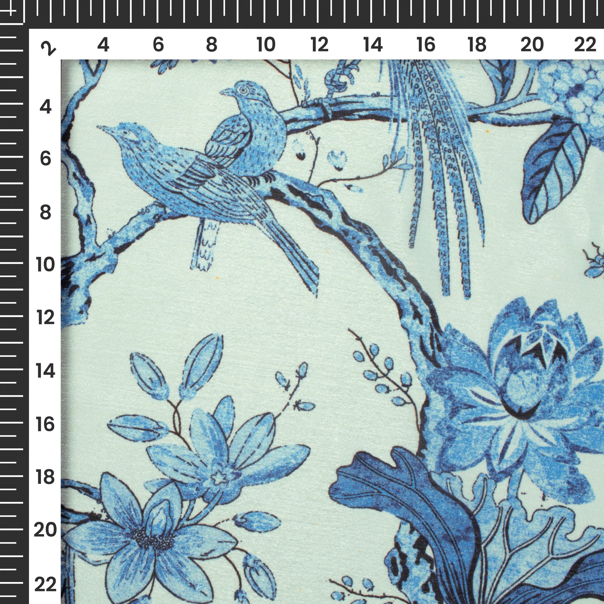 Impresive Tufts Blue Floral Digital Print Poly Chinnon Chiffon Fabric