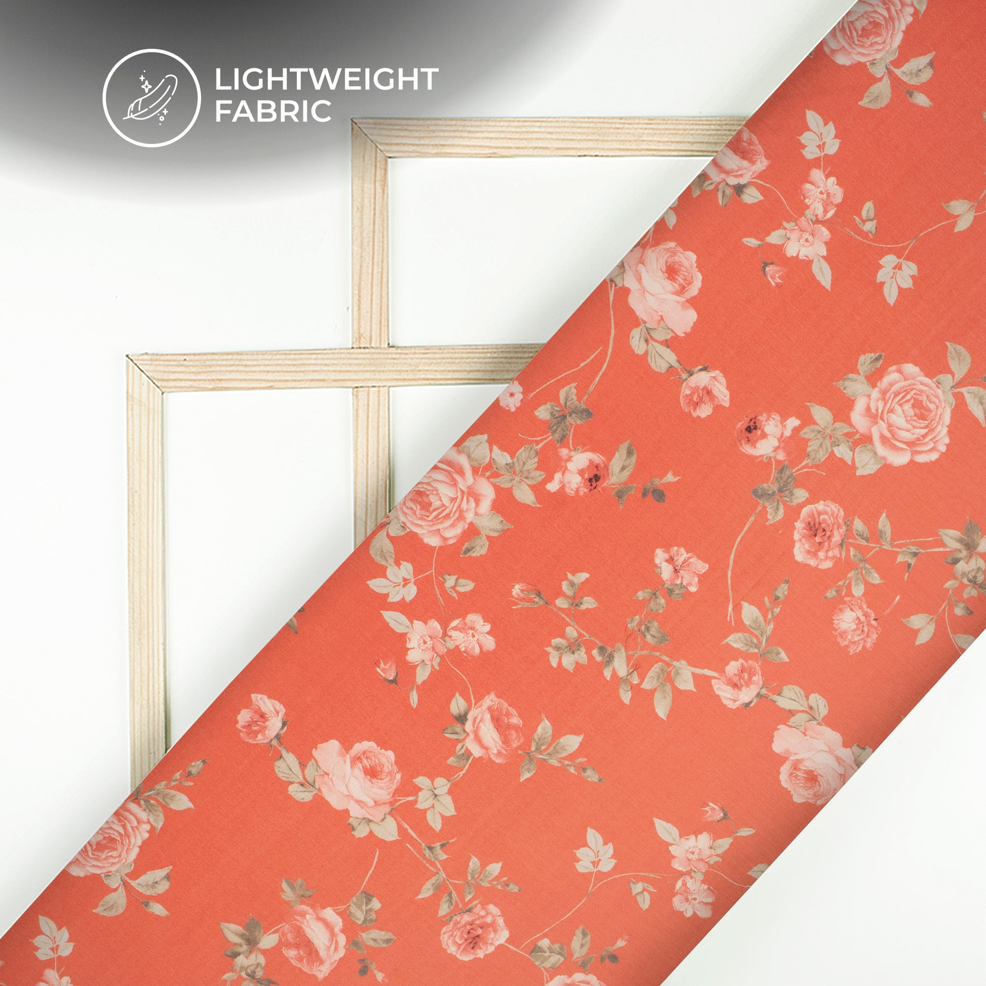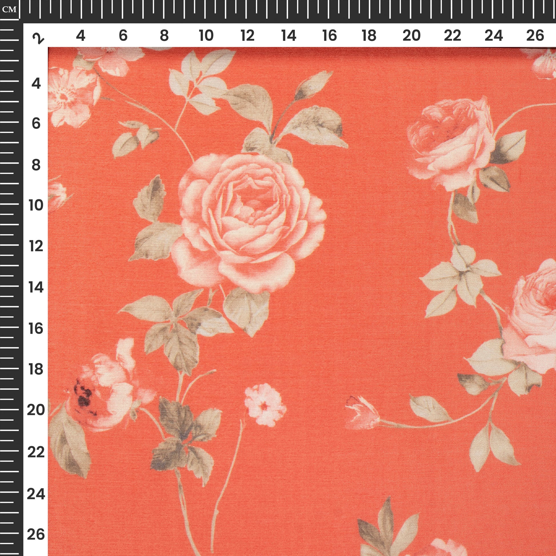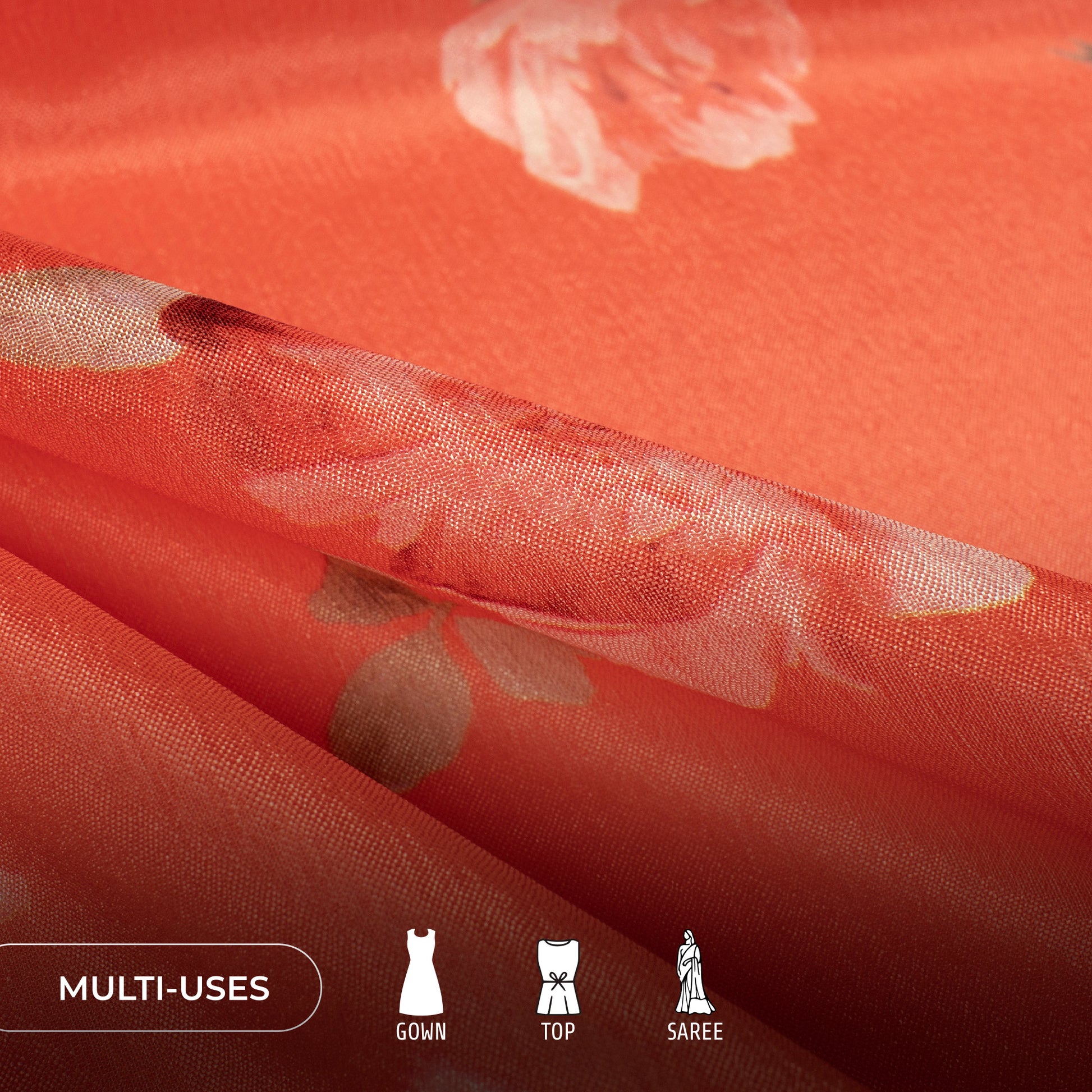 Vermillion Red Floral Digital Print Poly Chinnon Chiffon Fabric