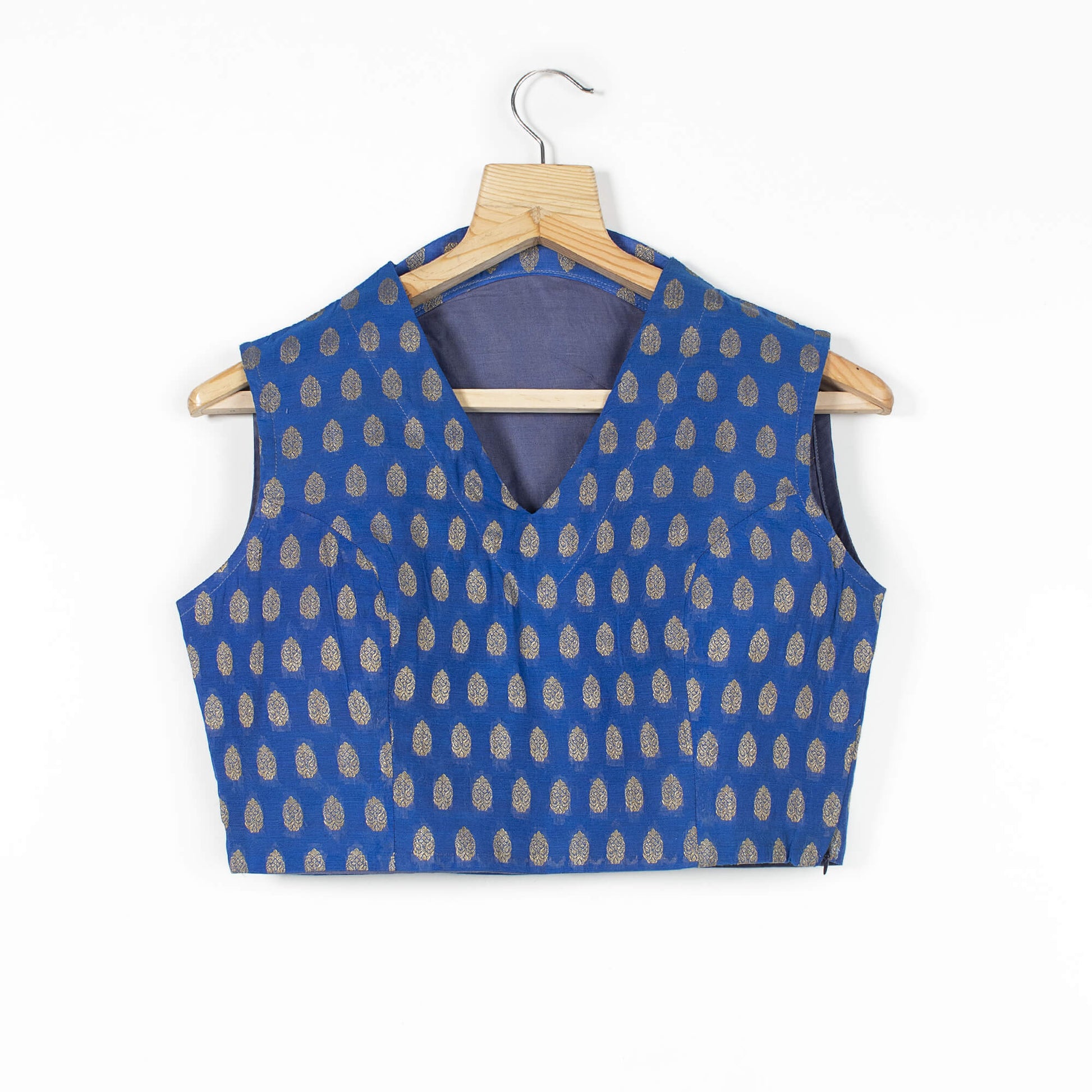 Chanderi Blouse looks gorgeous and has an amazing pattern formed on it, which is versatile. It features a side zip closure, V-neckline and is sleeveless.This fabric is unique in its own traditional way resembling the culture. Match it with your favorite saree and this blouse won't disappoint you.