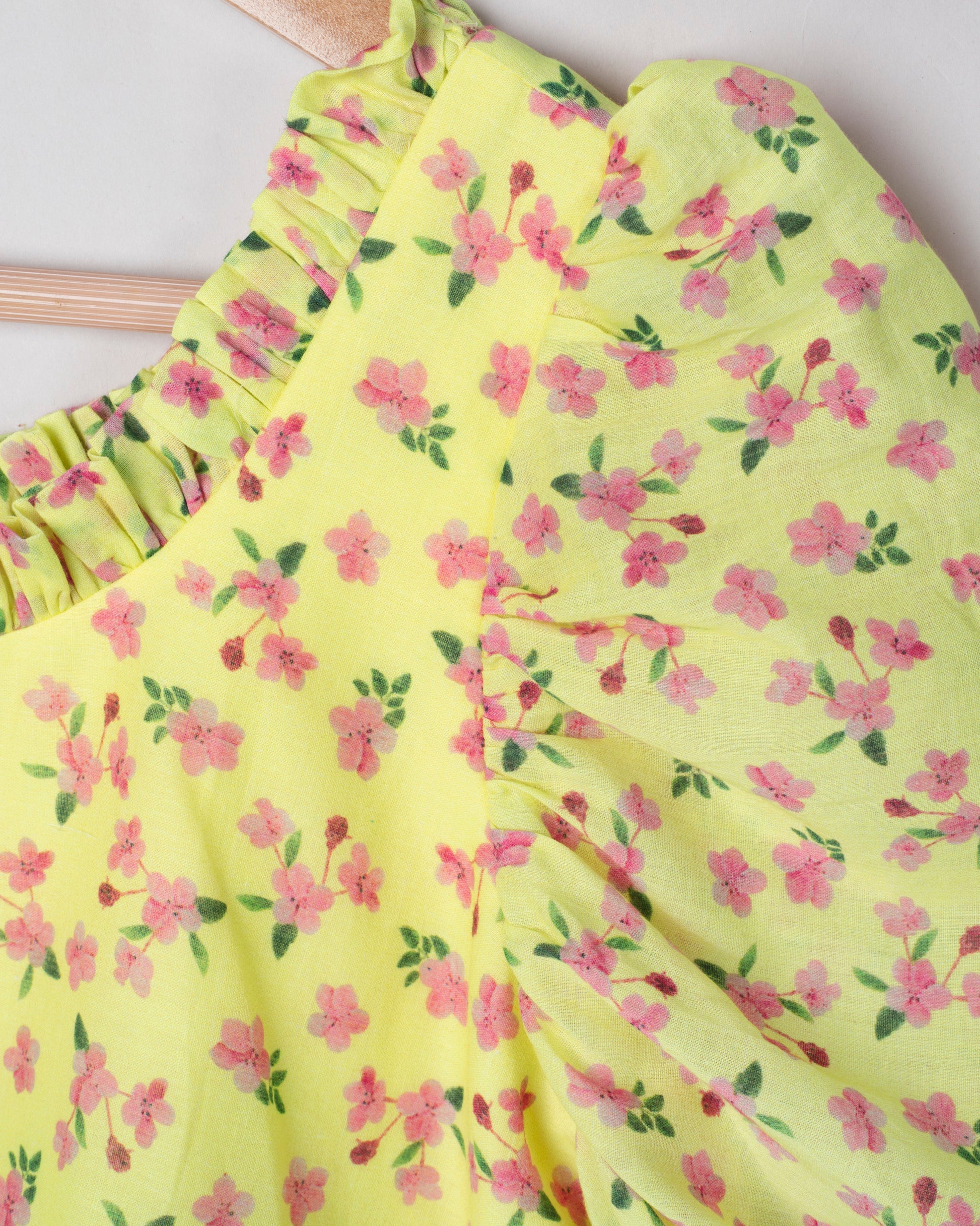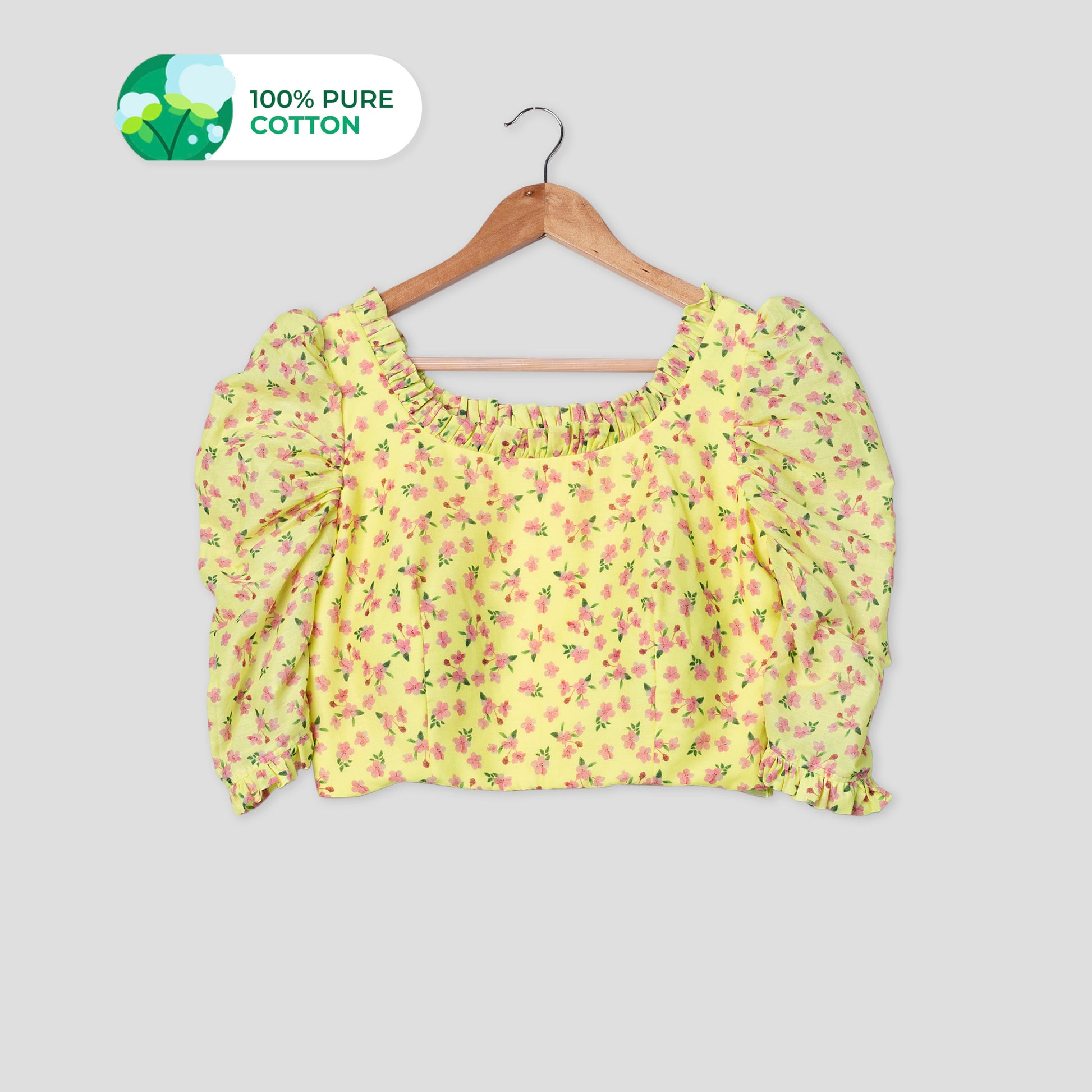 Lemon Yellow Ruffle Collar Pure Cotton Blouse