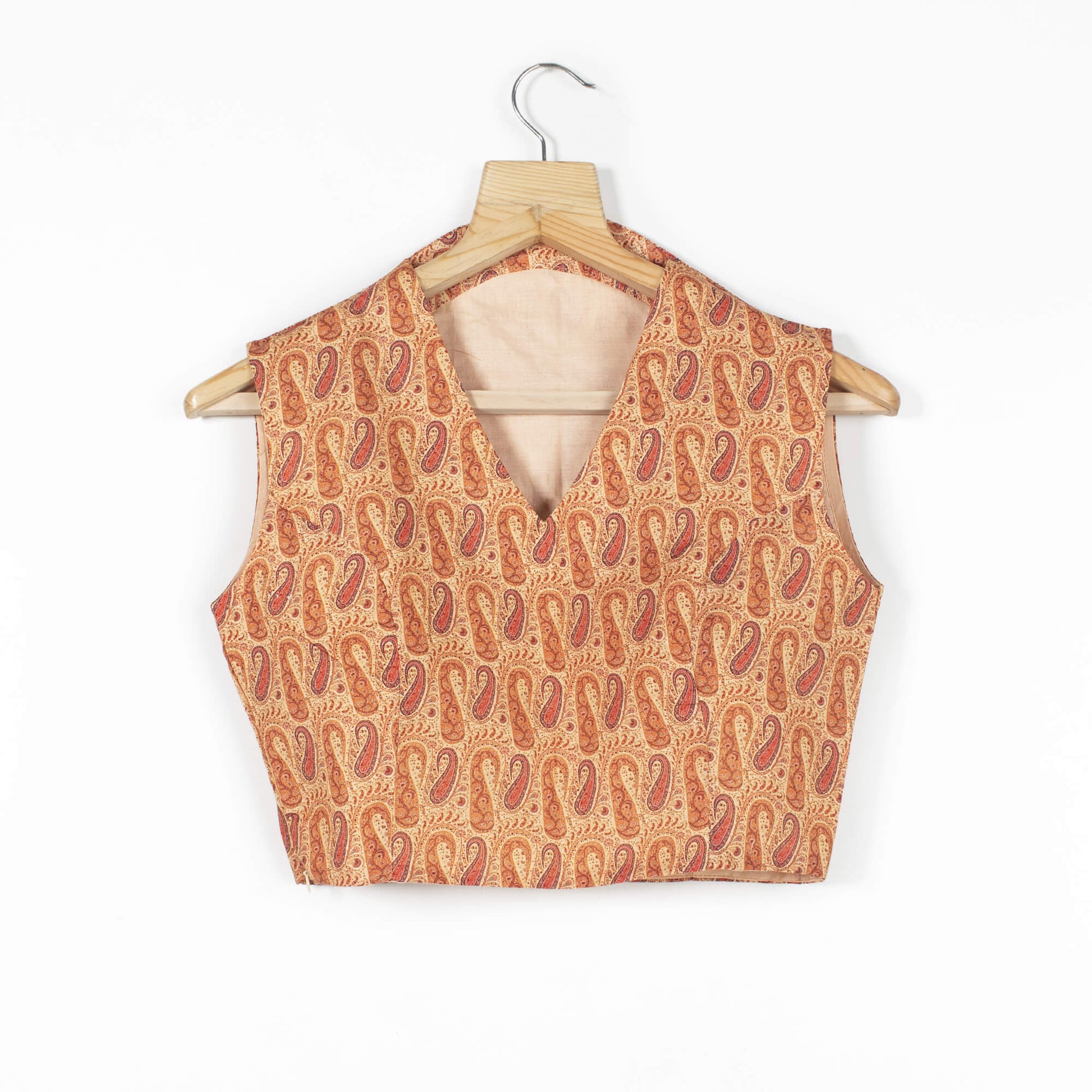 Linen Blouse looks ravishing. It features a side zip, with a V-neckline, and is sleeveless. Linen fabric feels cool; it is also breathable and is stronger and more lustrous.This blouse matched with the perfect saree brings out the best look in you.