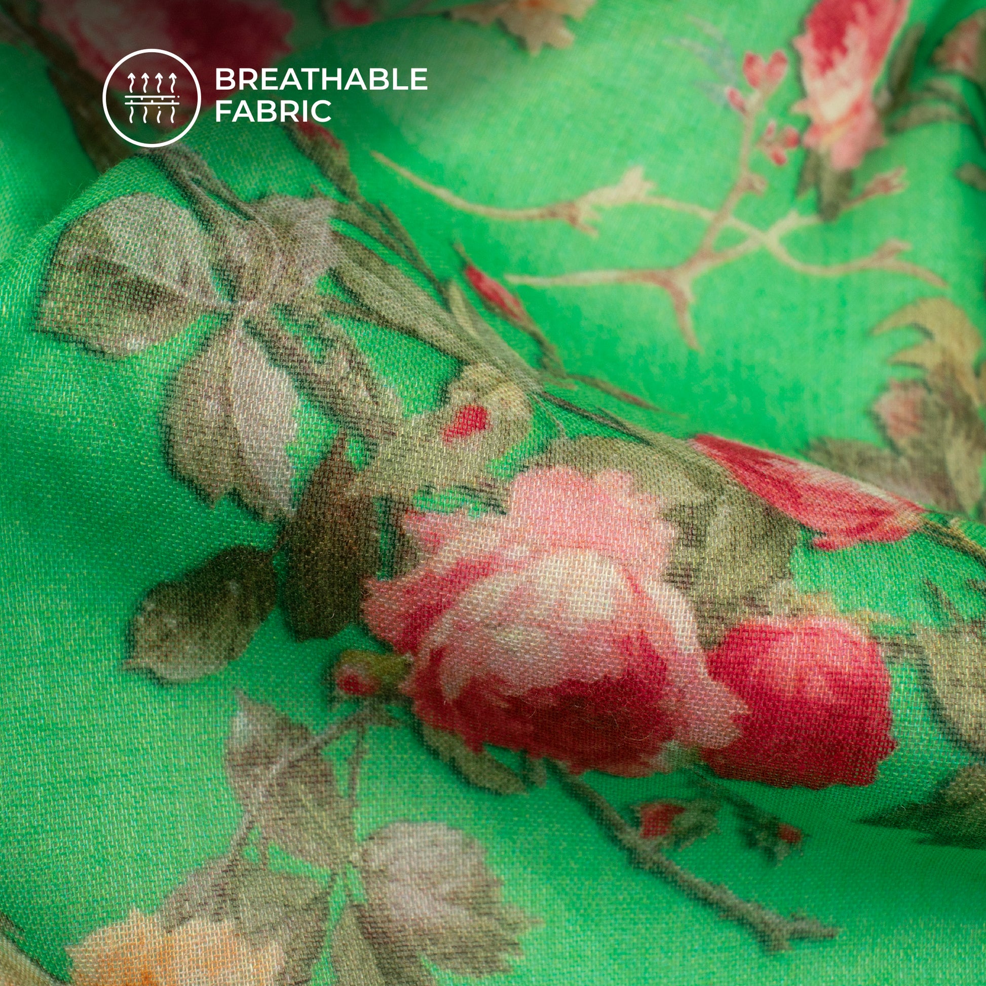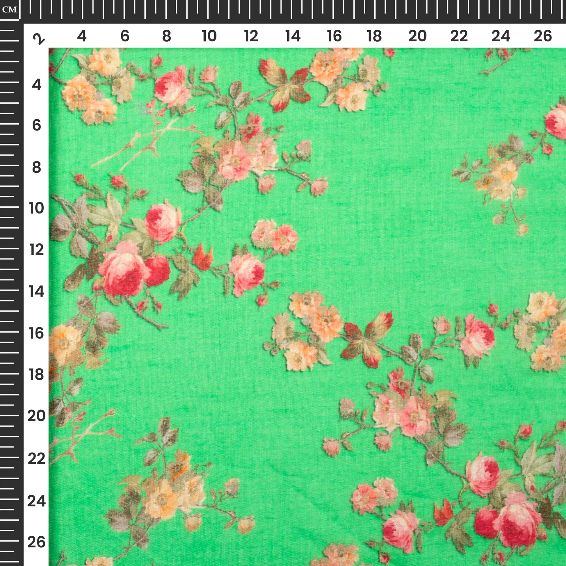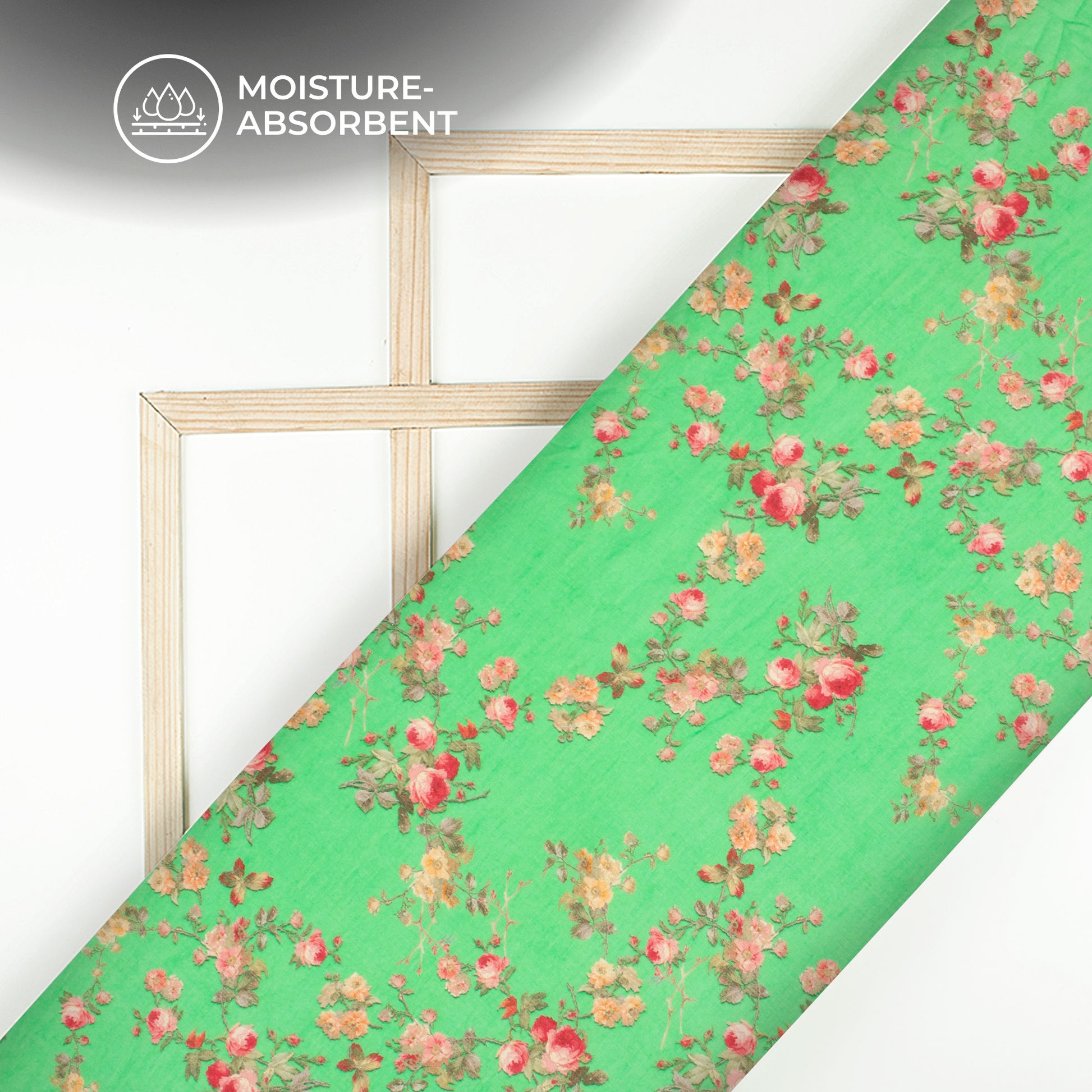 Cool Green Floral Digital Print Pure Cotton Mulmul Fabric