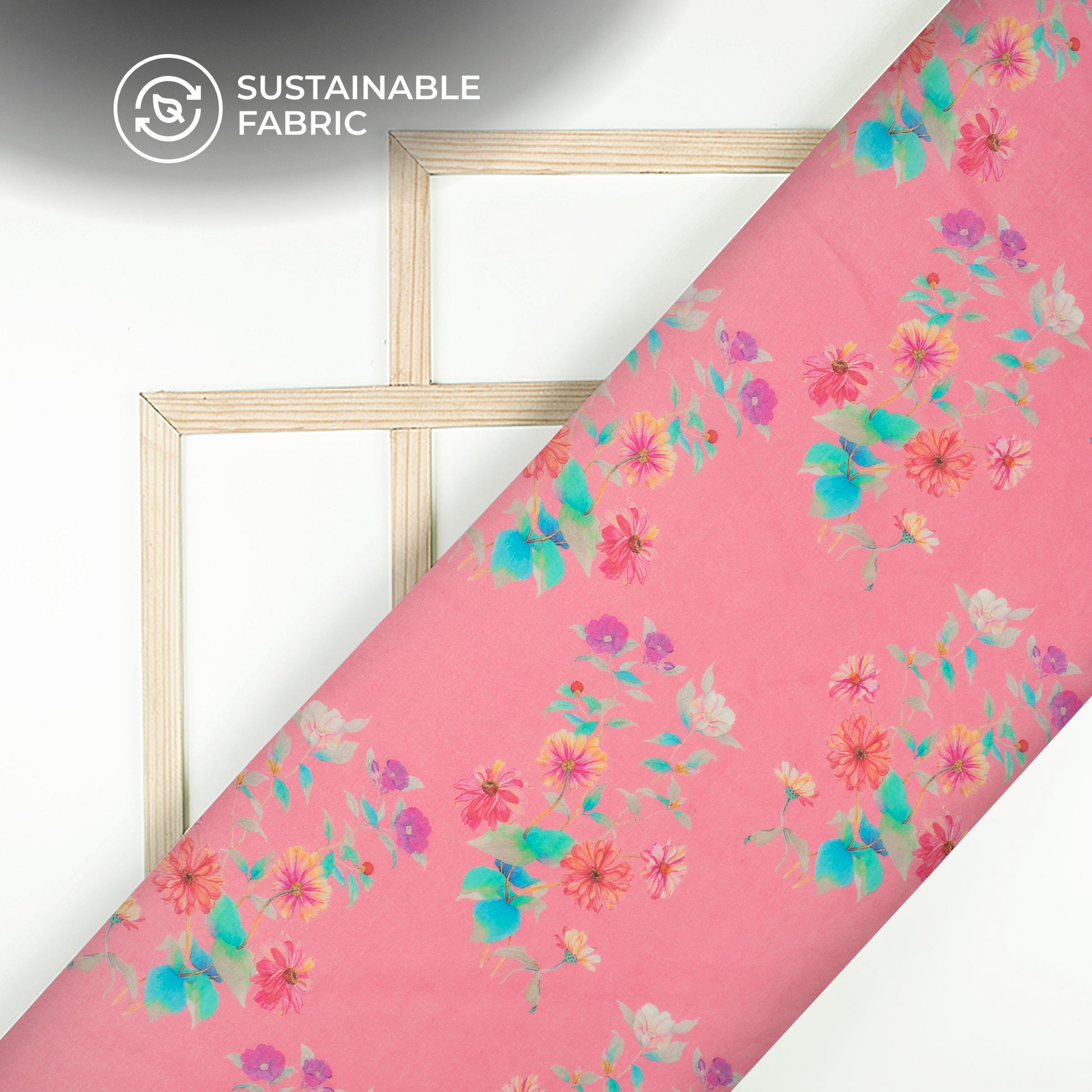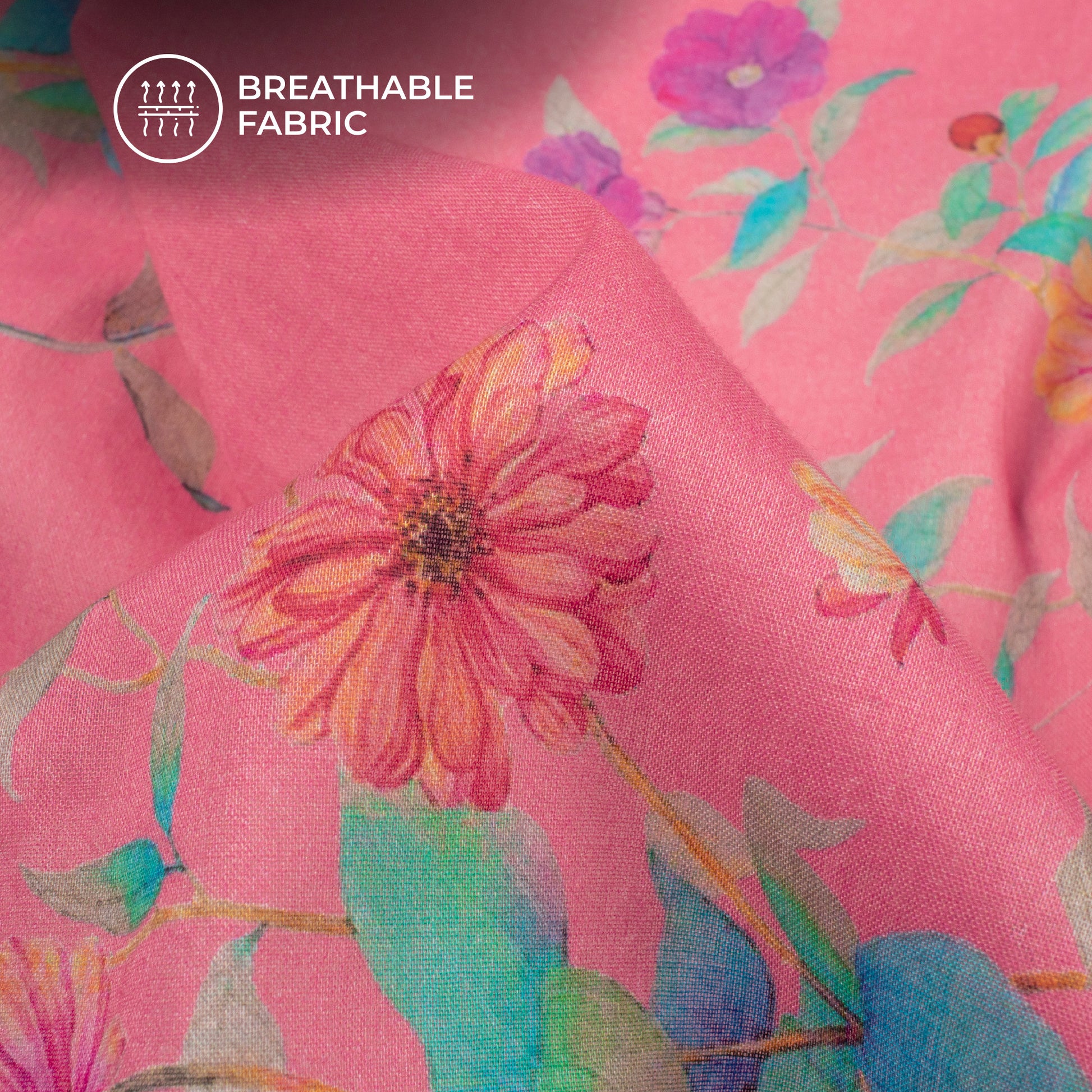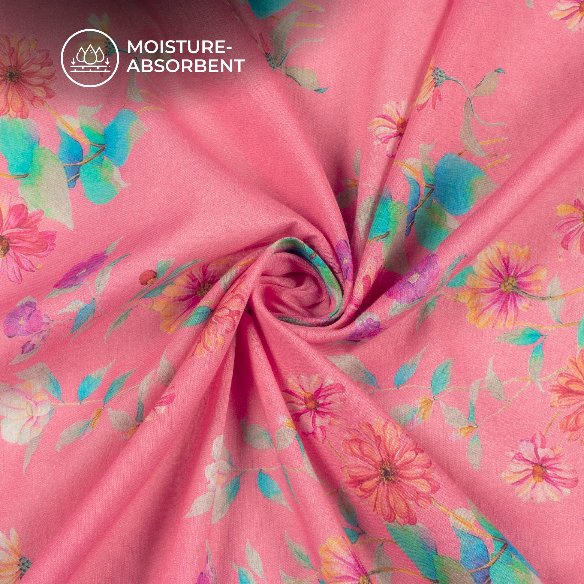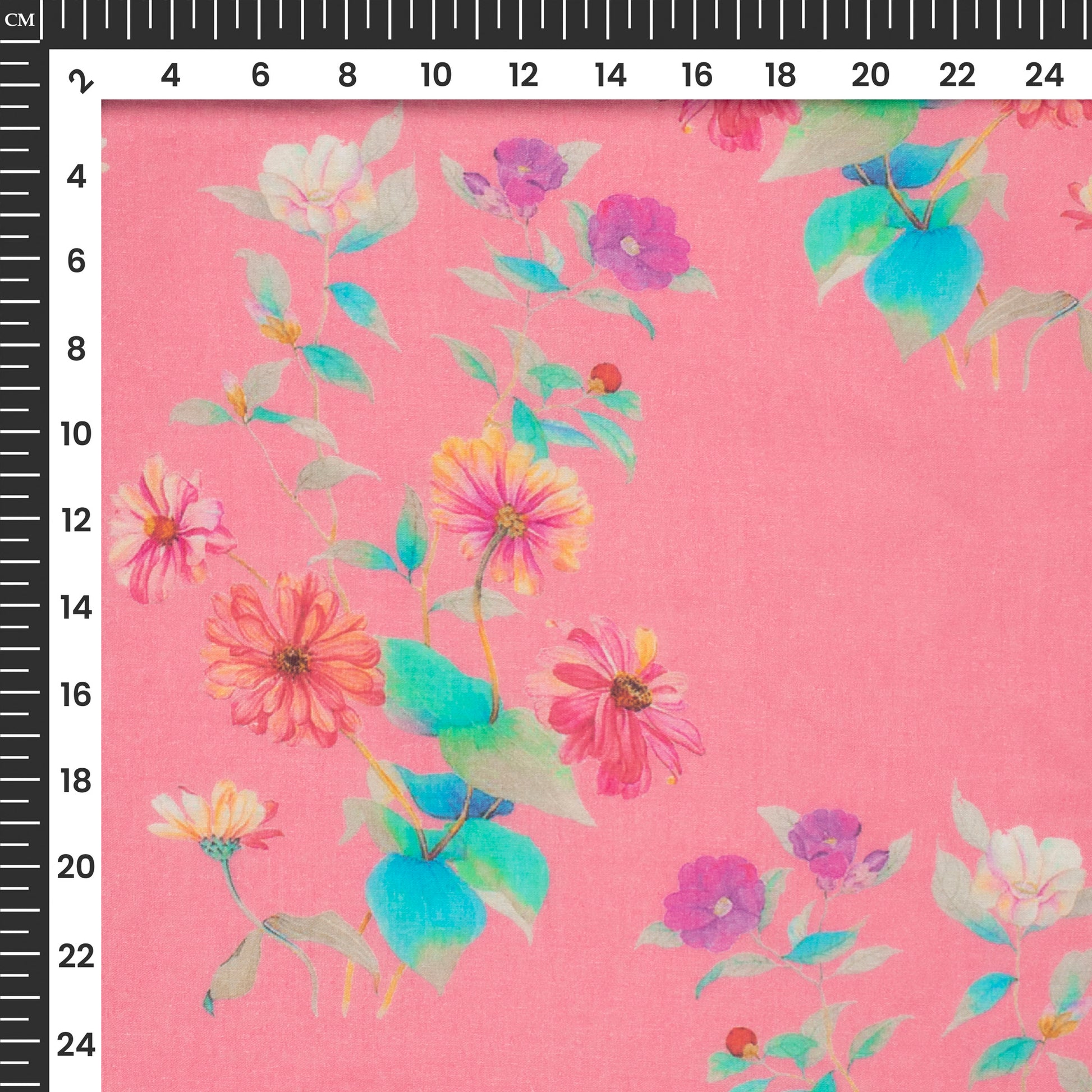 Flamingo Pink Floral Digital Print Pure Cotton Mulmul Fabric