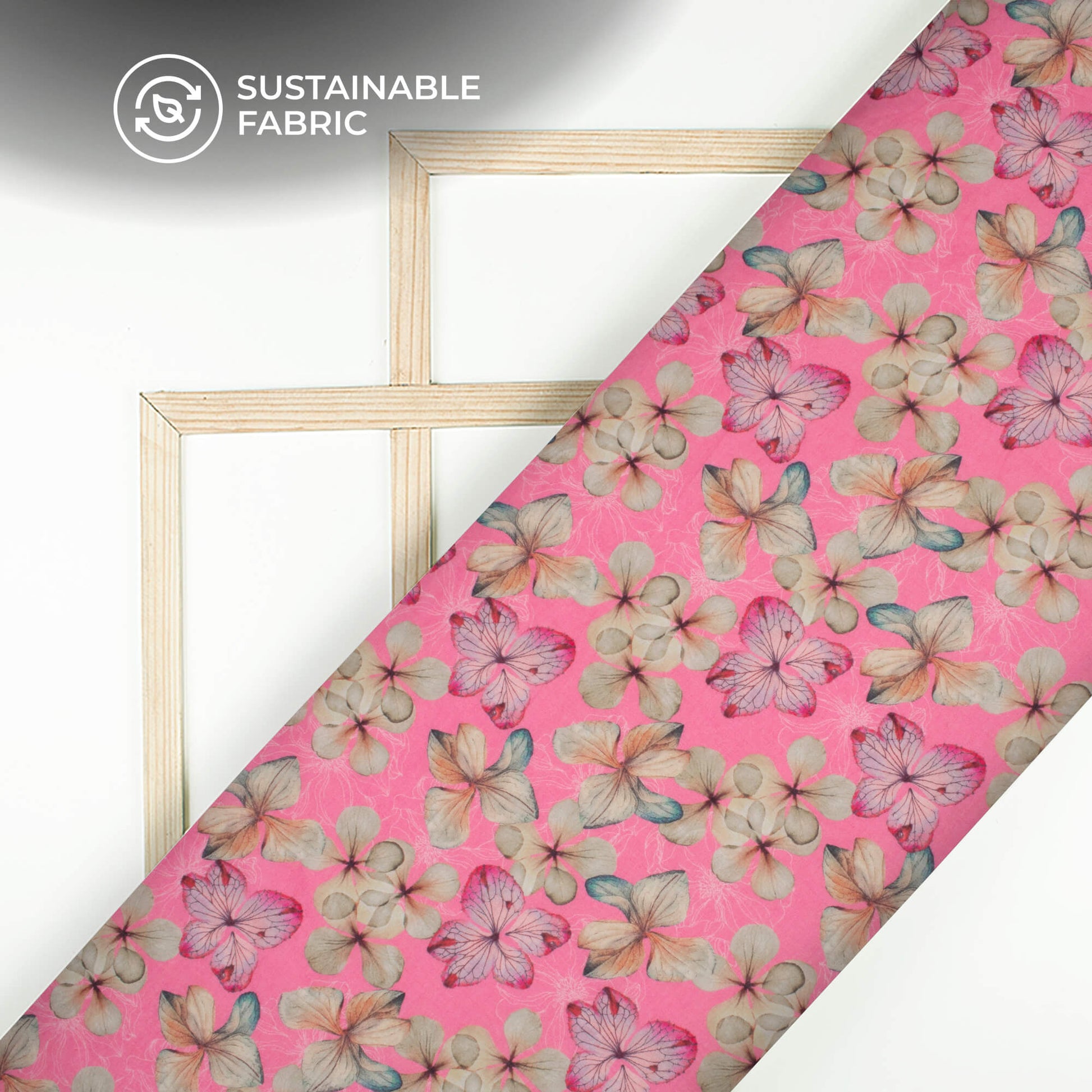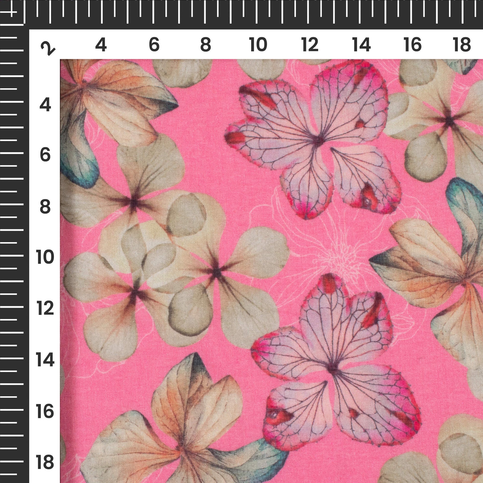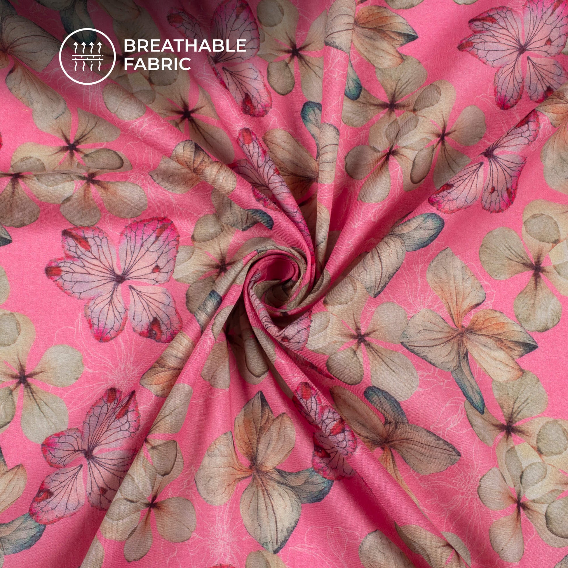 Fuscia Pink Floral Digital Print Pure Cotton Mulmul Fabric