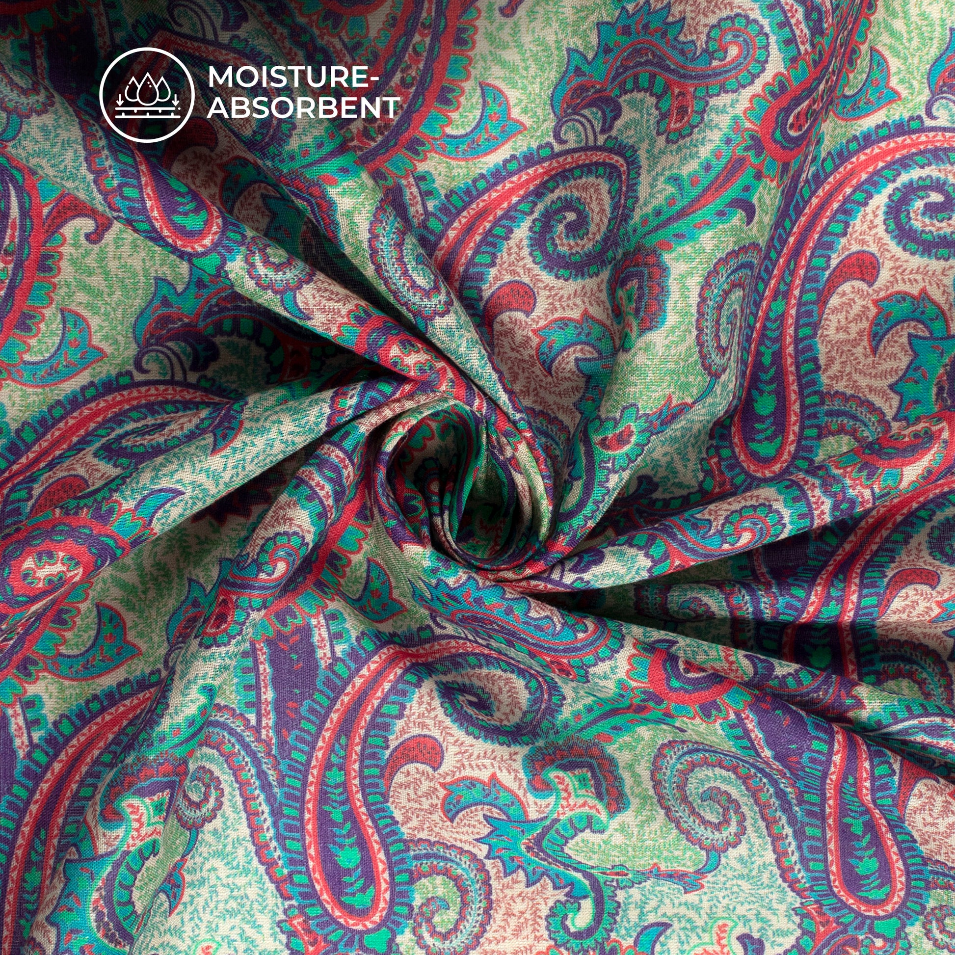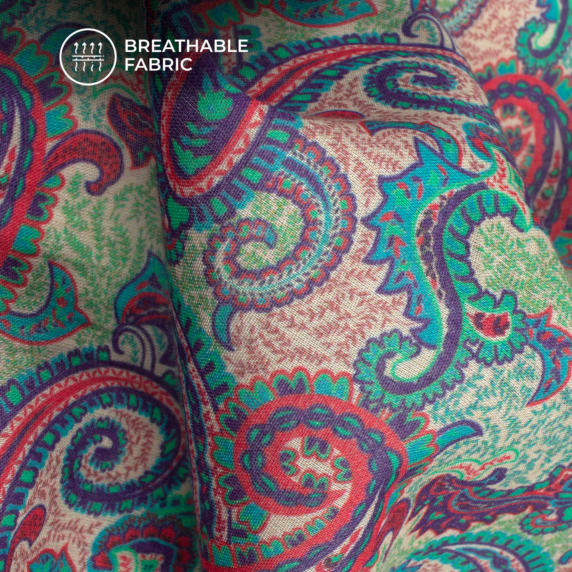 Gossamer Grace: Paisley Digital Print Pure Cotton Mulmul Fabric