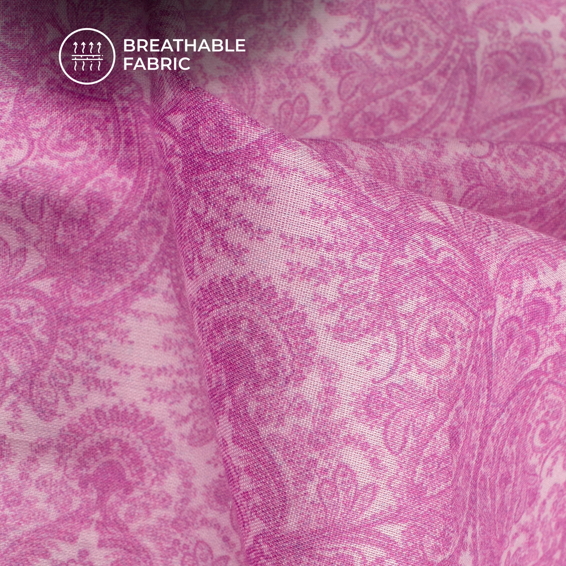 Pure Serenity: Purple Paisley Digital Print Pure Cotton Mulmul Fabric