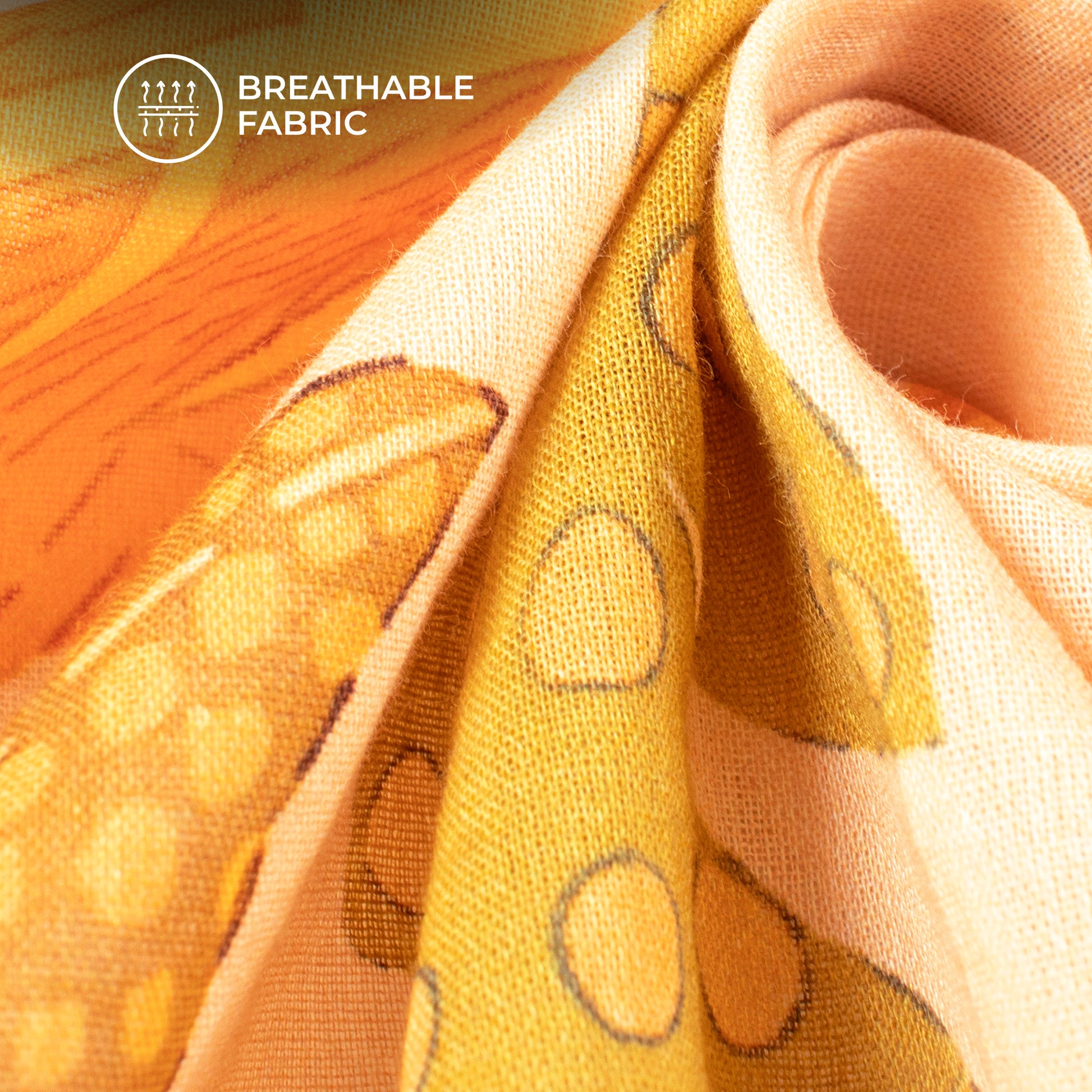 Cotton mulmul- often referred to as wonder gossamer, is a sheer, delicate, lightweight, fine and a soft cotton. Fabcurate’s digital print cotton mulmul fabric is a step ahead. Adding to the already existing beauty of mulmul are the beautiful digital prints, containing alluring colors. Add a touch of richness in your wardrobe by developing ensembles like saree, suit, dupatta, lehenga, kurta, shirts, cords and much more.