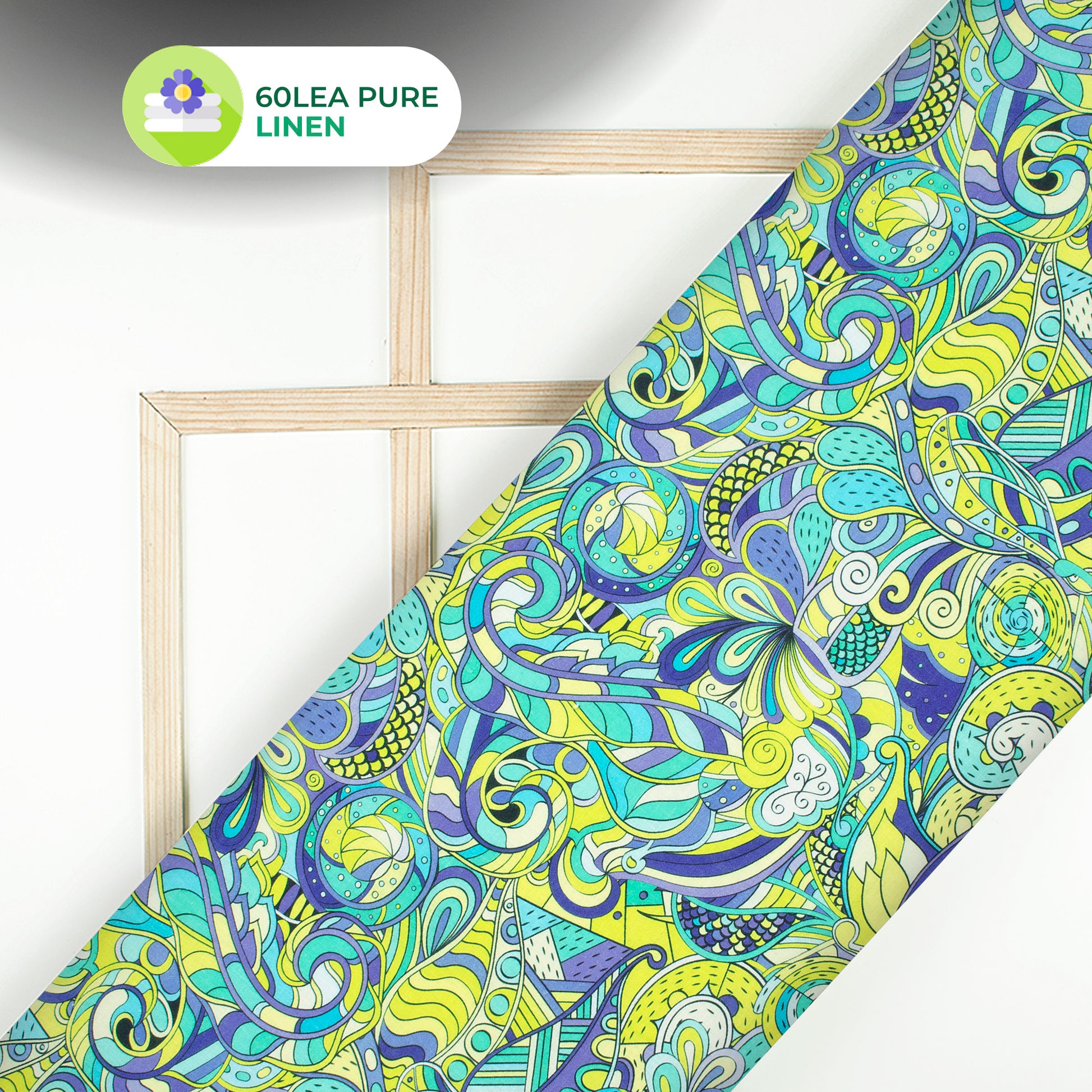 Seamless Vintage Paisley Digital Print Premium Swiss Linen Fabric (Width 58 Inches)