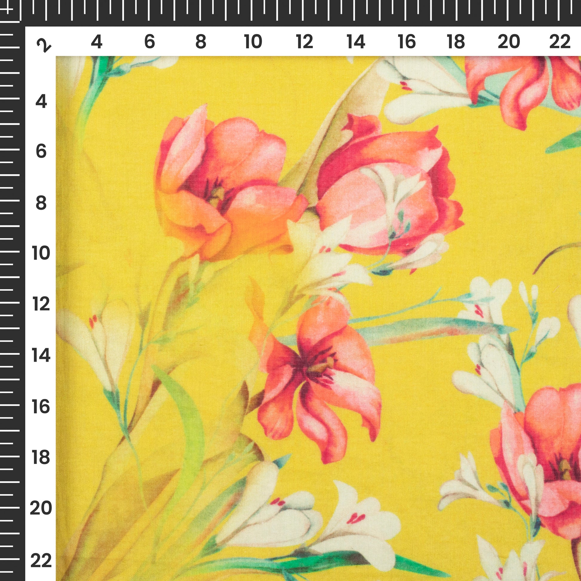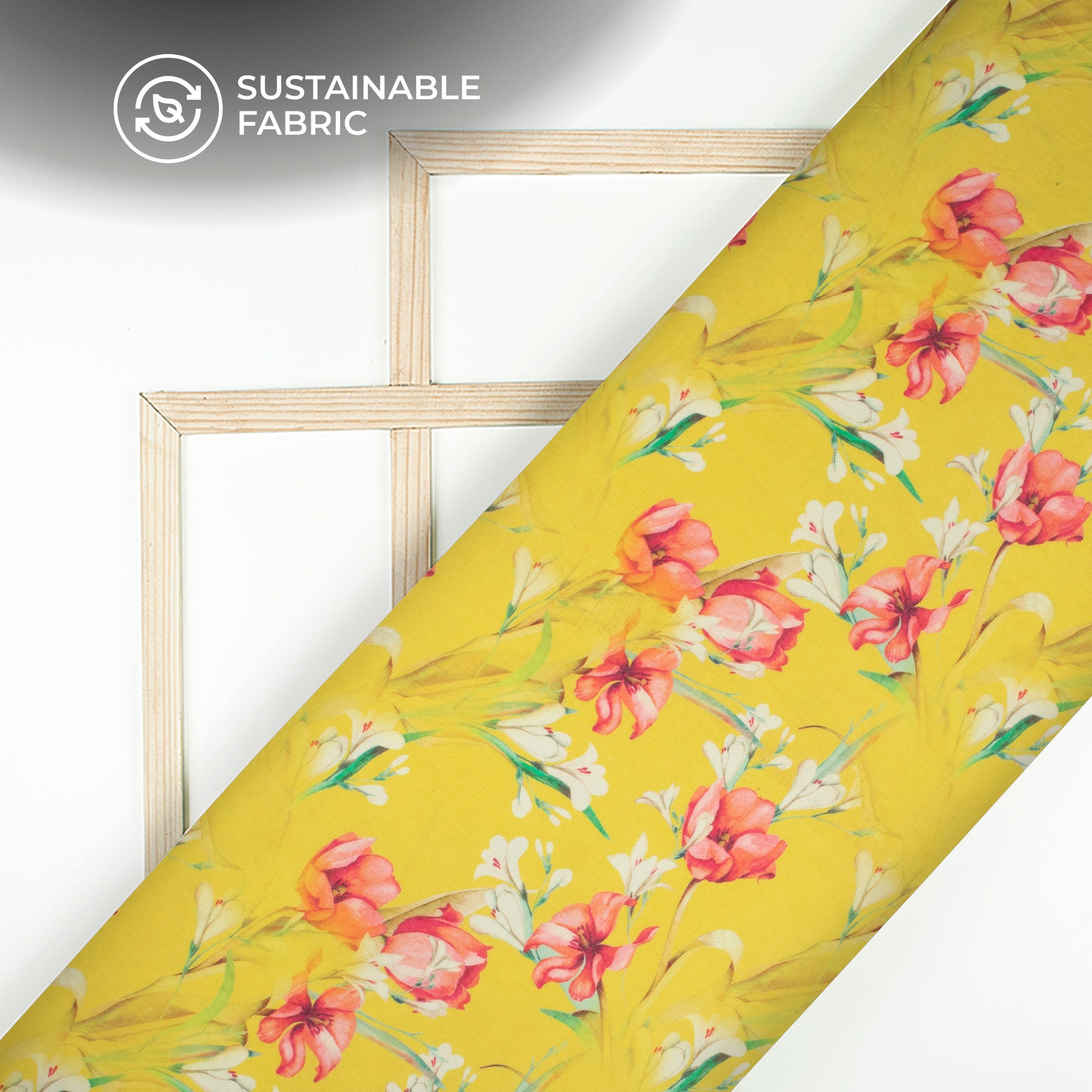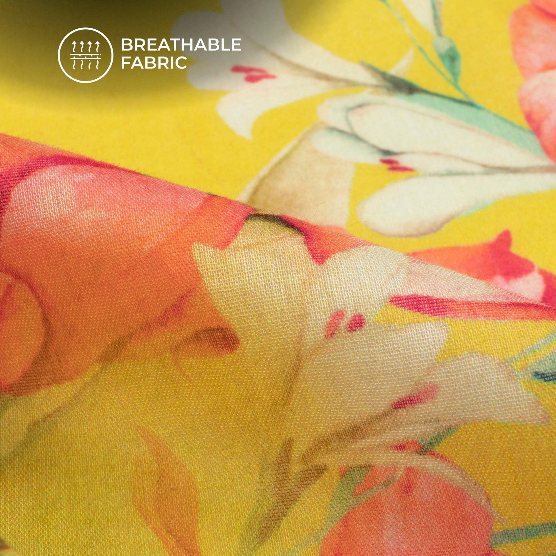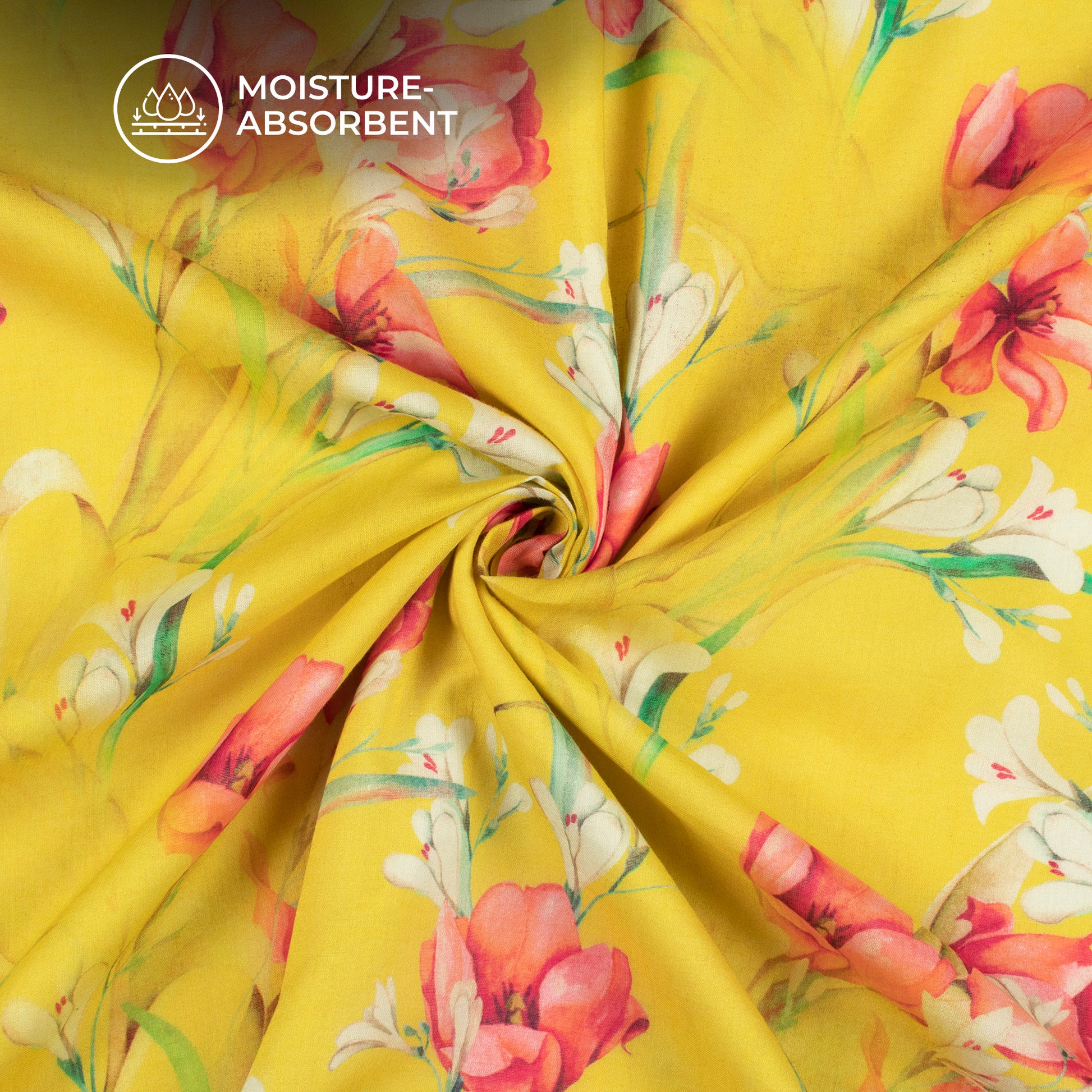 Yellow Floral Digital Print Pure Cotton Mulmul Fabric