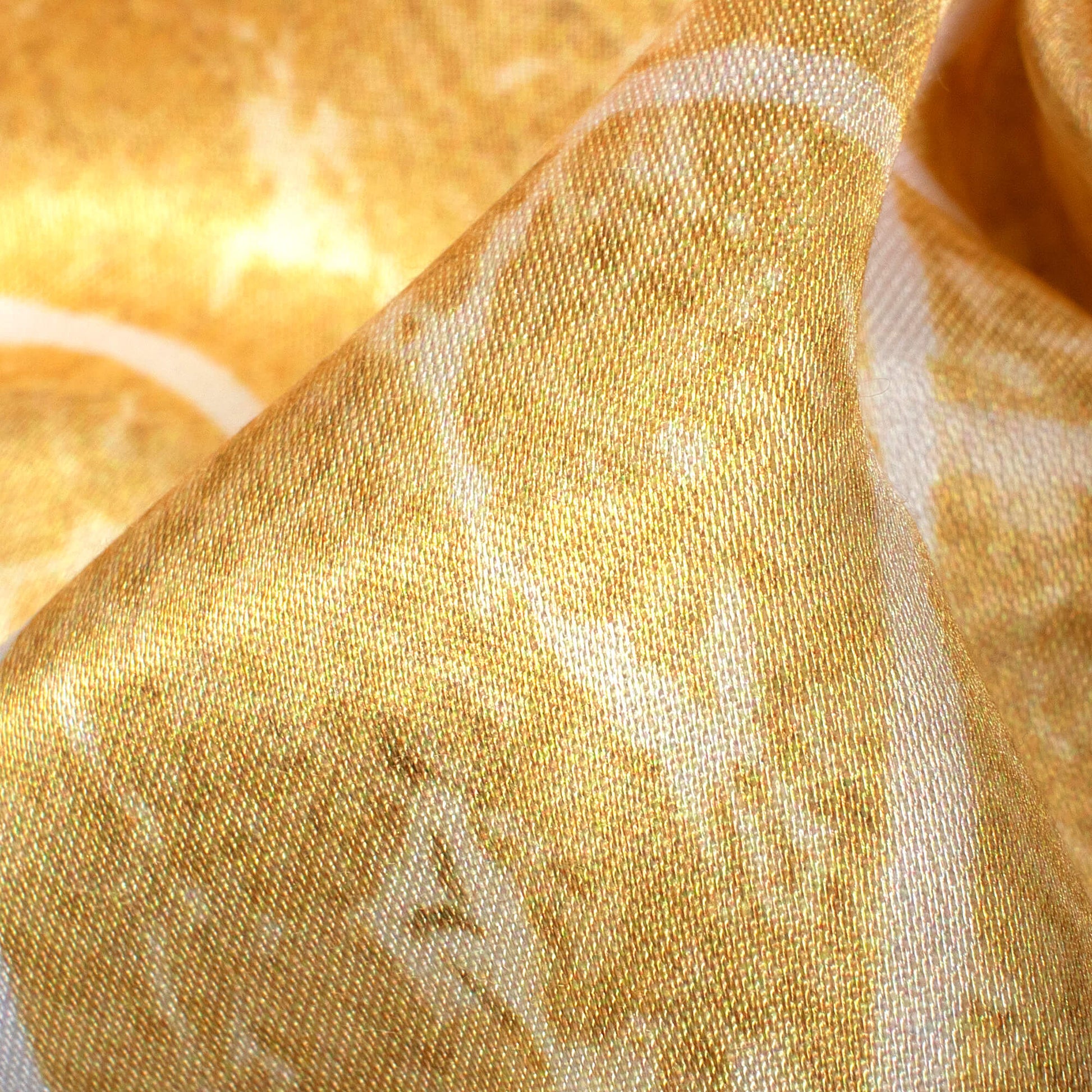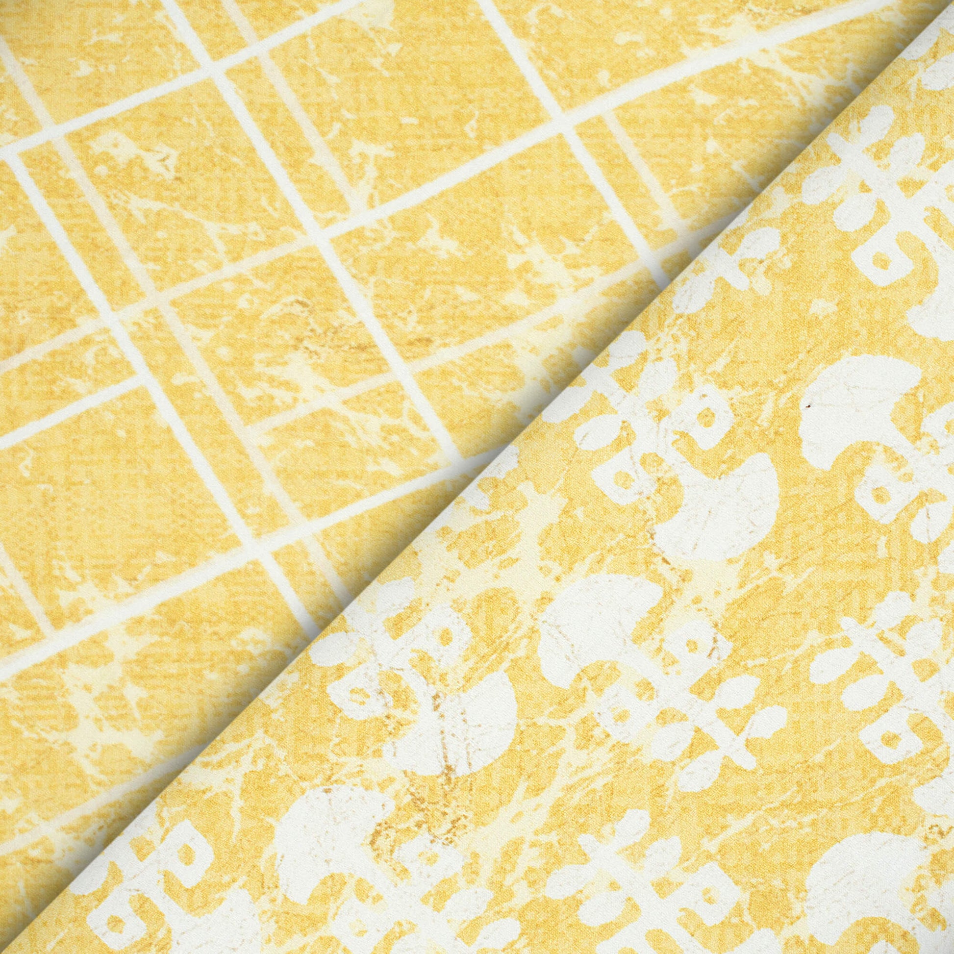 Mellow Yellow And White Geometric Pattern Digital Print Crepe Silk Fabric
