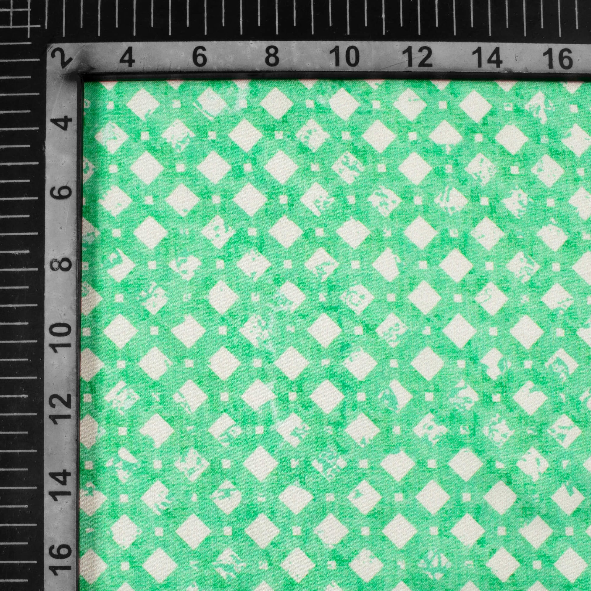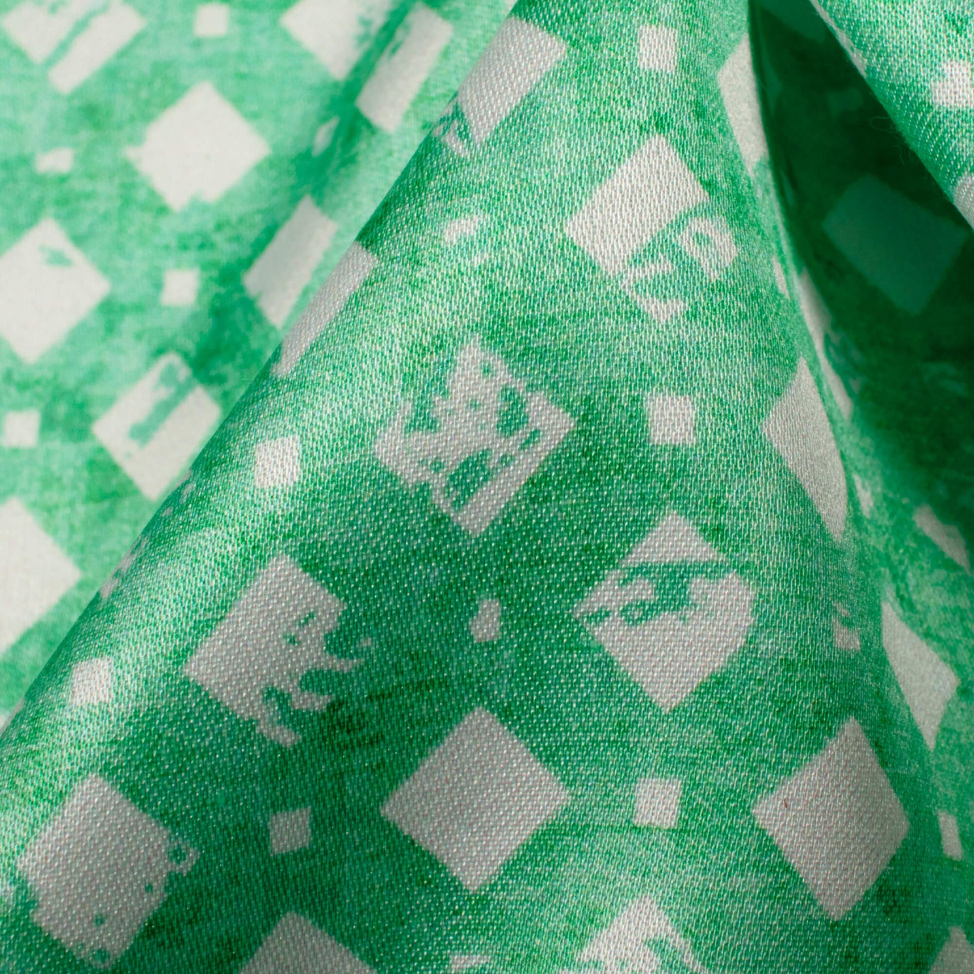 Mint Green And White Geometric Pattern Digital Print Crepe Silk Fabric