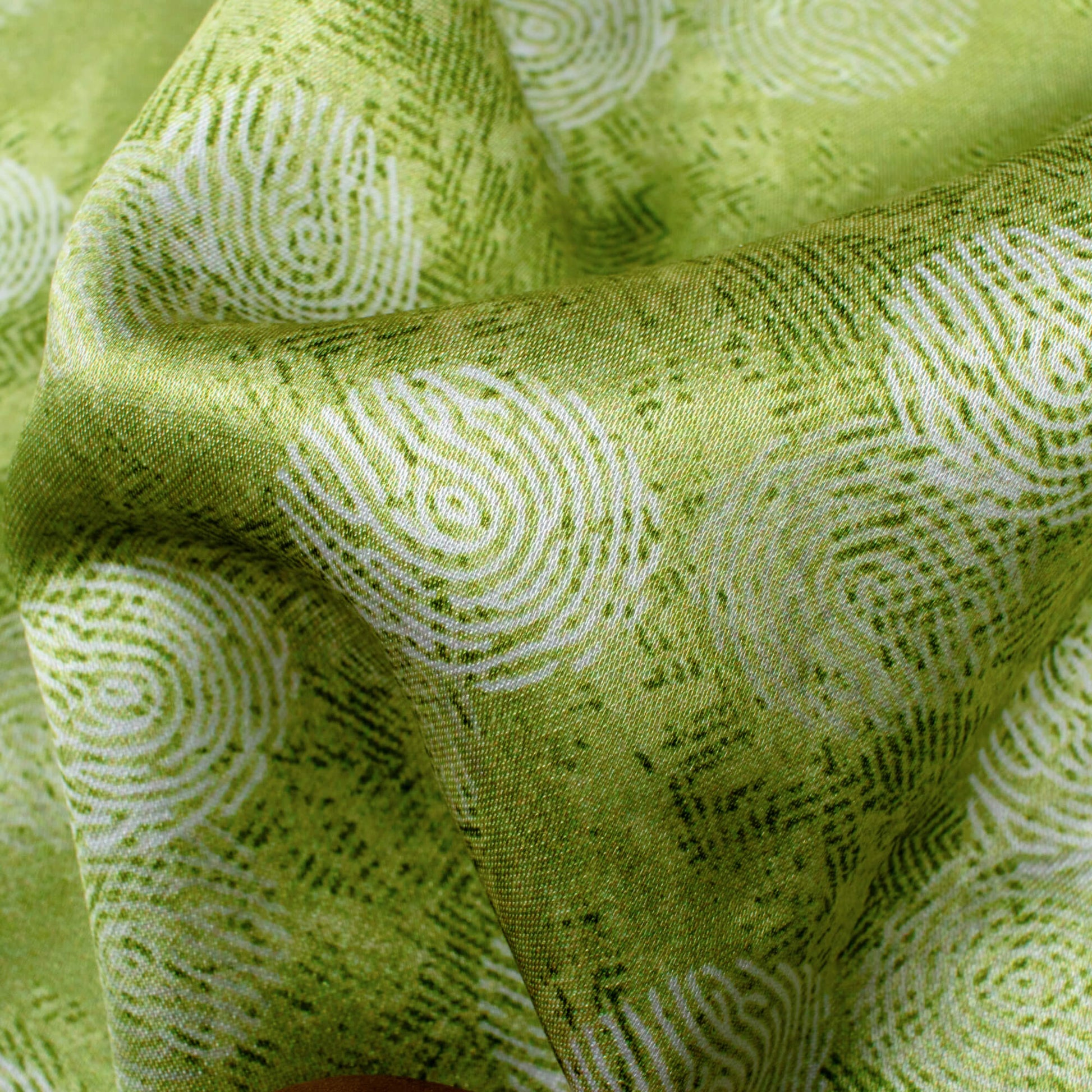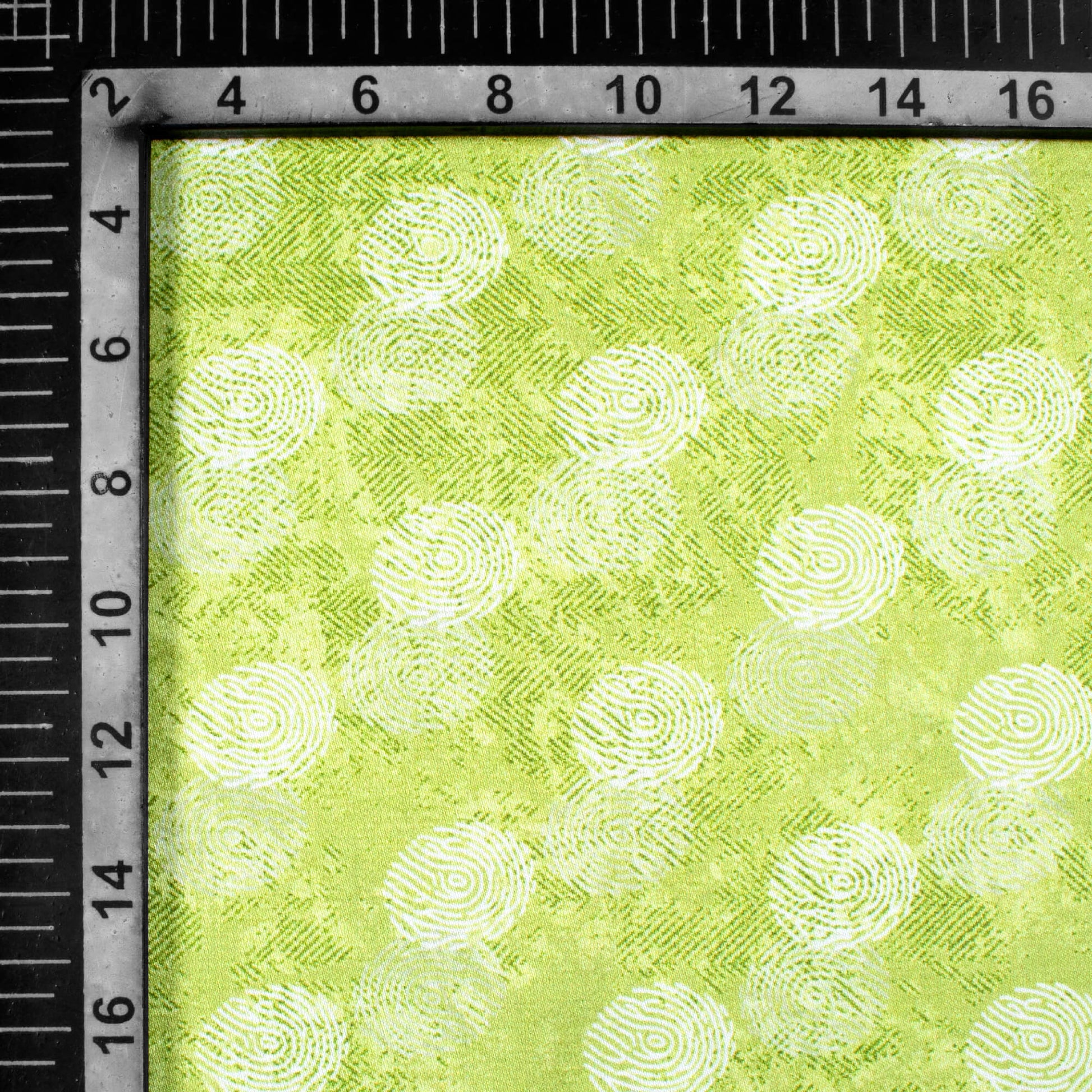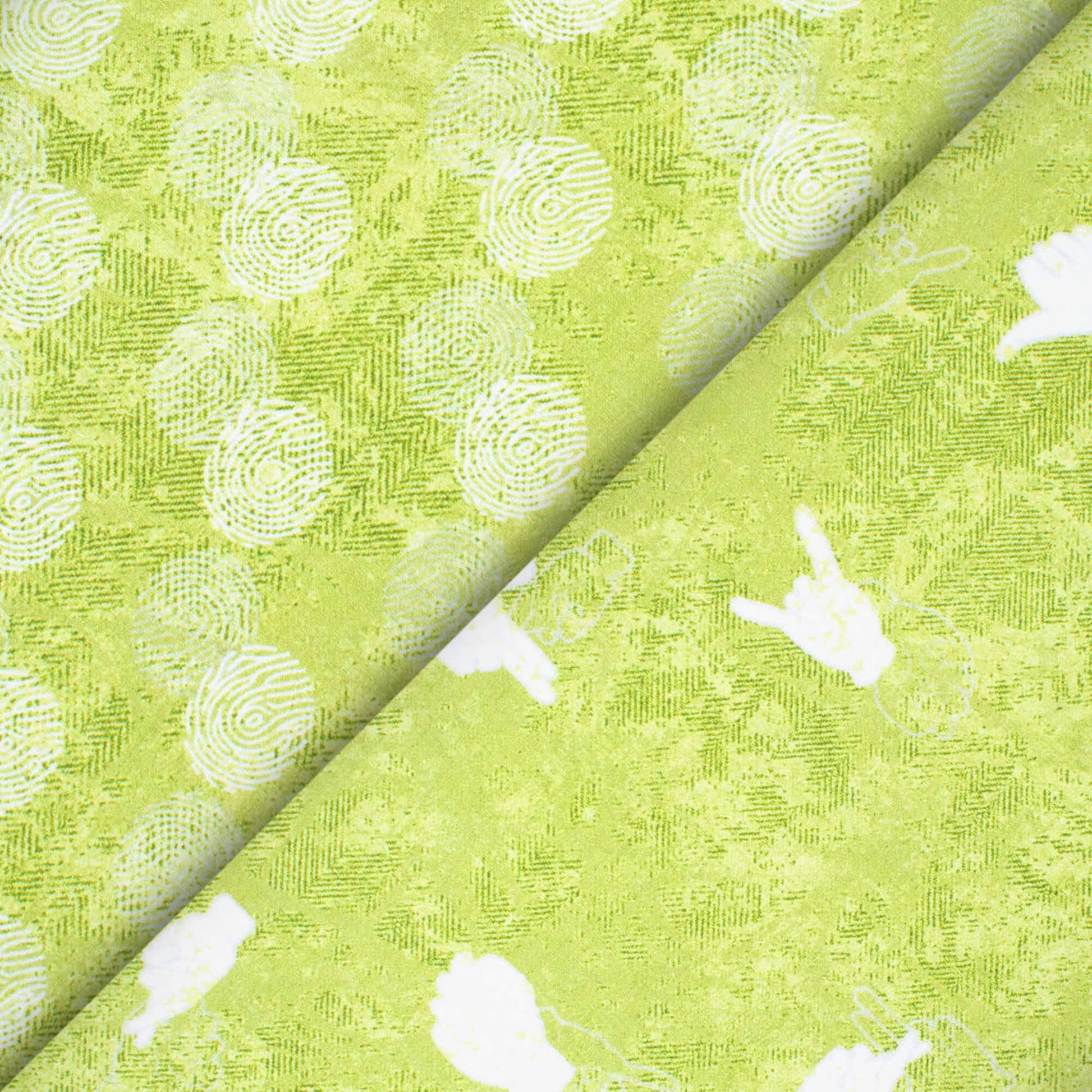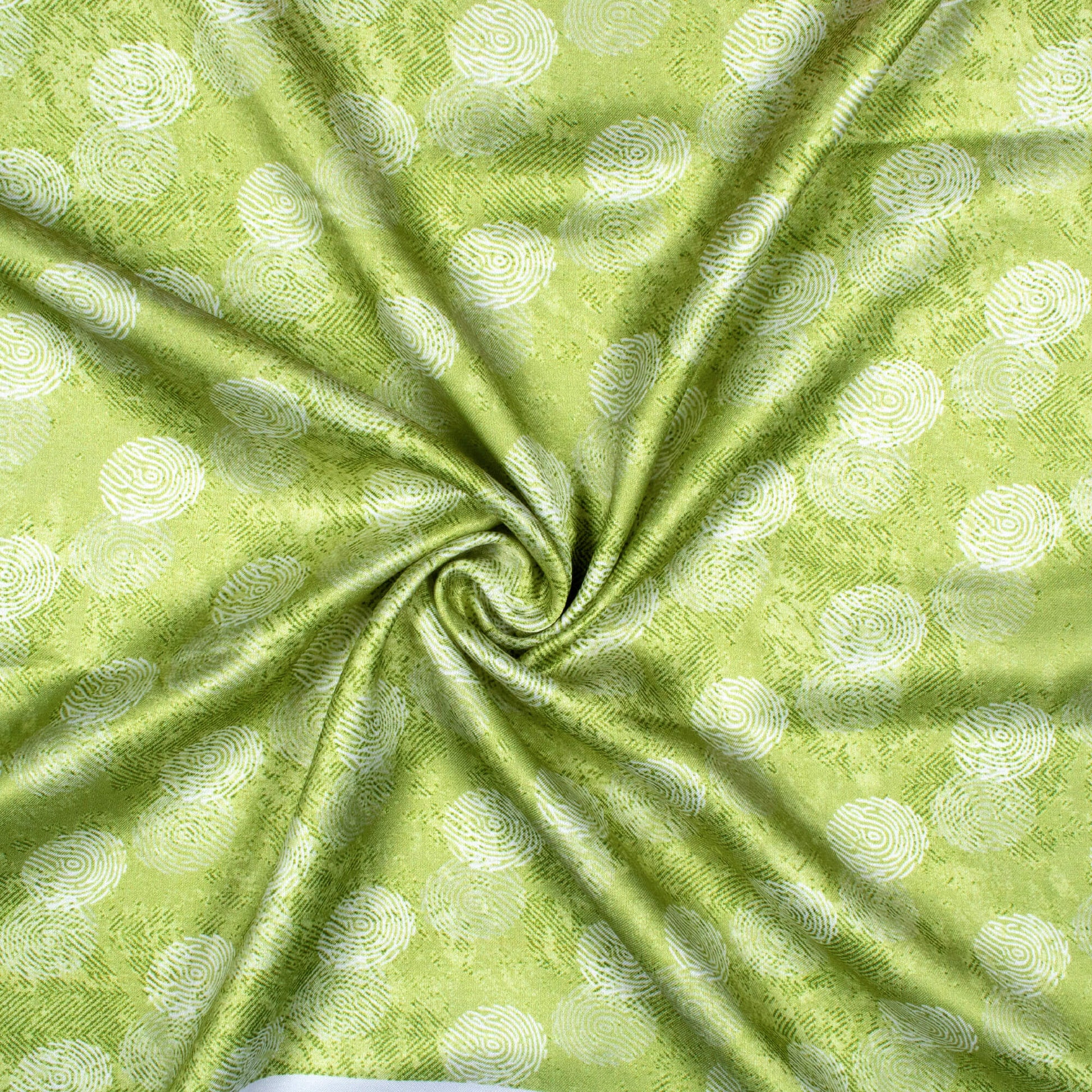 Olive Green And White Quirky Pattern Digital Print Crepe Silk Fabric