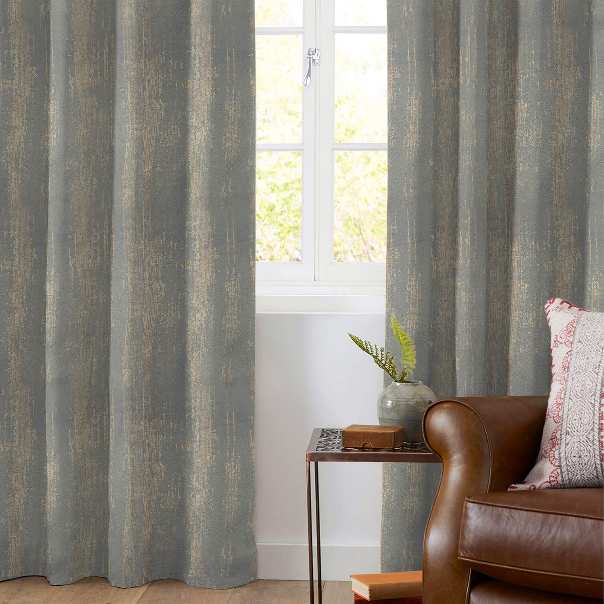 Lead Grey Texture Pattern Golden Foil Premium Curtain Fabric (Width 54 Inches)