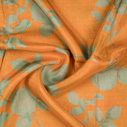 Green And Orange Floral Pattern Digital Print Viscose Uppada Silk Fabric Green And Orange Floral Pattern Digital Print Viscose Uppada Silk Fabric