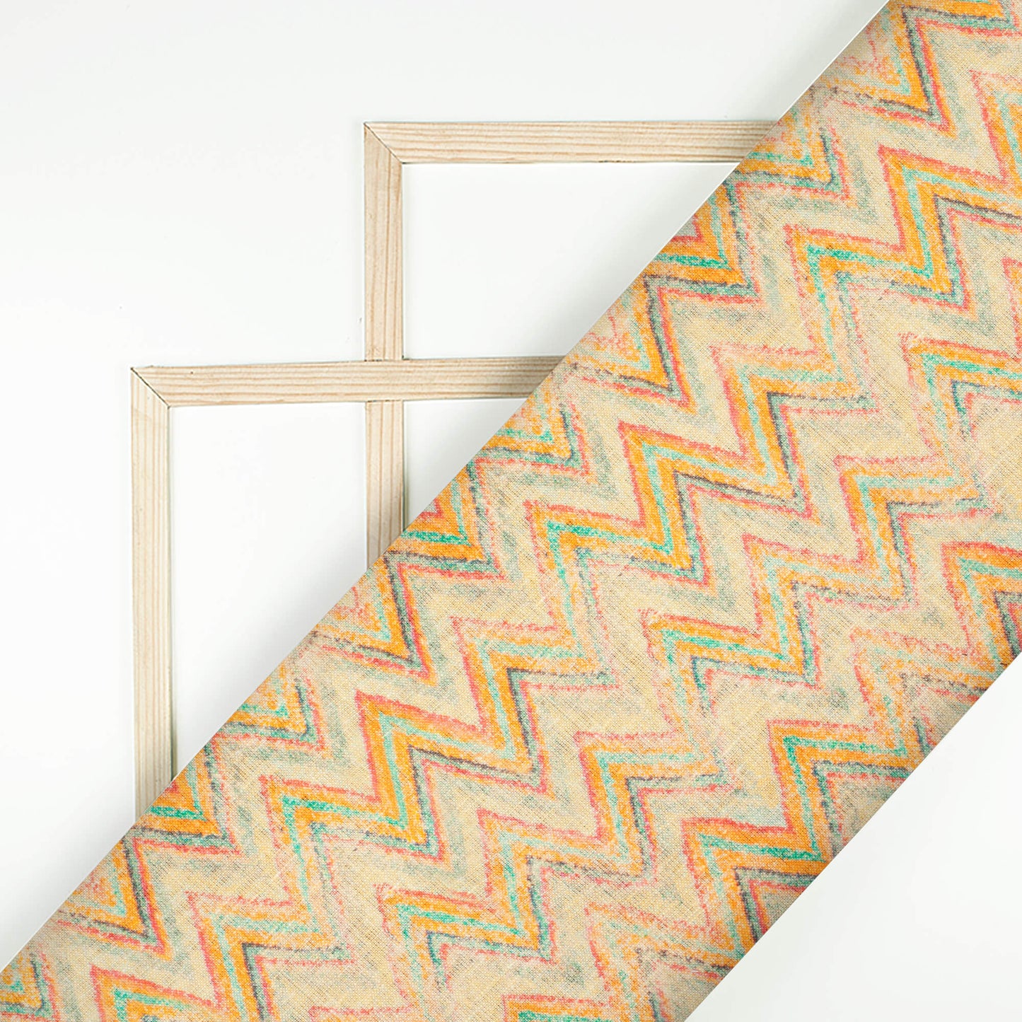 Pale Yellow And Orange Chevron Pattern Digital Print Premium Swiss Linen Fabric