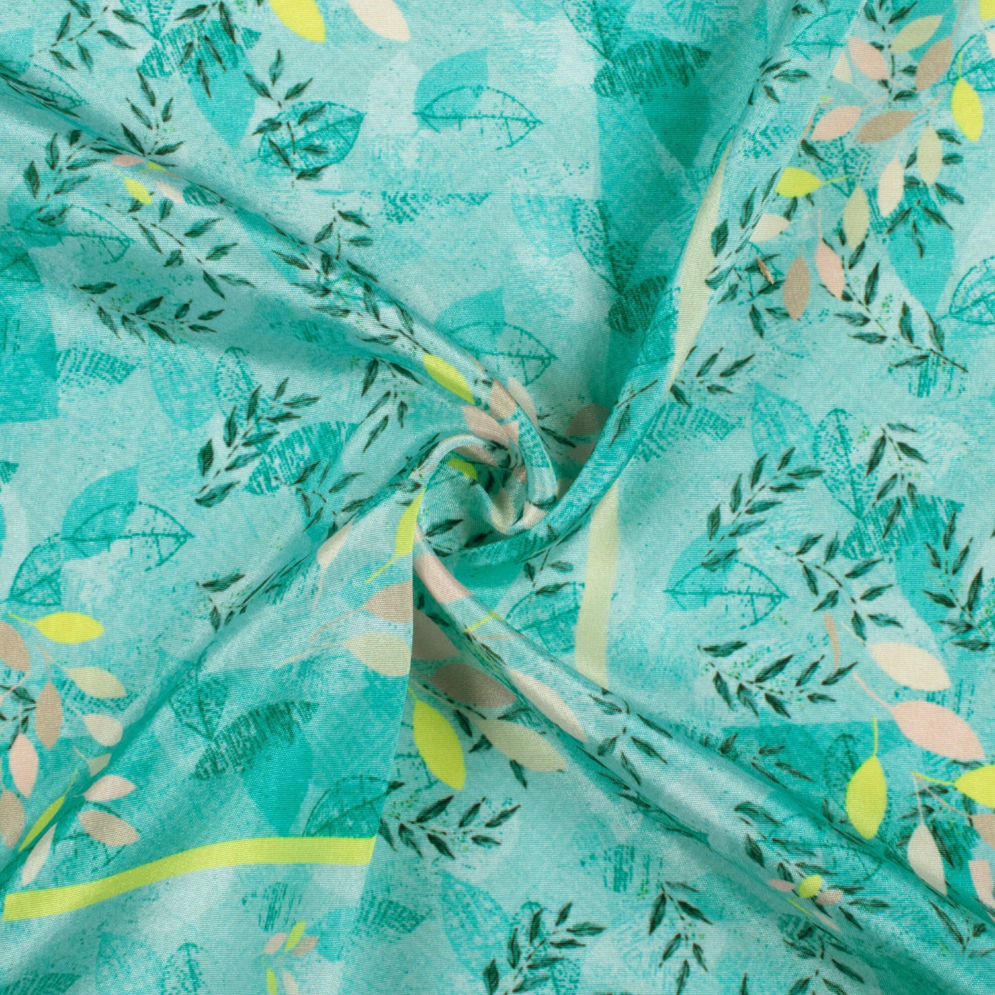 Pine Green And Lemon Yellow Leaf Pattern Digital Print Crepe Silk Fabric
