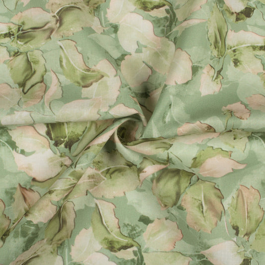 -6% offPastel Green And Salmon Peach Leaf Pattern Digital Print Poly Cambric Fabric Pastel Green And Salmon Peach Leaf Pattern Digital Print Poly Cambric Fabric