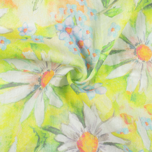 -11% offLemon Yellow And White Floral Pattern Digital Print Pure Cotton Mulmul Fabric Lemon Yellow And White Floral Pattern Digital Print Pure Cotton Mulmul Fabric
