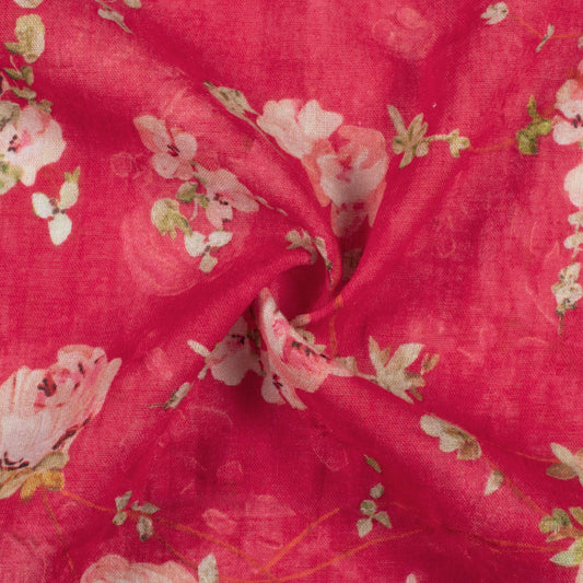 -11% offDeep Pink And White Floral Pattern Digital Print Pure Cotton Mulmul Fabric Deep Pink And White Floral Pattern Digital Print Pure Cotton Mulmul Fabric