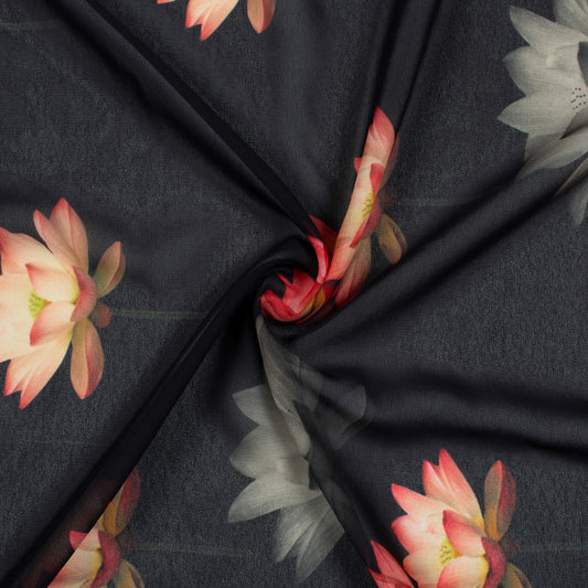 -10% offBlack And Pink Floral Pattern Digital Print Georgette Fabric Black And Pink Floral Pattern Digital Print Georgette Fabric